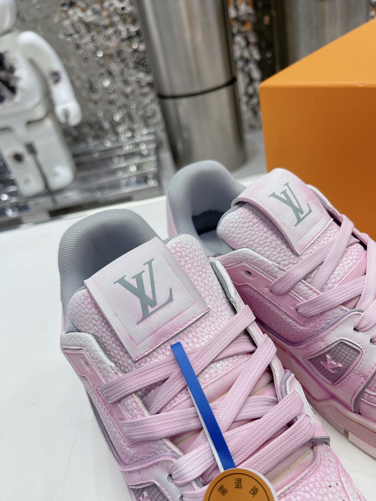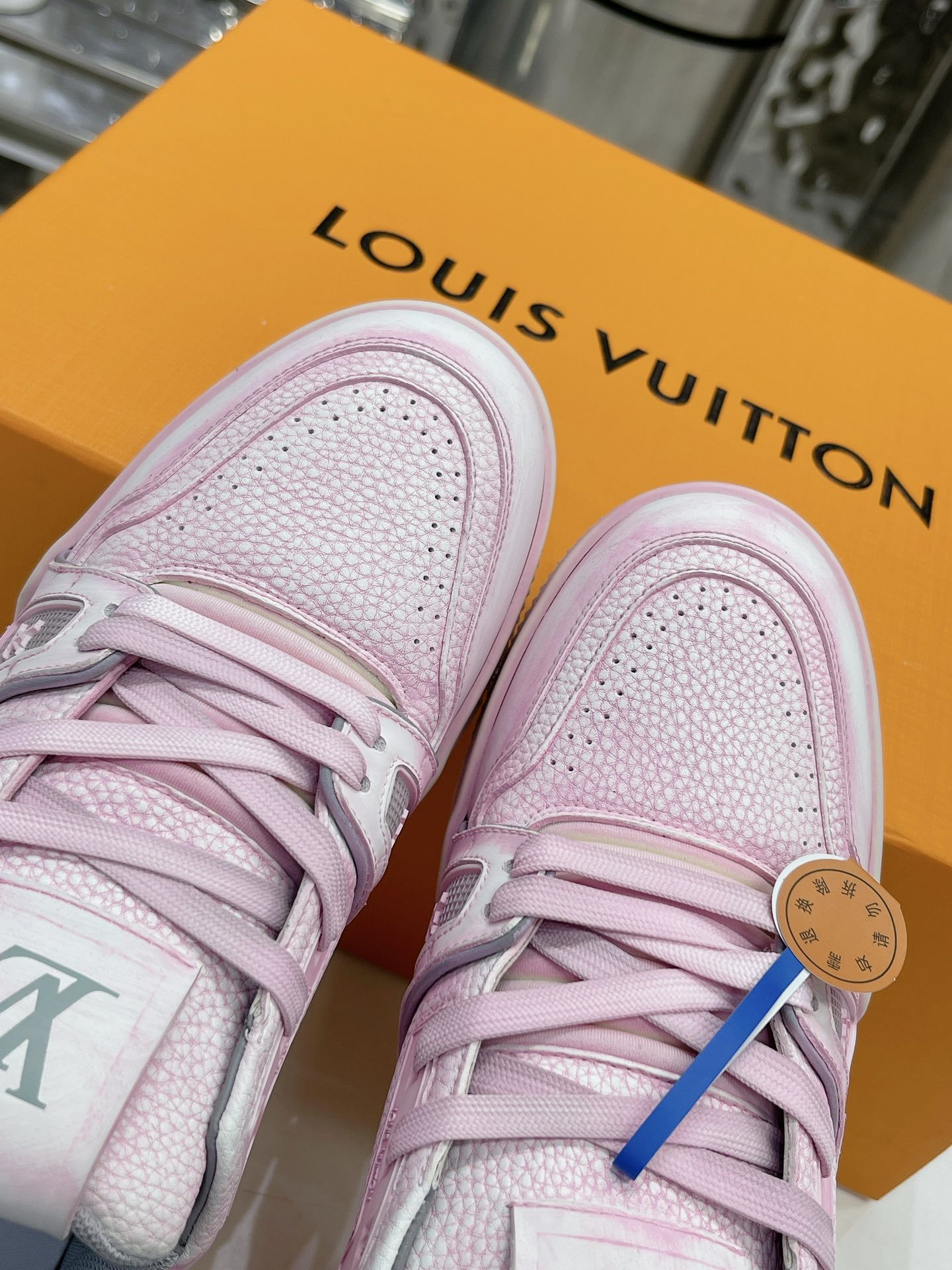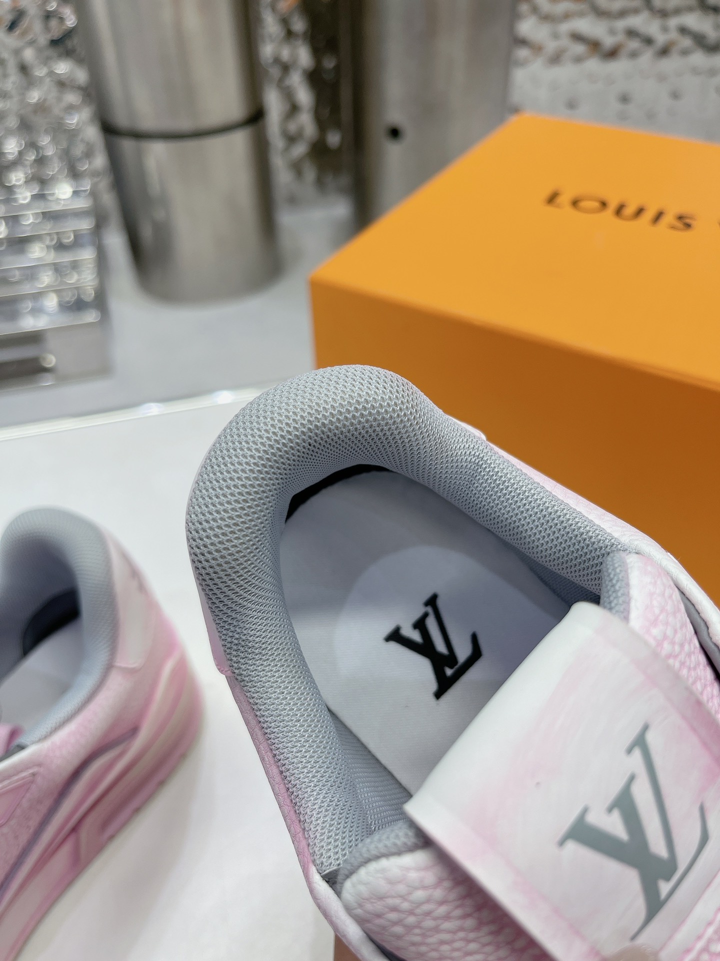 这款鞋子是AAAAA 1:1 质量 (非常棒). 使用了和原版一模一样的材料. 商标部分也保持了和路易威登/Louis Vuitton一样. 图片拍摄是实物鞋子拍摄, 您所收到的实物保证和我们图片一模一样.