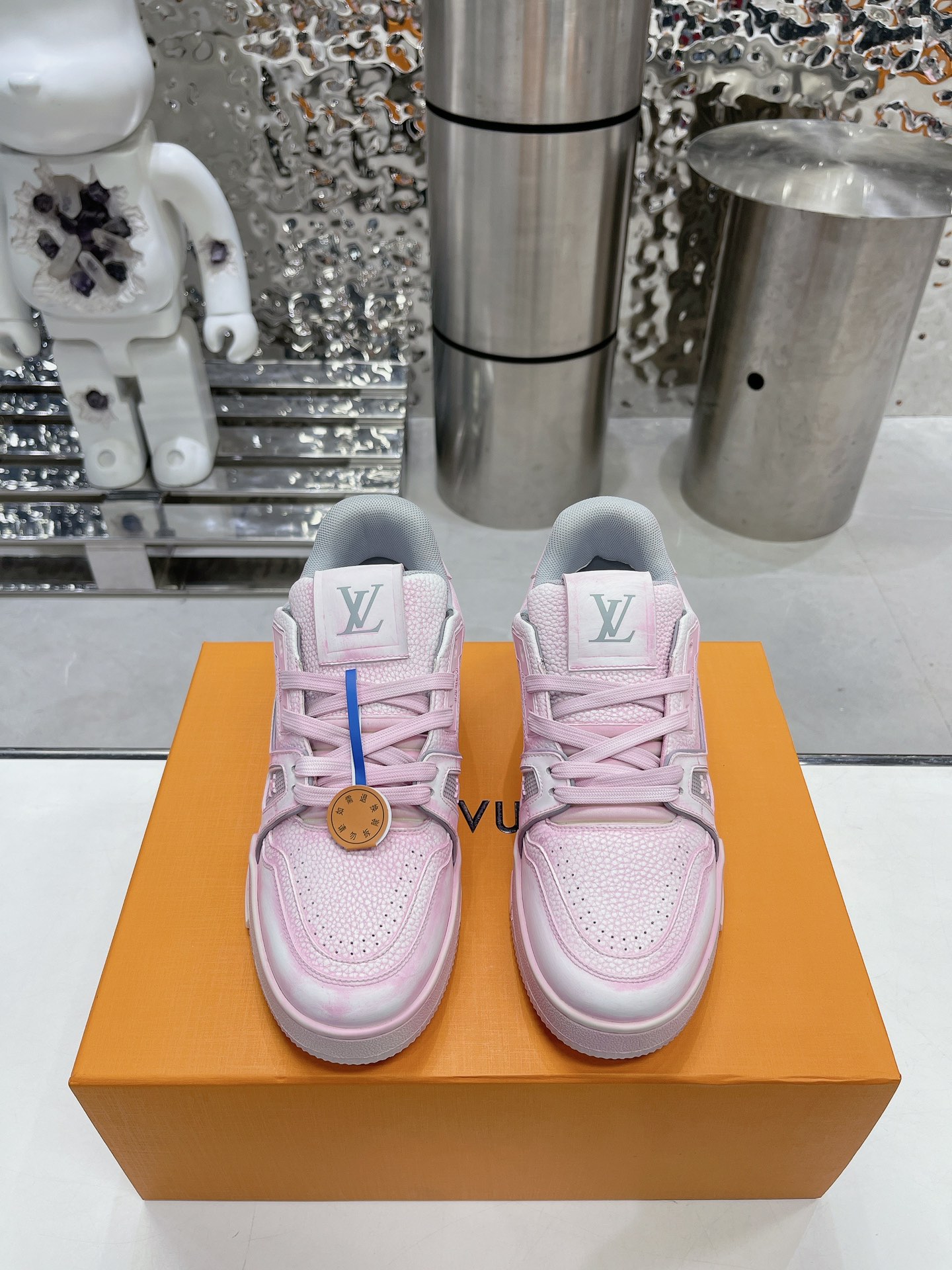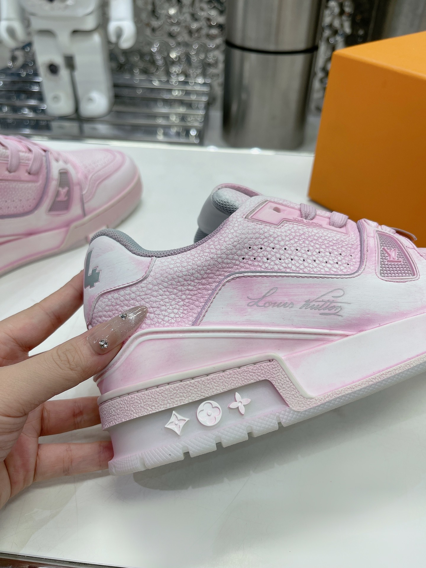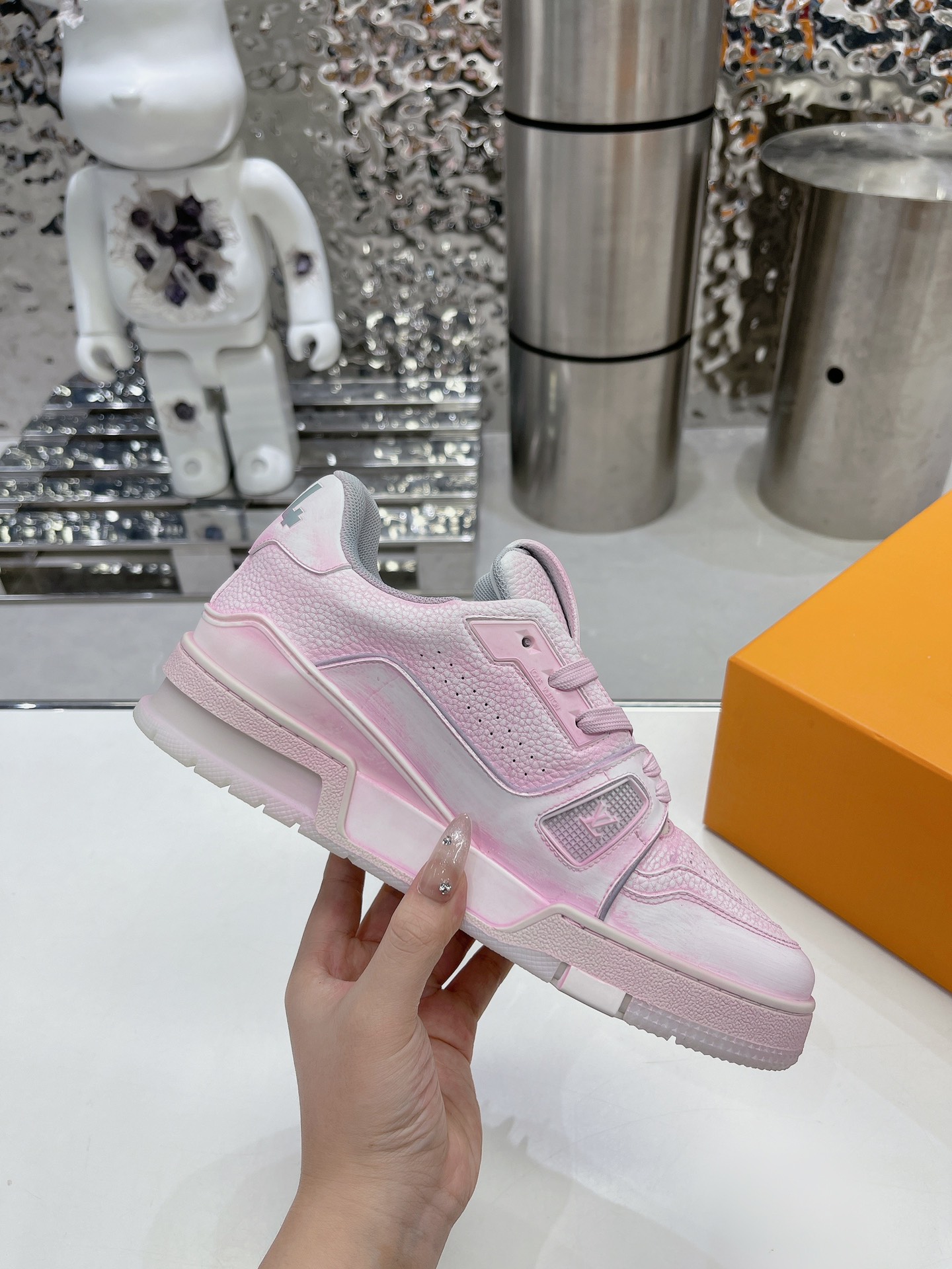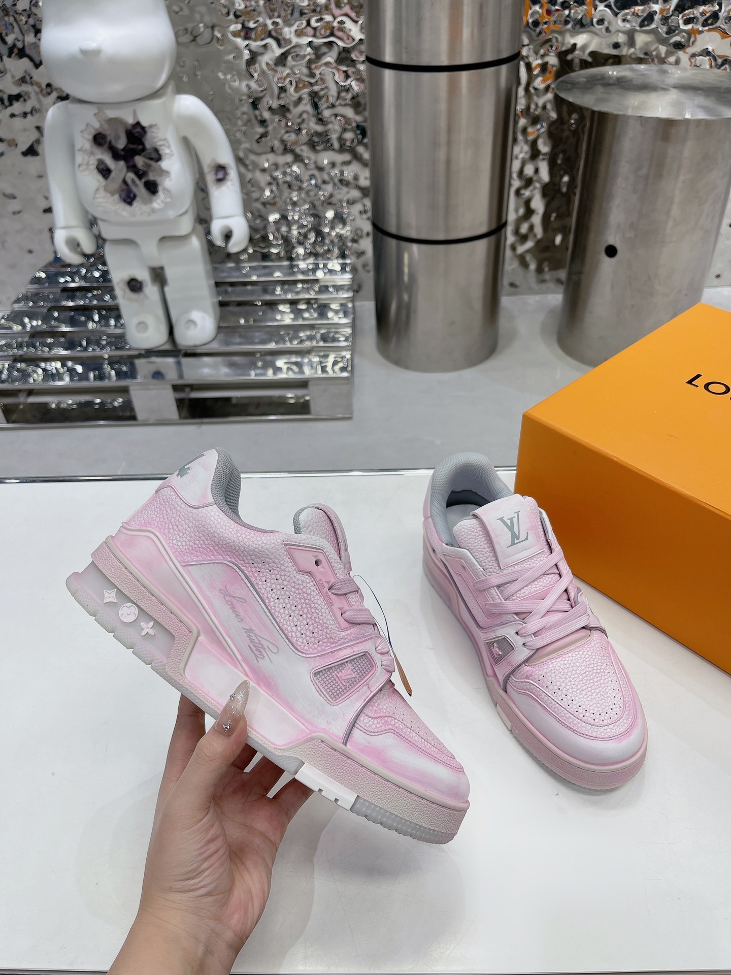 这款鞋子是AAAAA 1:1 质量 (非常棒). 使用了和原版一模一样的材料. 商标部分也保持了和路易威登/Louis Vuitton一样. 图片拍摄是实物鞋子拍摄, 您所收到的实物保证和我们图片一模一样.