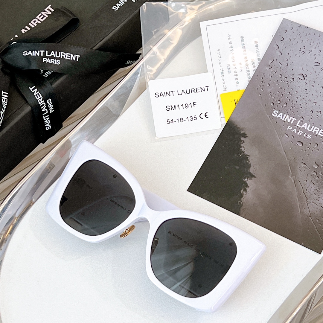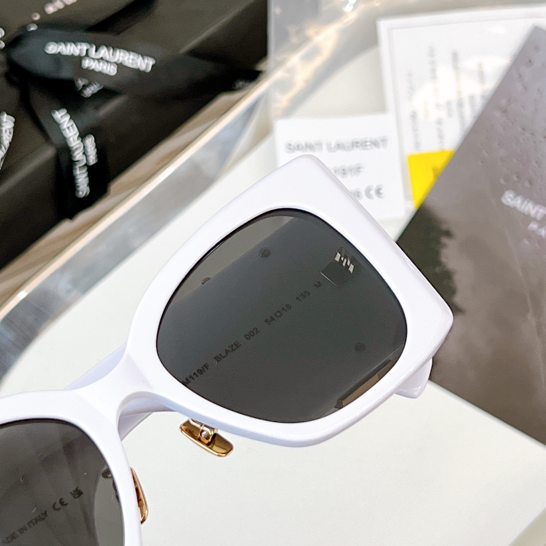 这款太阳眼镜是AAAAA 1:1 质量 (非常棒). 使用了和原版一模一样的材料. 商标部分也保持了和圣罗兰/Saint Laurent一样. 图片拍摄是实物太阳眼镜拍摄, 您所收到的实物保证和我们图片一模一样.