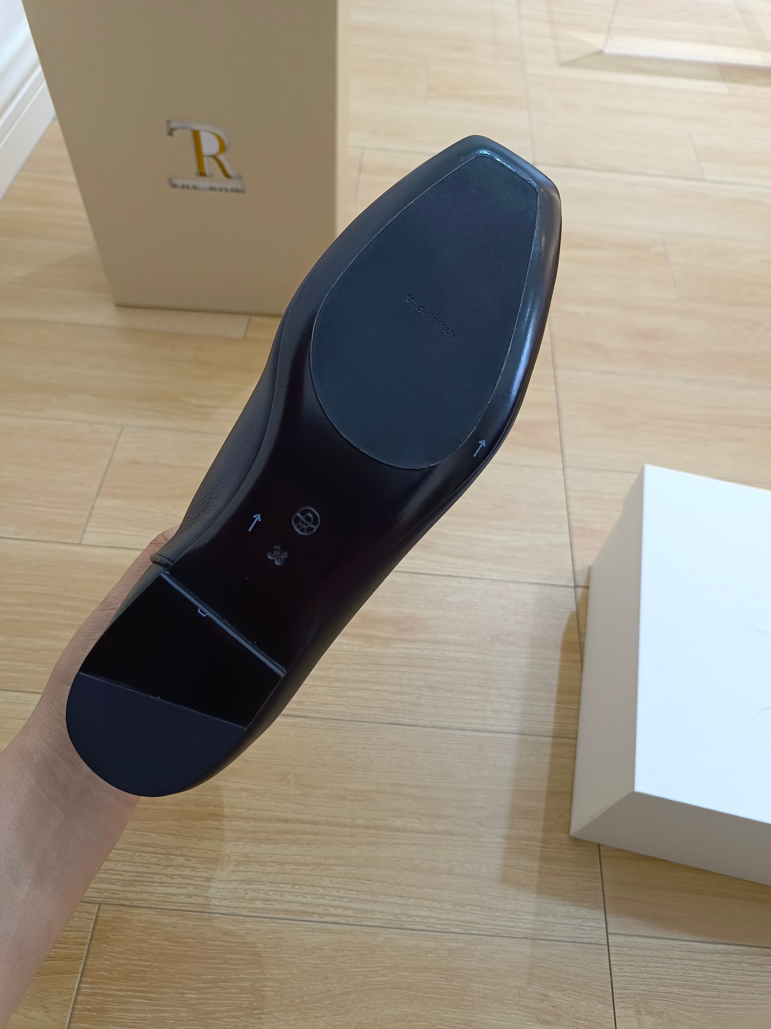 这款鞋子是AAAAA 1:1 质量 (非常棒). 使用了和原版一模一样的材料. 商标部分也保持了和The Row一样. 图片拍摄是实物鞋子拍摄, 您所收到的实物保证和我们图片一模一样.