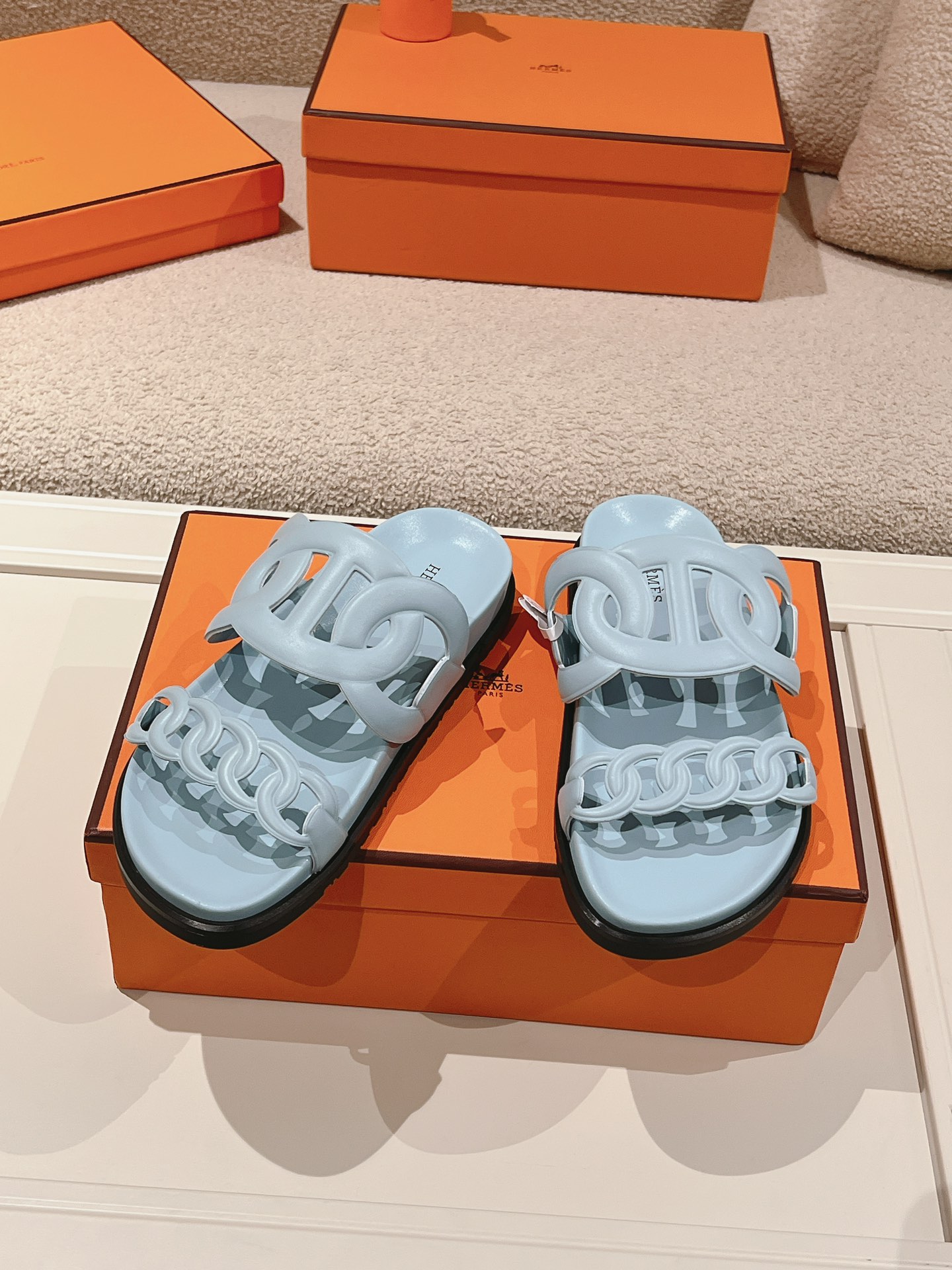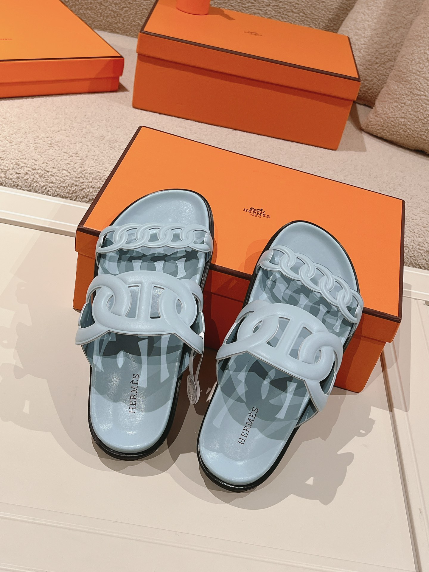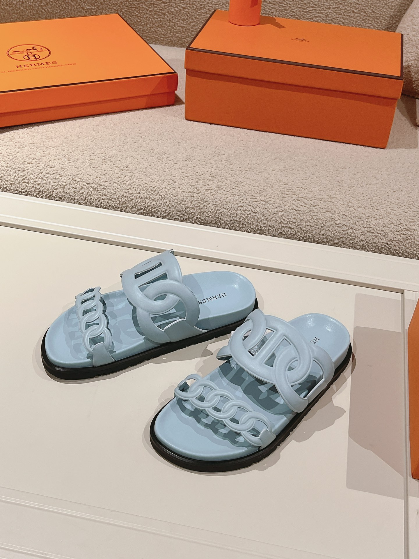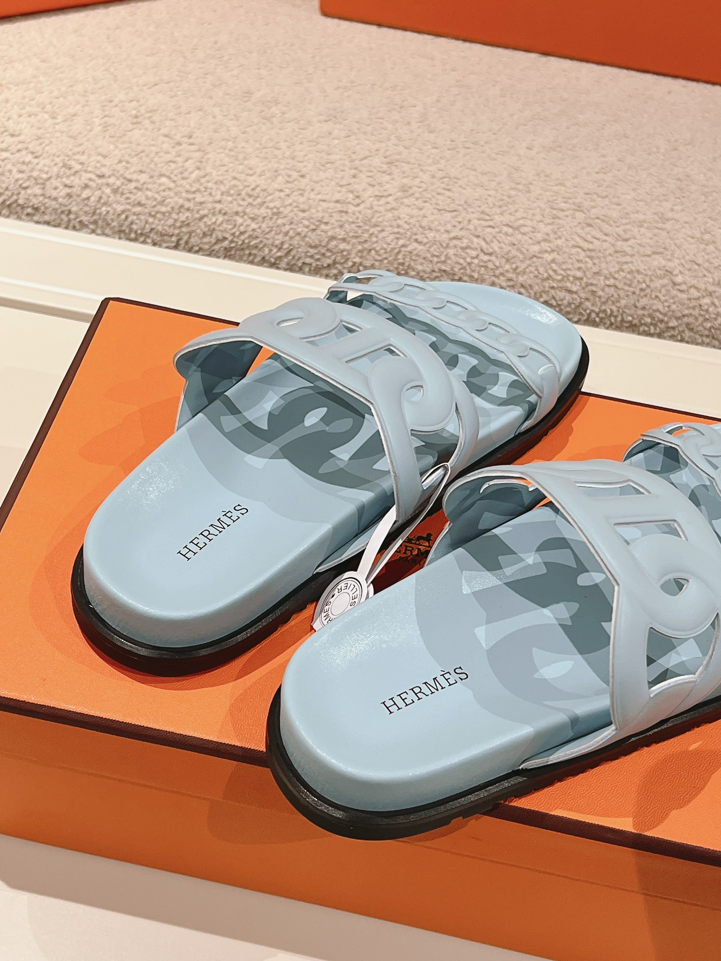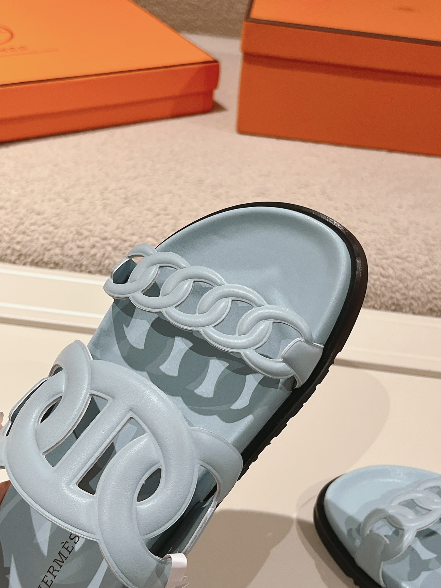 这款鞋子是AAAAA 1:1 质量 (非常棒). 使用了和原版一模一样的材料. 商标部分也保持了和爱马仕/Hermes一样. 图片拍摄是实物鞋子拍摄, 您所收到的实物保证和我们图片一模一样.