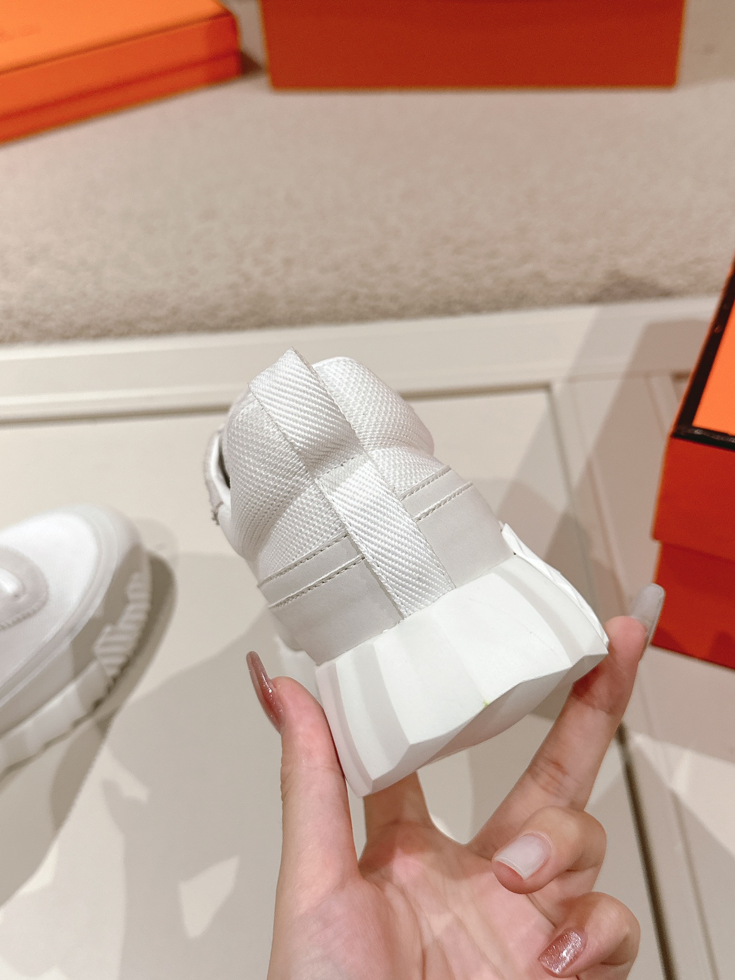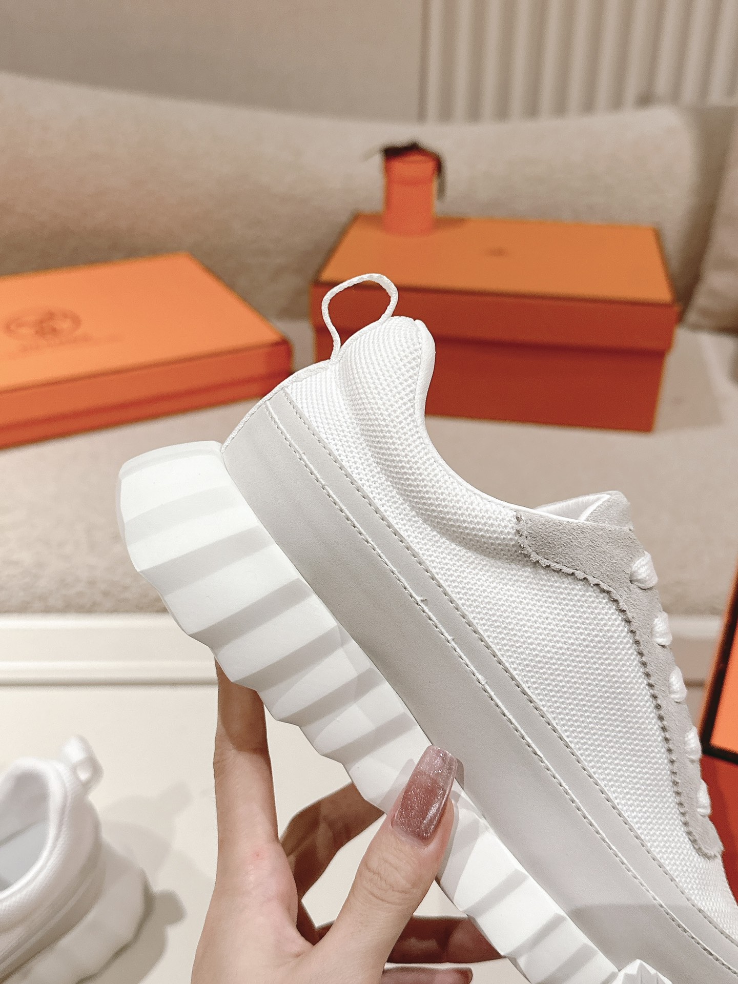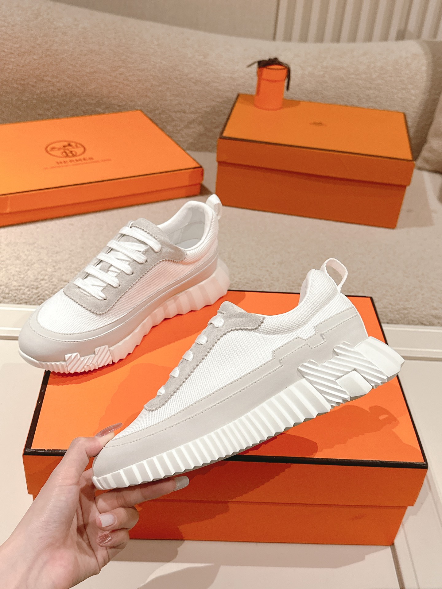 这款鞋子是AAAAA 1:1 质量 (非常棒). 使用了和原版一模一样的材料. 商标部分也保持了和爱马仕/Hermes一样. 图片拍摄是实物鞋子拍摄, 您所收到的实物保证和我们图片一模一样.