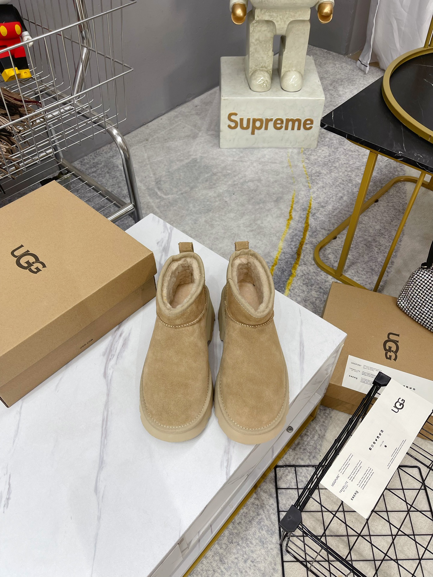 这款鞋子是AAAAA 1:1 质量 (非常棒). 使用了和原版一模一样的材料. 商标部分也保持了和UGG雪地靴一样. 图片拍摄是实物鞋子拍摄, 您所收到的实物保证和我们图片一模一样.