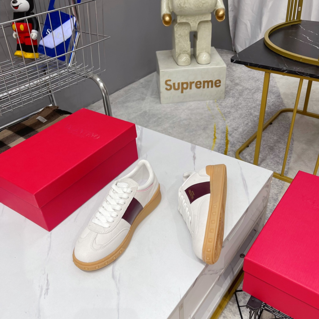 这款鞋子是AAAAA 1:1 质量 (非常棒). 使用了和原版一模一样的材料. 商标部分也保持了和华伦天奴/Valentino一样. 图片拍摄是实物鞋子拍摄, 您所收到的实物保证和我们图片一模一样.