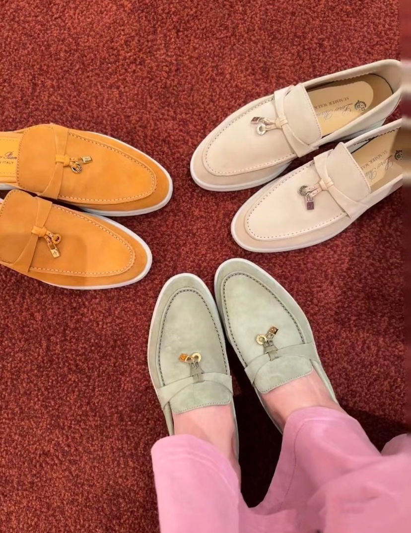 这款鞋子是AAAAA 1:1 质量 (非常棒). 使用了和原版一模一样的材料. 商标部分也保持了和洛罗皮亚纳/Loro Piana一样. 图片拍摄是实物鞋子拍摄, 您所收到的实物保证和我们图片一模一样.