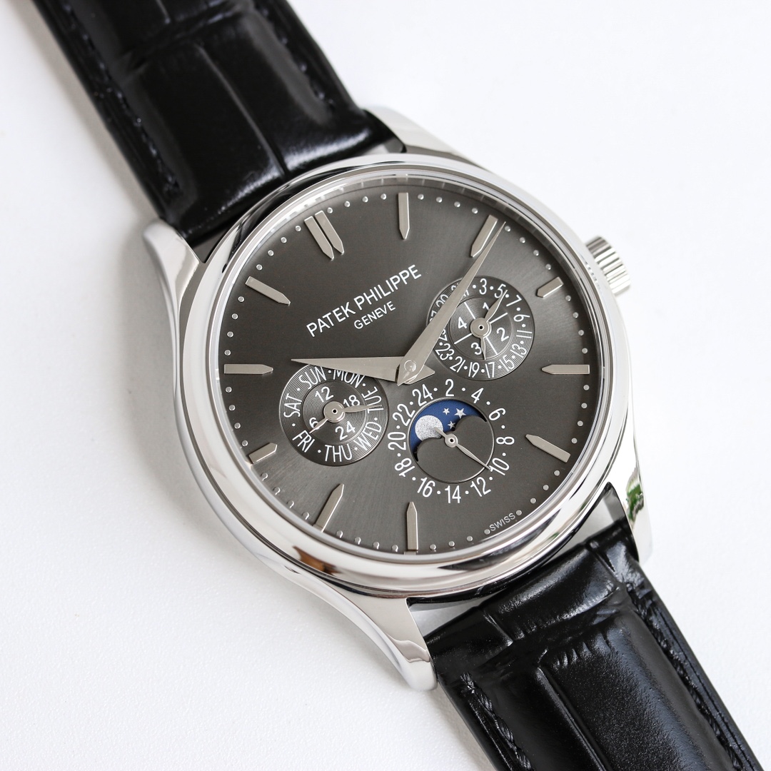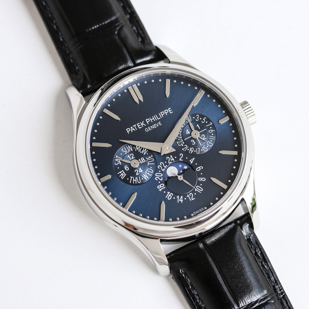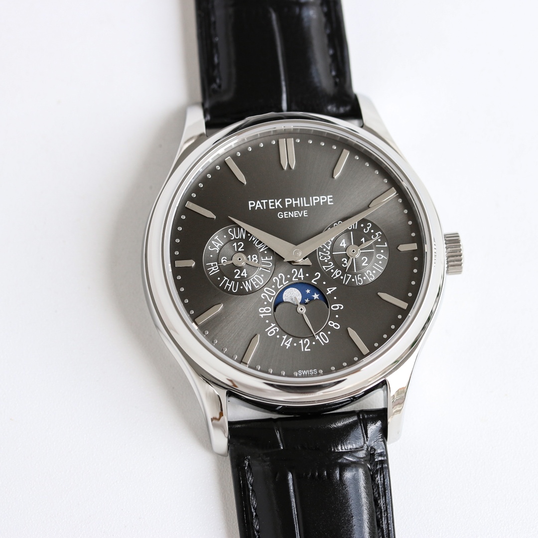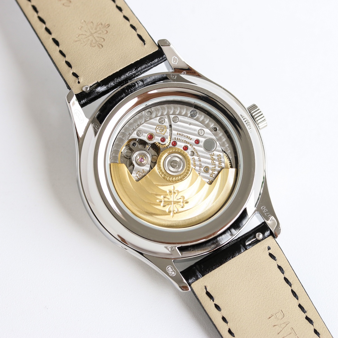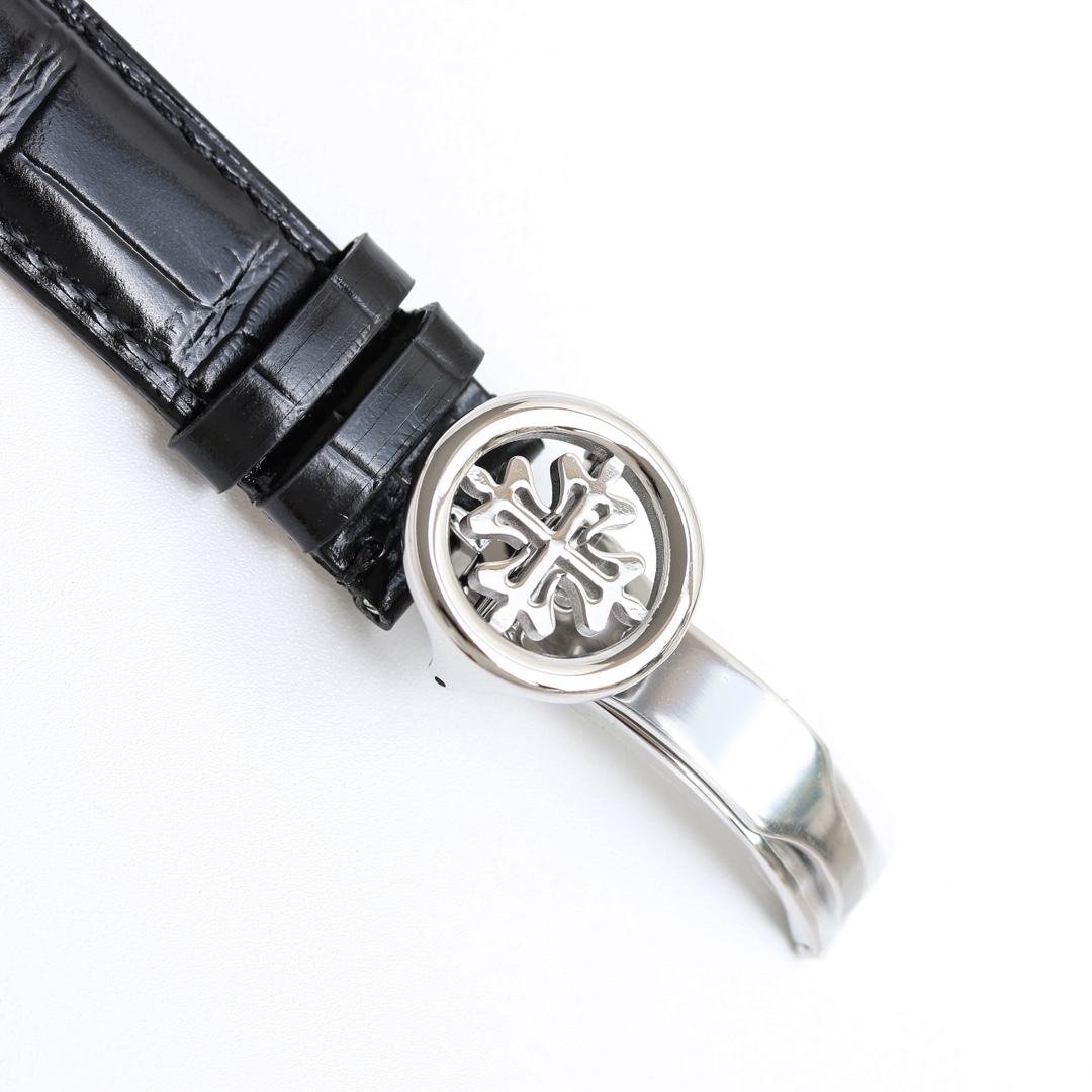 这款手表是AAAAA 1:1 质量 (非常棒). 使用了和原版一模一样的材料. 商标部分也保持了和百达翡丽/Patek Philippe一样. 图片拍摄是实物手表拍摄, 您所收到的实物保证和我们图片一模一样.