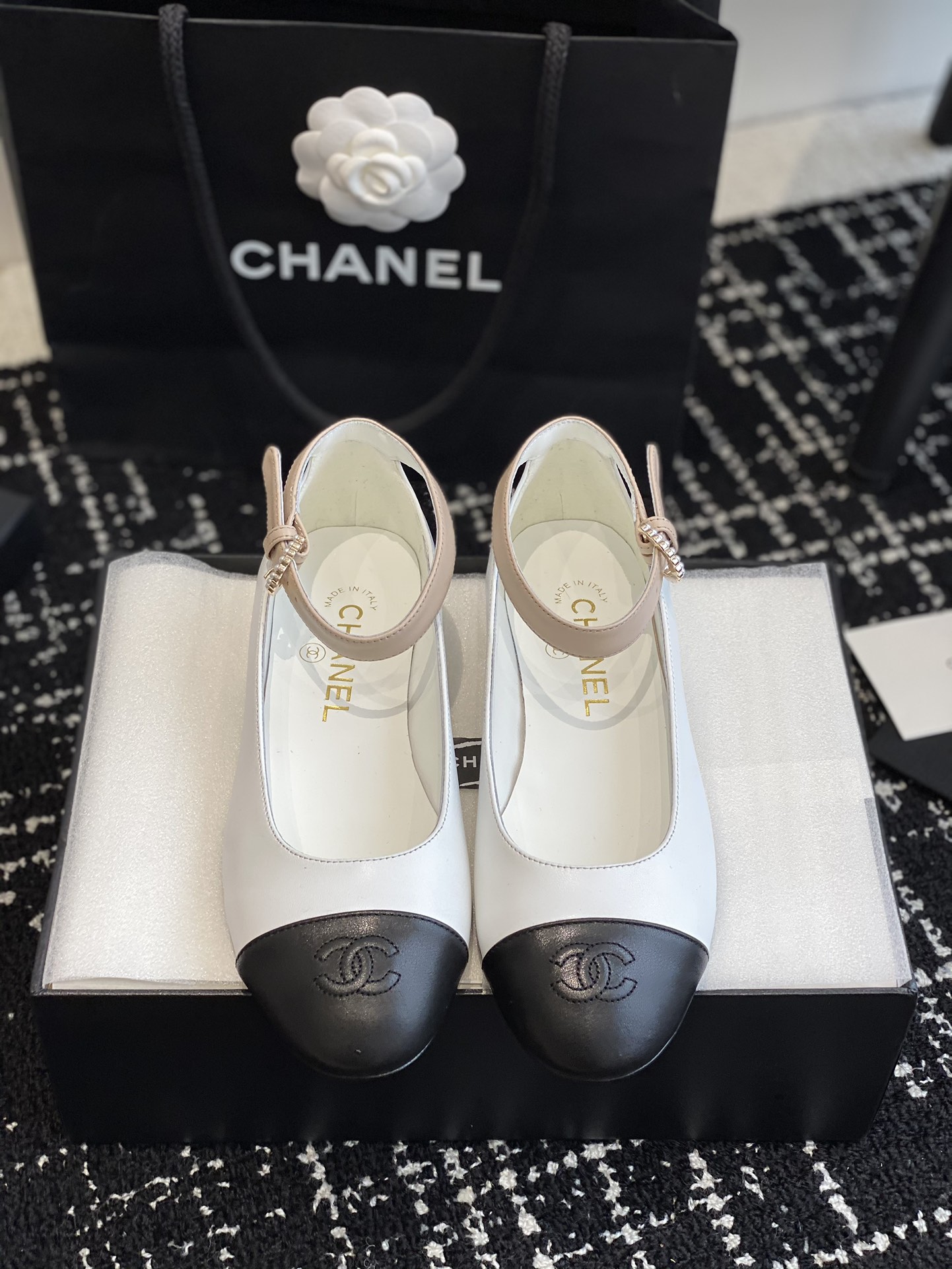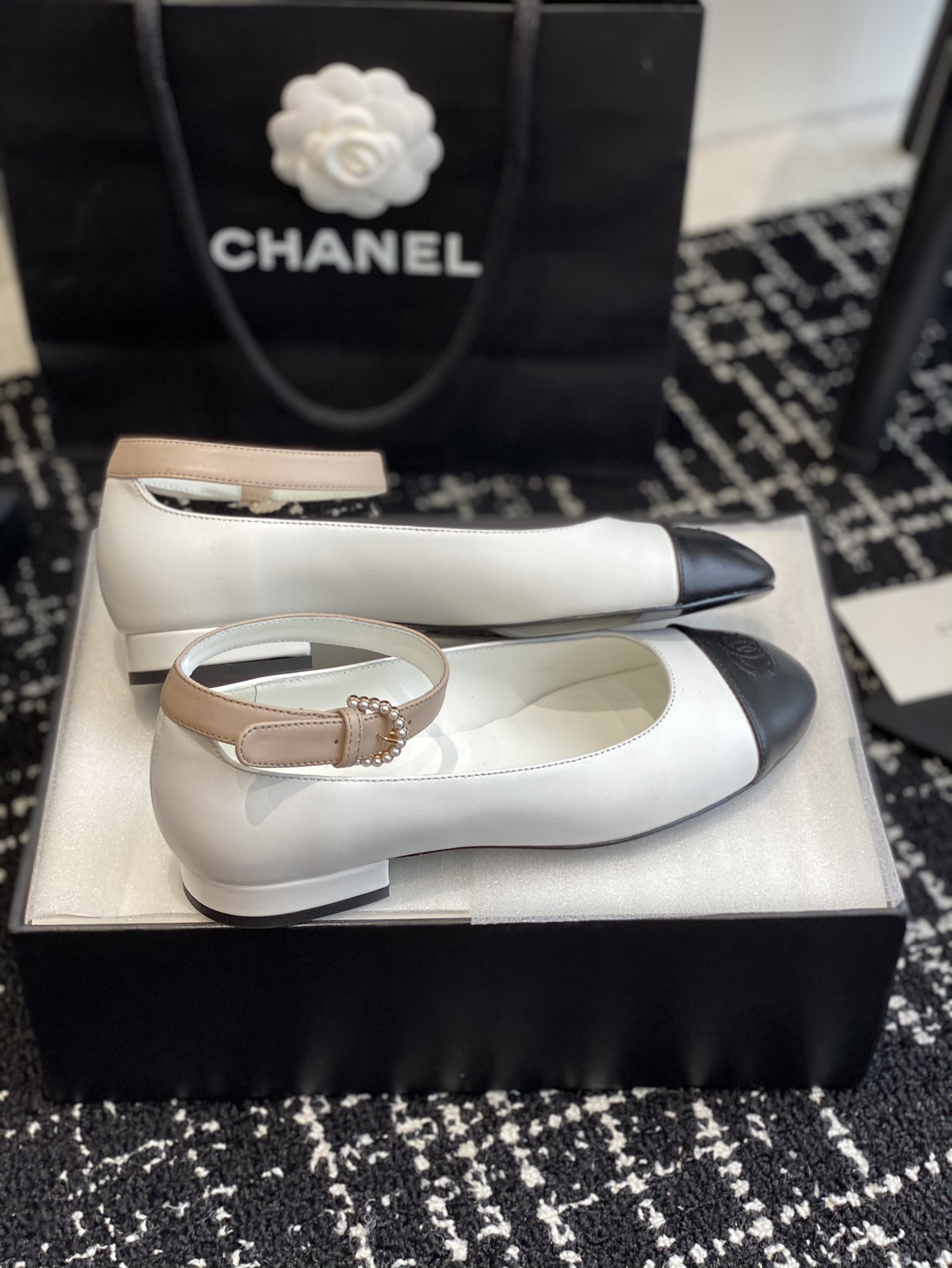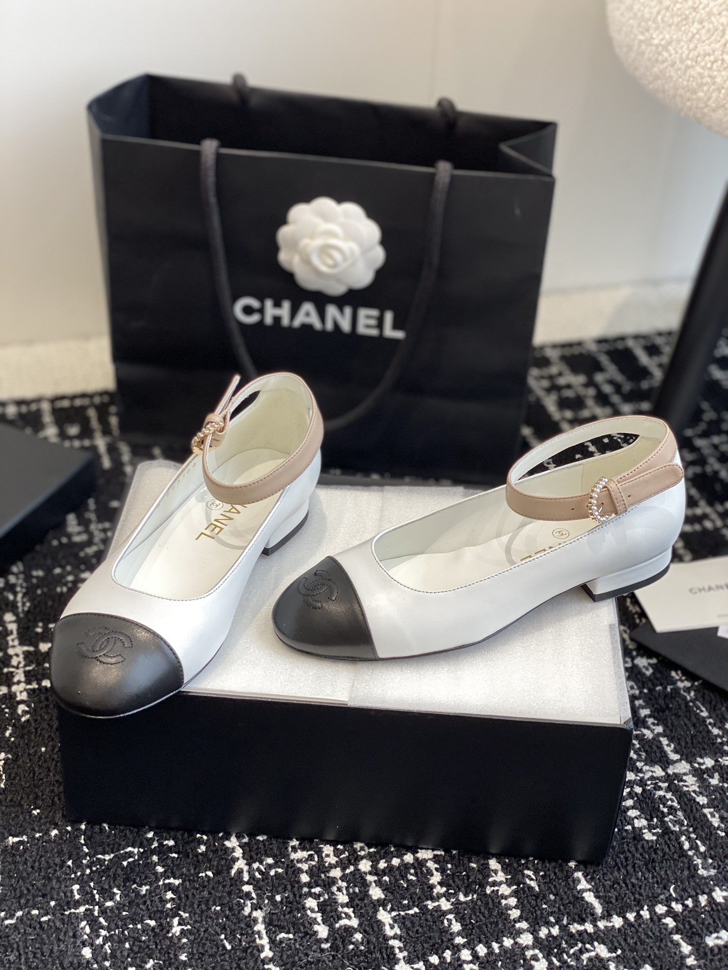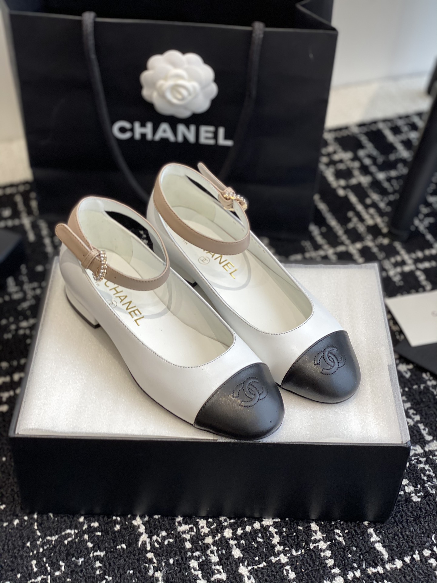 这款鞋子是AAAAA 1:1 质量 (非常棒). 使用了和原版一模一样的材料. 商标部分也保持了和香奈儿/Chanel一样. 图片拍摄是实物鞋子拍摄, 您所收到的实物保证和我们图片一模一样.