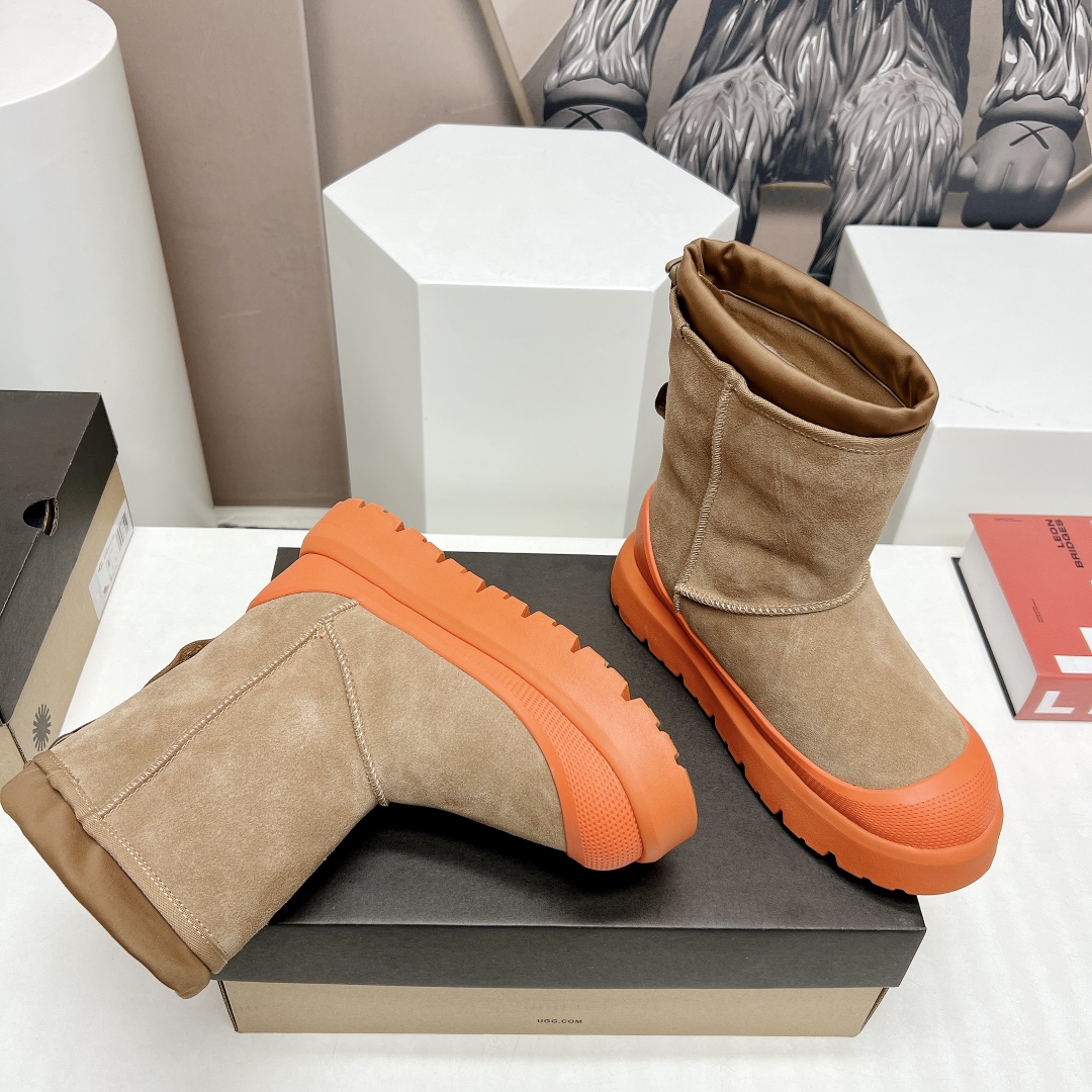 这款鞋子是AAAAA 1:1 质量 (非常棒). 使用了和原版一模一样的材料. 商标部分也保持了和UGG雪地靴一样. 图片拍摄是实物鞋子拍摄, 您所收到的实物保证和我们图片一模一样.