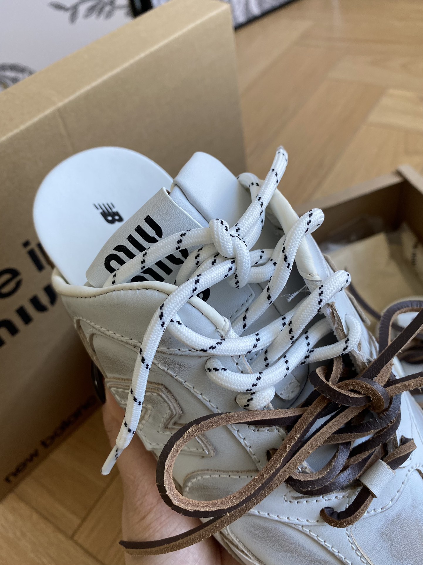 这款鞋子是AAAAA 1:1 质量 (非常棒). 使用了和原版一模一样的材料. 商标部分也保持了和缪缪/Miu Miu一样. 图片拍摄是实物鞋子拍摄, 您所收到的实物保证和我们图片一模一样.