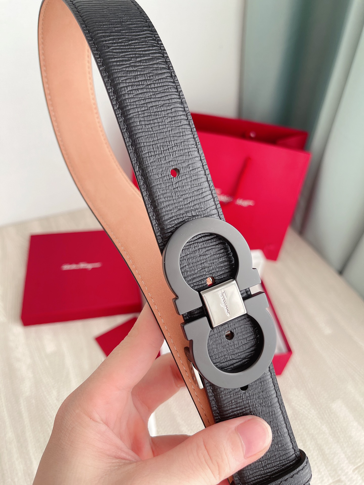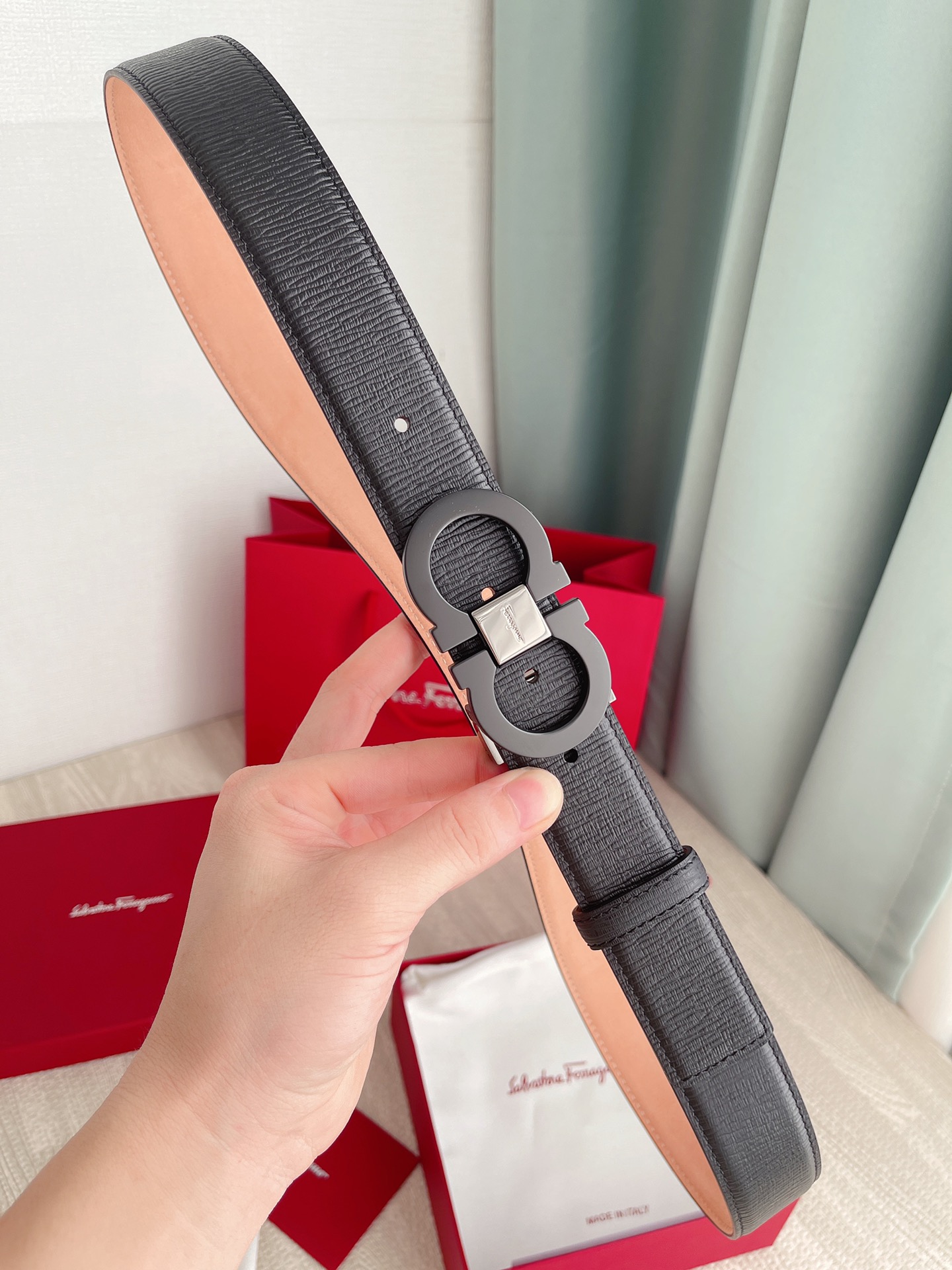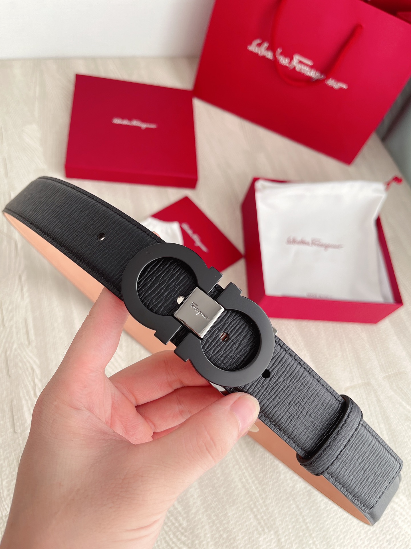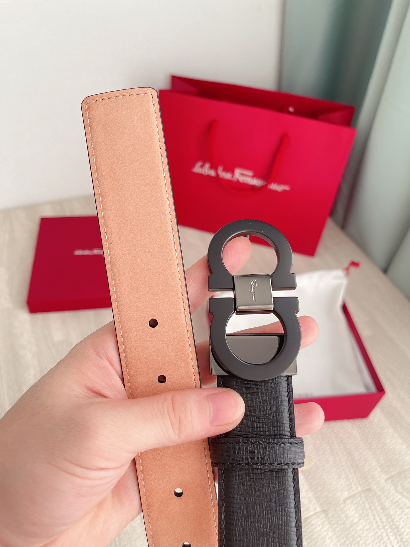 这款皮带是AAAAA 1:1 质量 (非常棒). 使用了和原版一模一样的材料. 商标部分也保持了和菲拉格慕/Salvatore Ferragamo一样. 图片拍摄是实物皮带拍摄, 您所收到的实物保证和我们图片一模一样.