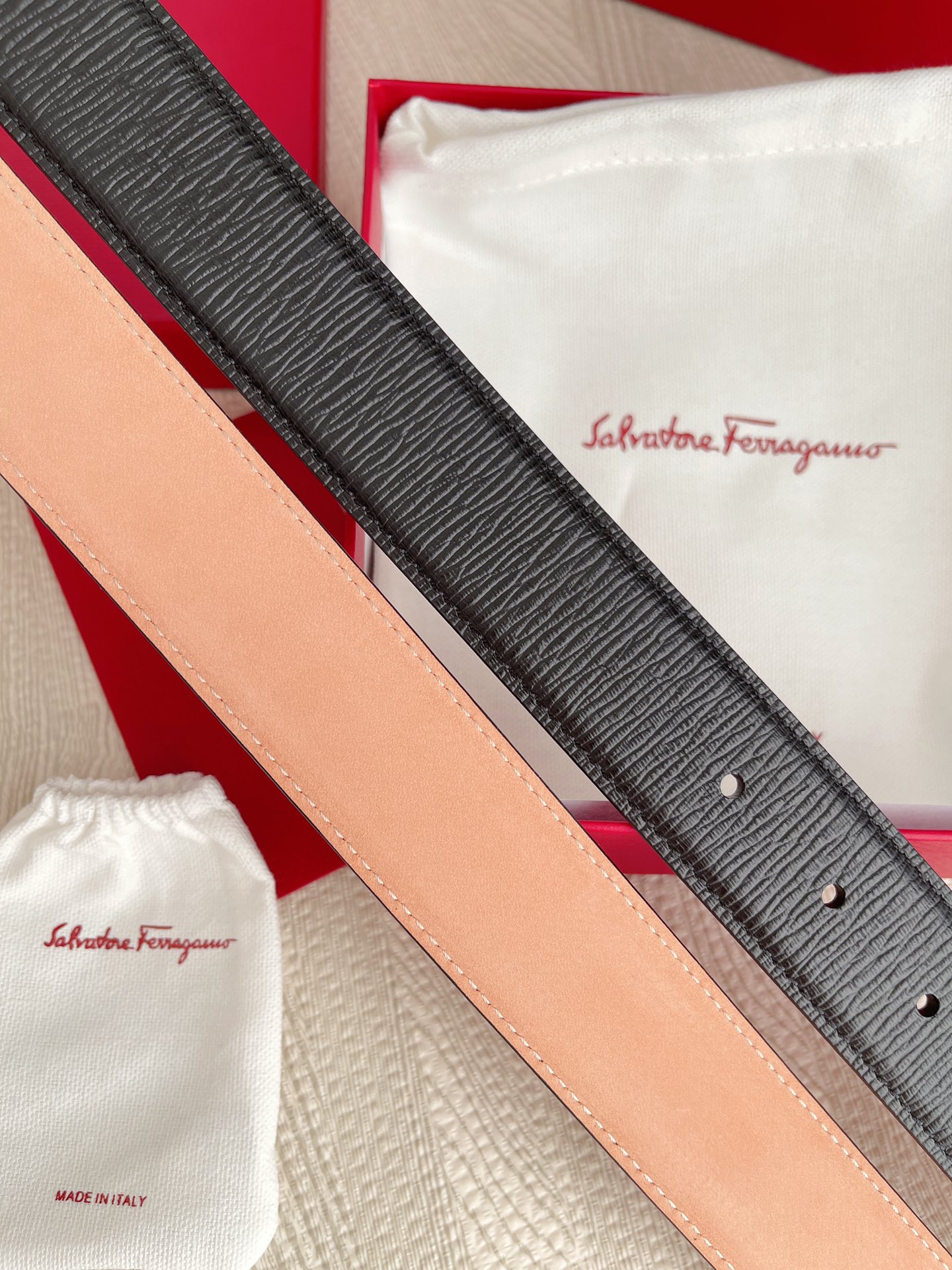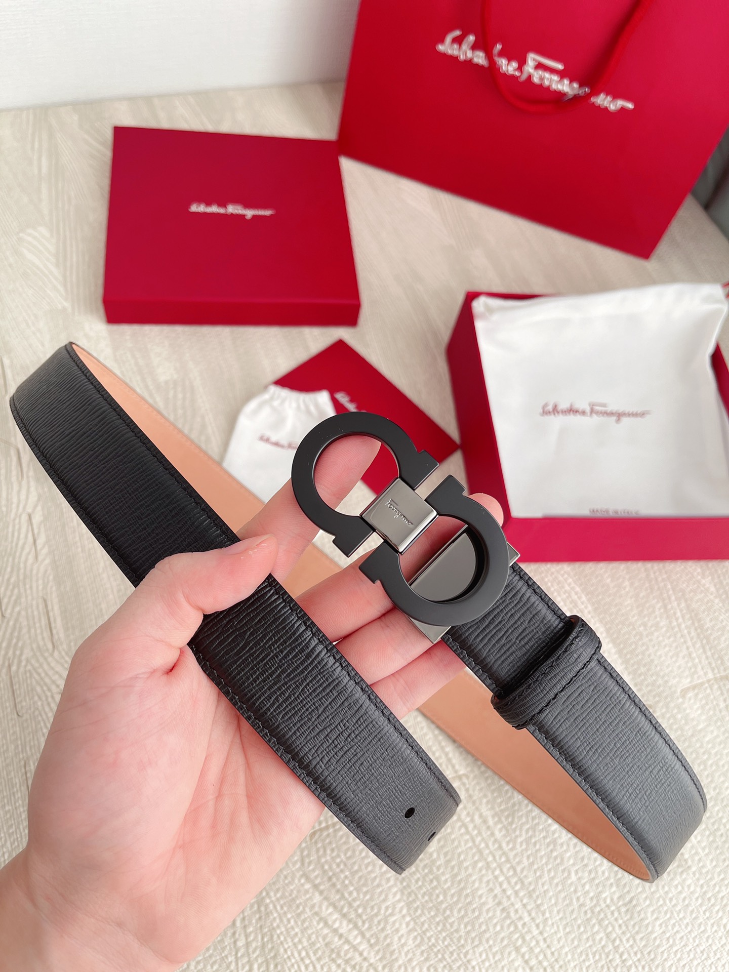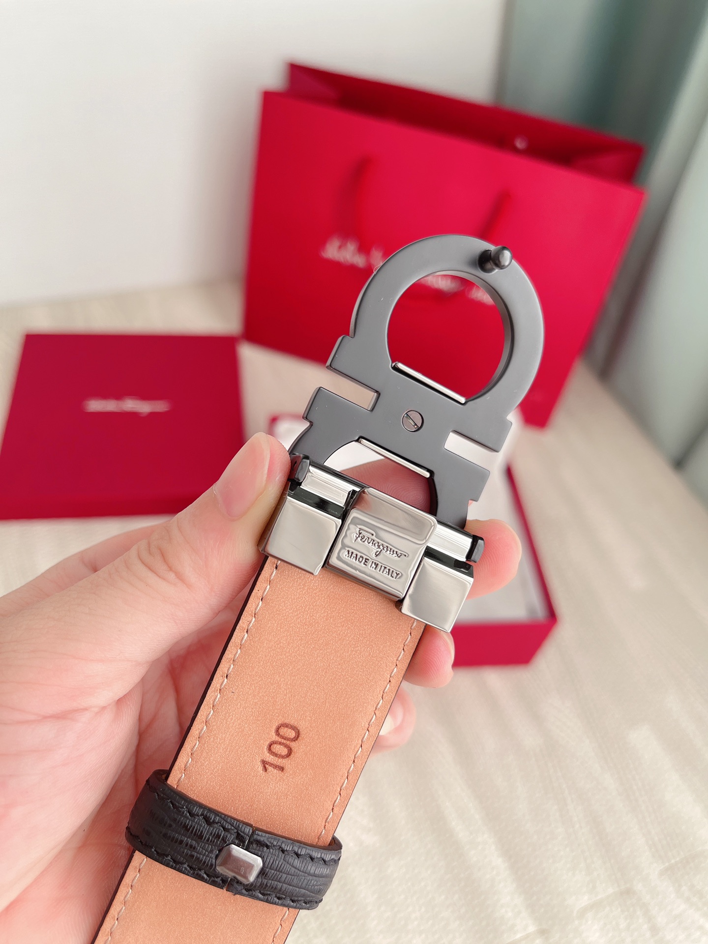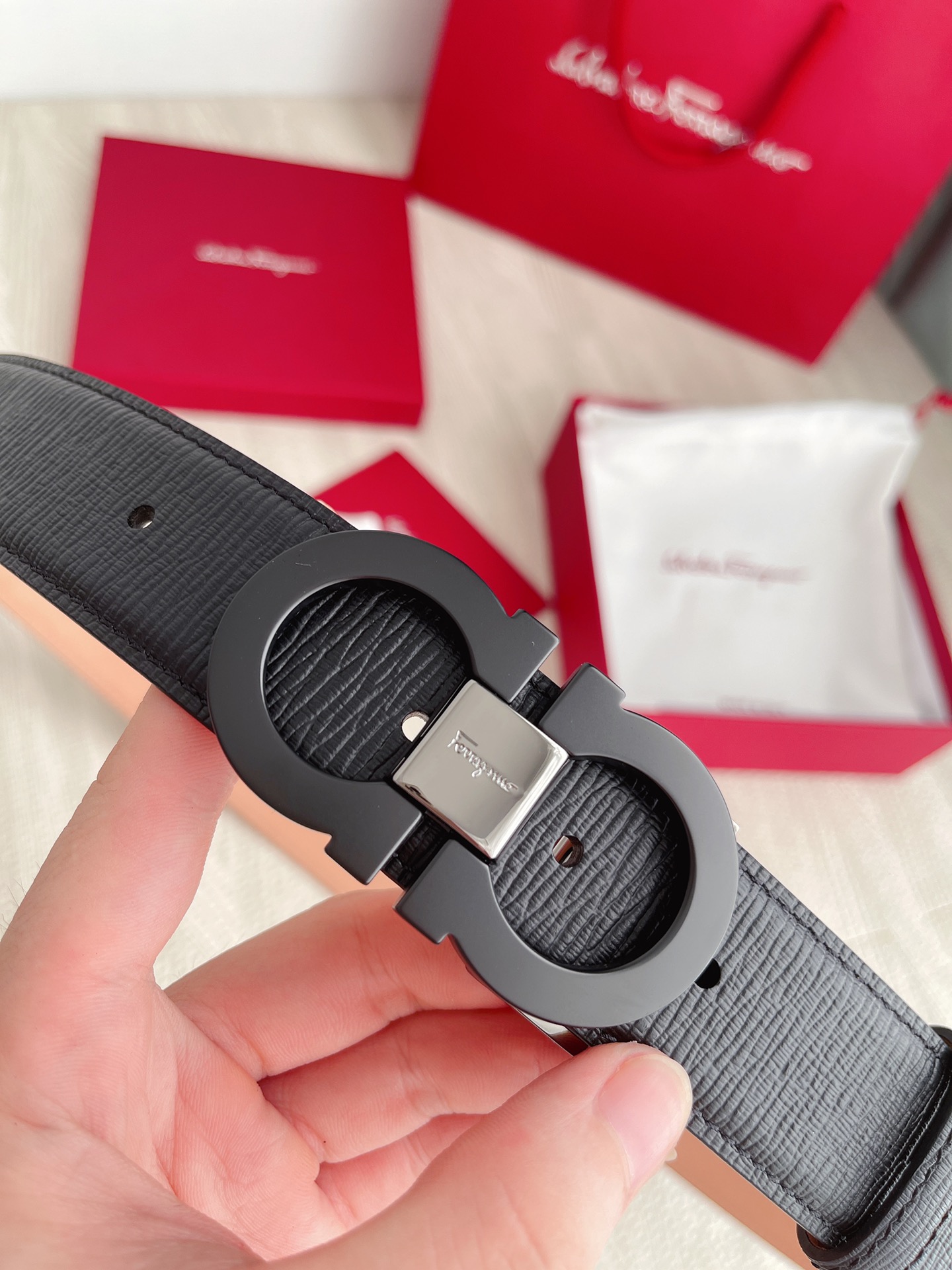 这款皮带是AAAAA 1:1 质量 (非常棒). 使用了和原版一模一样的材料. 商标部分也保持了和菲拉格慕/Salvatore Ferragamo一样. 图片拍摄是实物皮带拍摄, 您所收到的实物保证和我们图片一模一样.