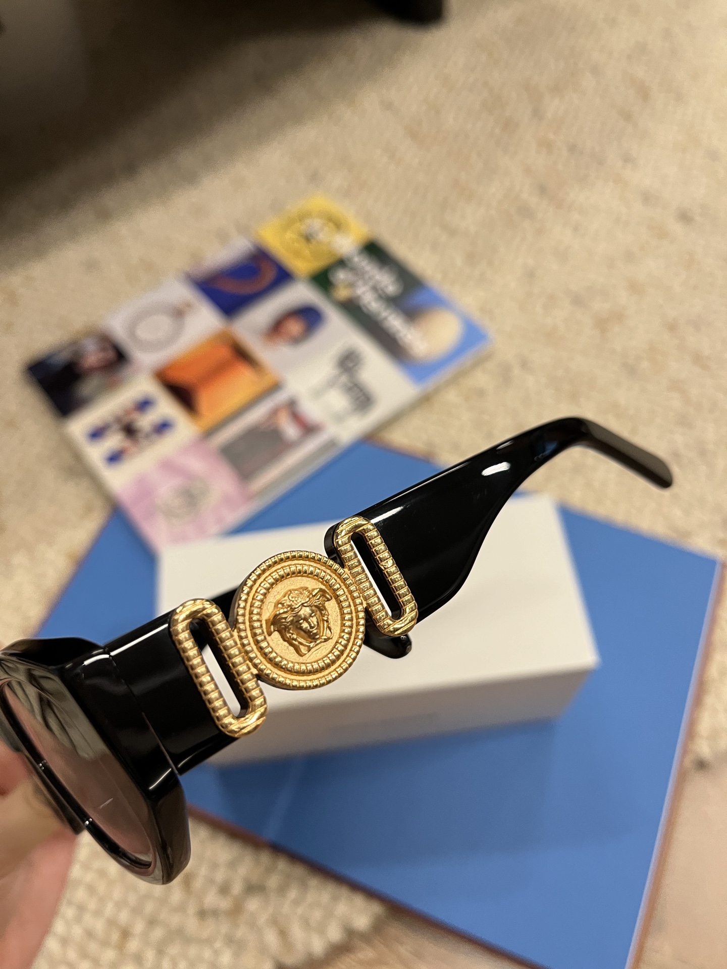 这款太阳眼镜是AAAAA 1:1 质量 (非常棒). 使用了和原版一模一样的材料. 商标部分也保持了和范思哲/Versace一样. 图片拍摄是实物太阳眼镜拍摄, 您所收到的实物保证和我们图片一模一样.