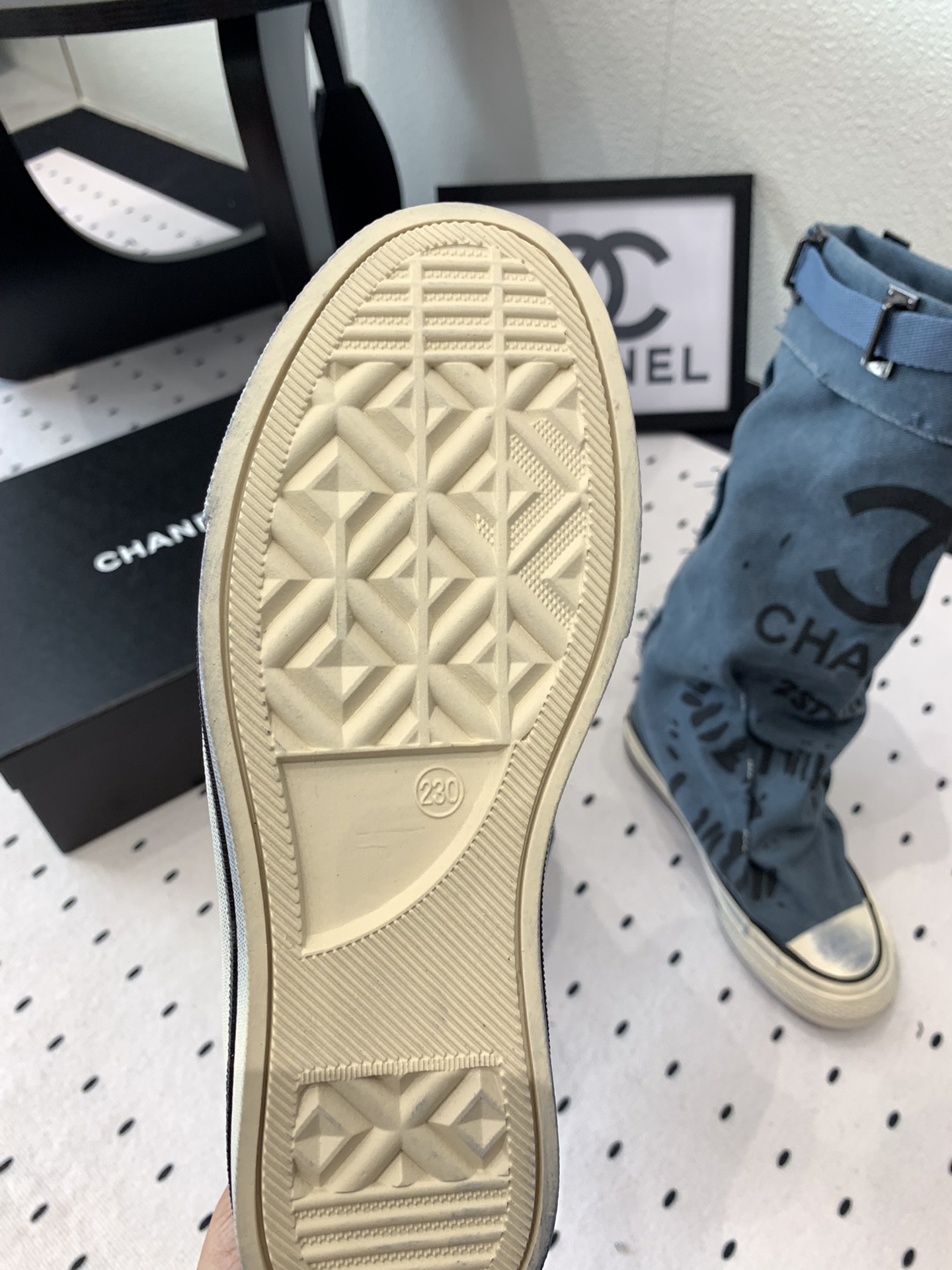 这款鞋子是AAAAA 1:1 质量 (非常棒). 使用了和原版一模一样的材料. 商标部分也保持了和香奈儿/Chanel一样. 图片拍摄是实物鞋子拍摄, 您所收到的实物保证和我们图片一模一样.