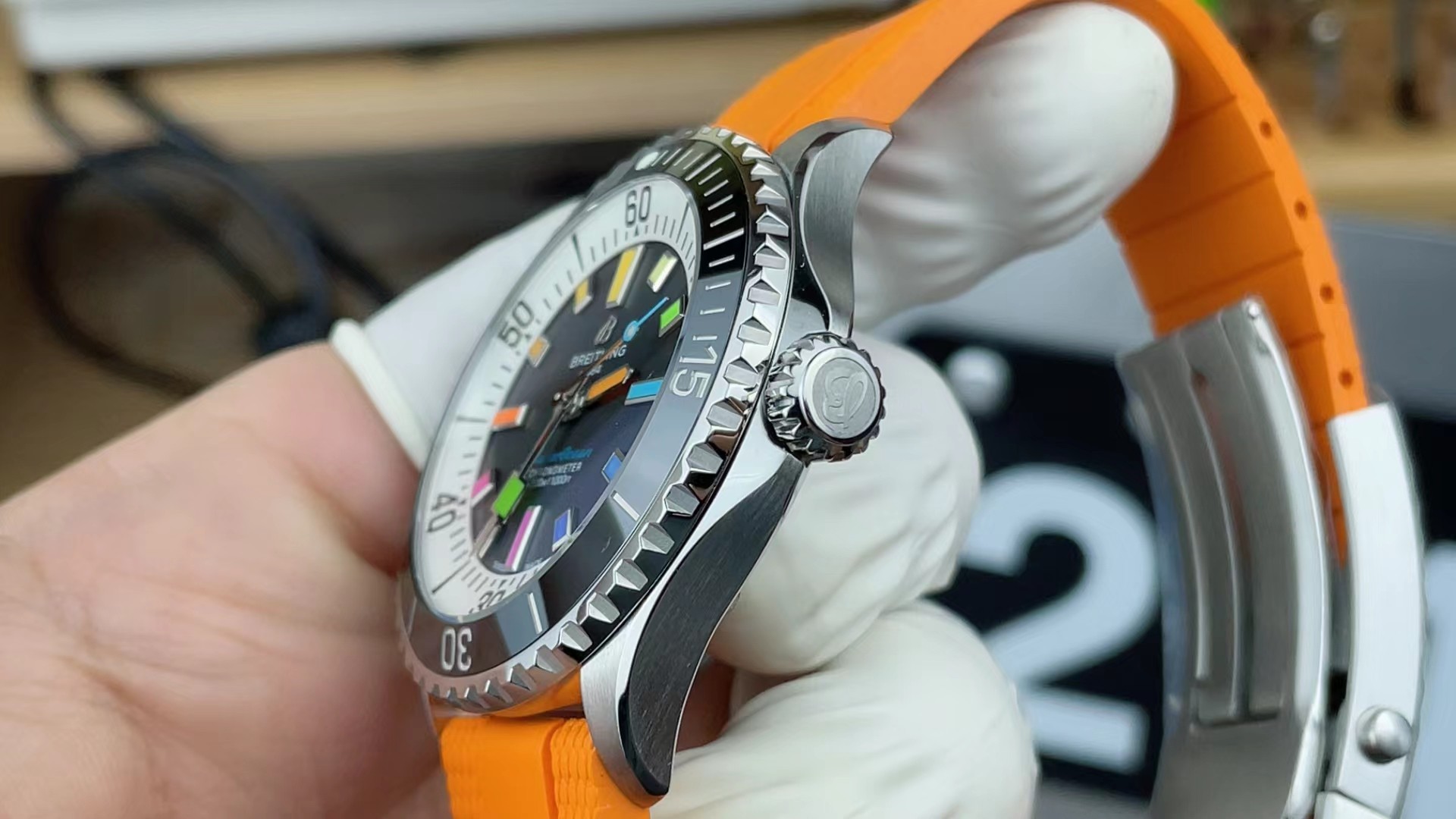 这款手表是AAAAA 1:1 质量 (非常棒). 使用了和原版一模一样的材料. 商标部分也保持了和一样. 图片拍摄是实物手表拍摄, 您所收到的实物保证和我们图片一模一样.