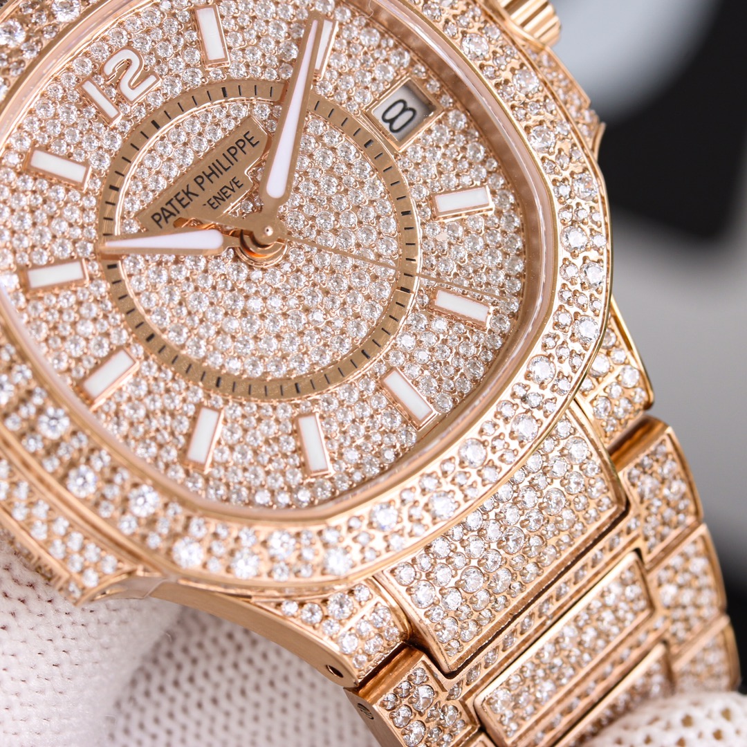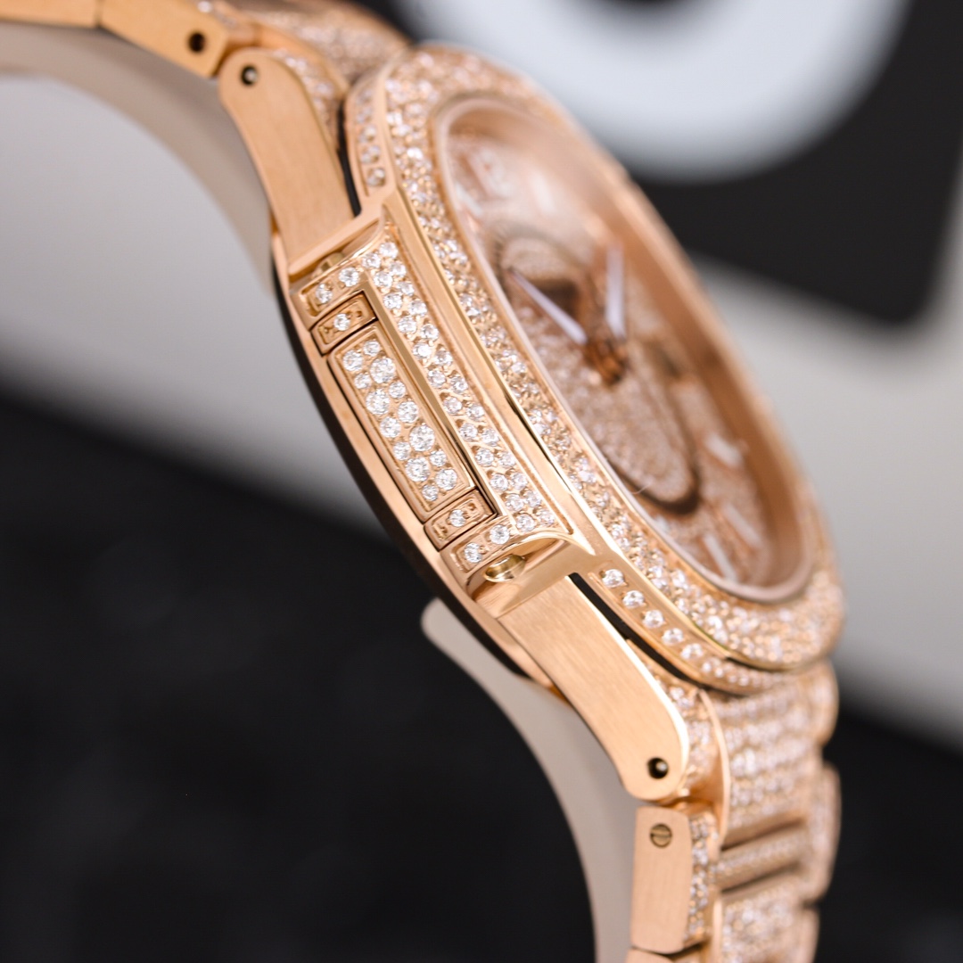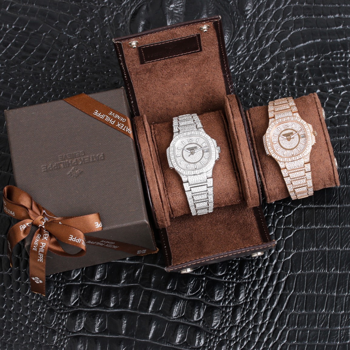 这款手表是AAAAA 1:1 质量 (非常棒). 使用了和原版一模一样的材料. 商标部分也保持了和百达翡丽/Patek Philippe一样. 图片拍摄是实物手表拍摄, 您所收到的实物保证和我们图片一模一样.
