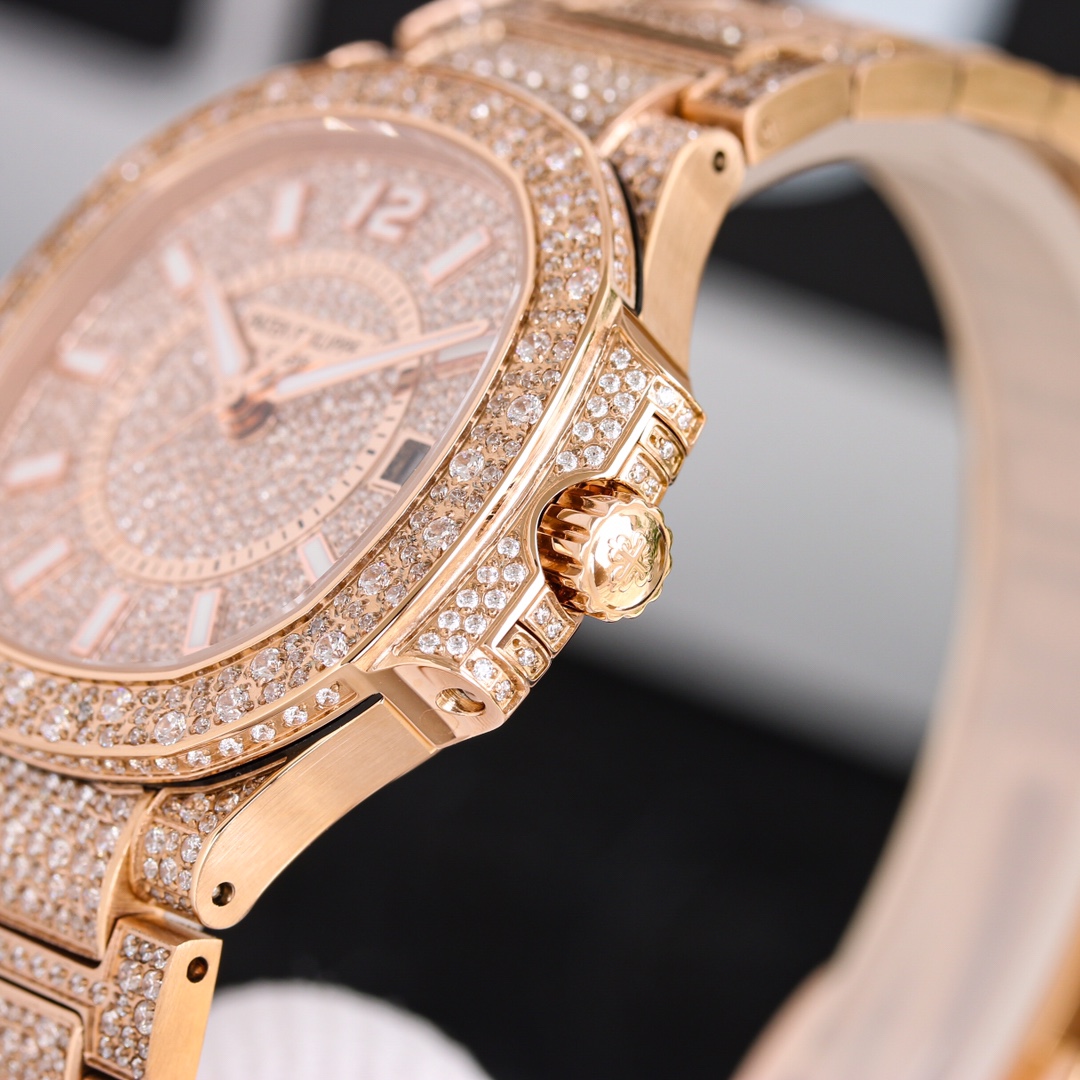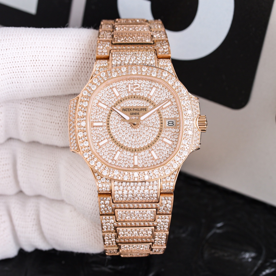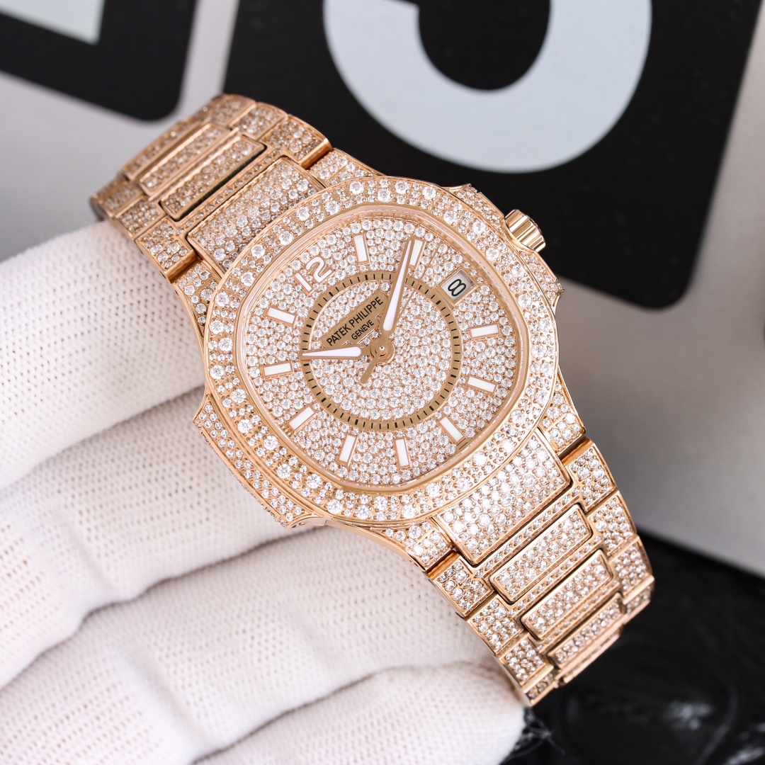 这款手表是AAAAA 1:1 质量 (非常棒). 使用了和原版一模一样的材料. 商标部分也保持了和百达翡丽/Patek Philippe一样. 图片拍摄是实物手表拍摄, 您所收到的实物保证和我们图片一模一样.