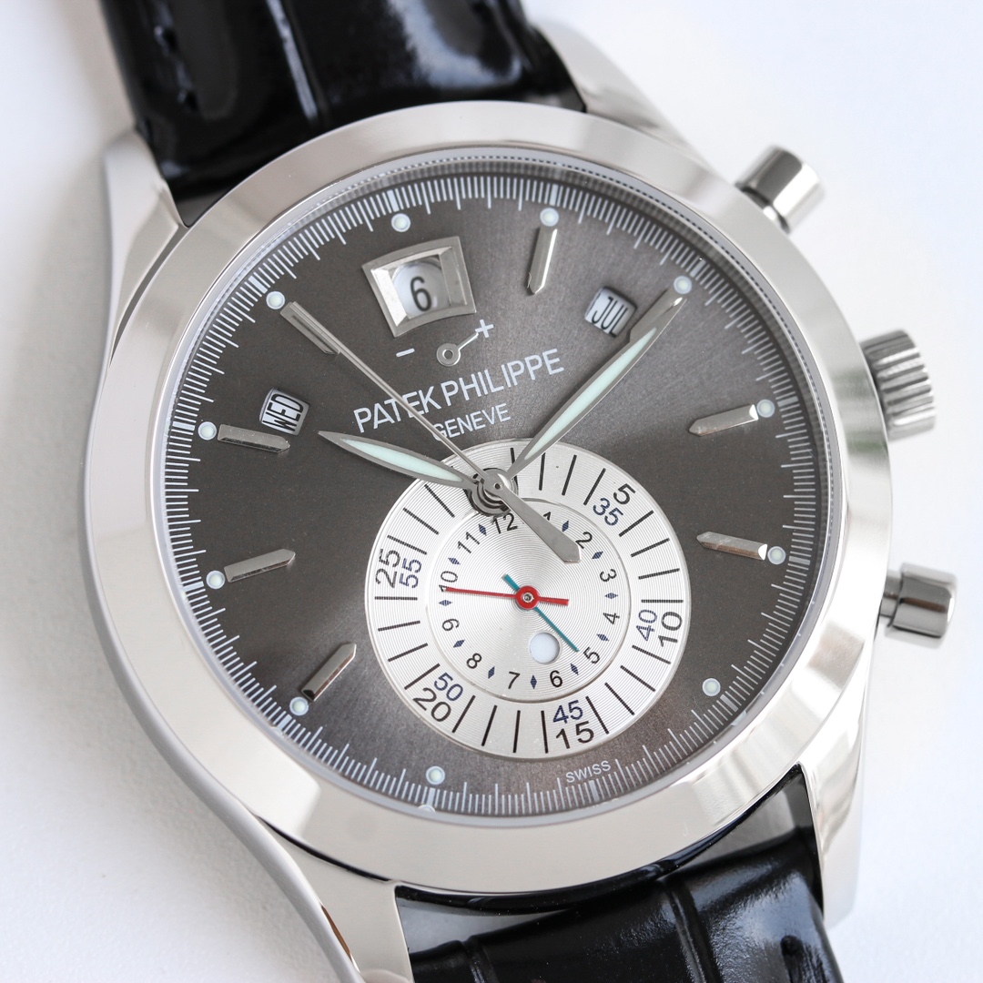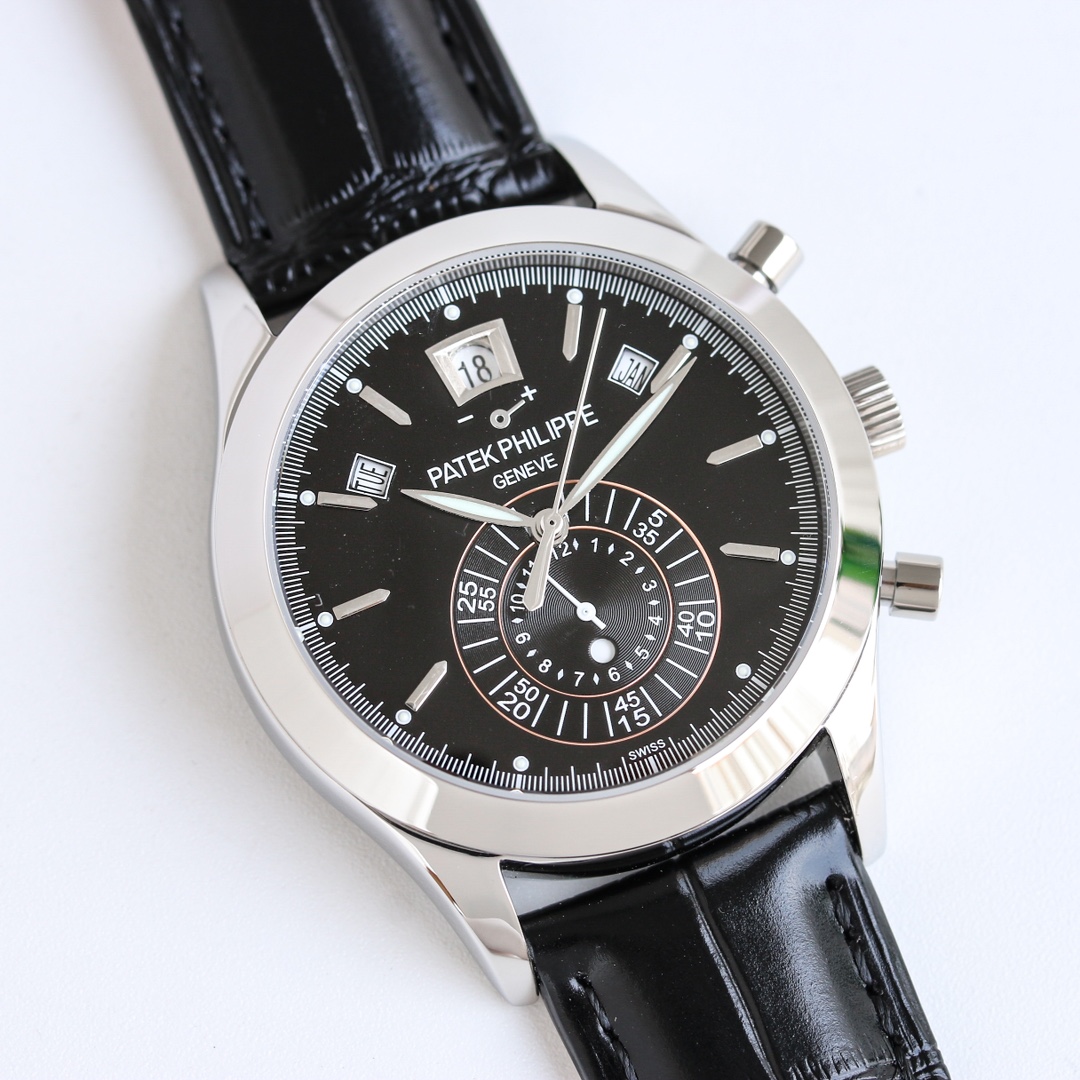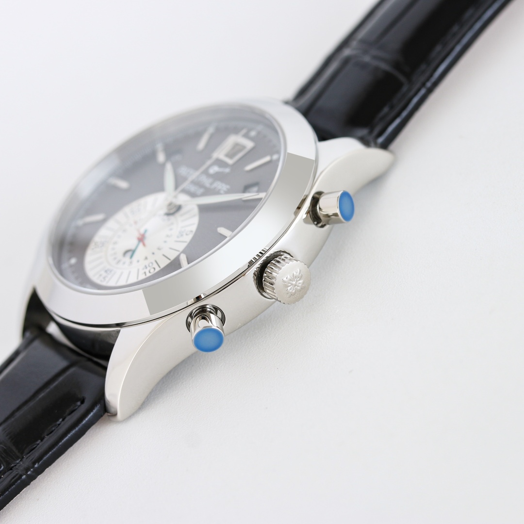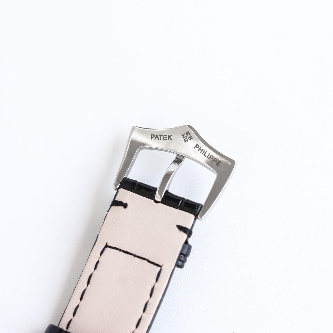 这款手表是AAAAA 1:1 质量 (非常棒). 使用了和原版一模一样的材料. 商标部分也保持了和百达翡丽/Patek Philippe一样. 图片拍摄是实物手表拍摄, 您所收到的实物保证和我们图片一模一样.