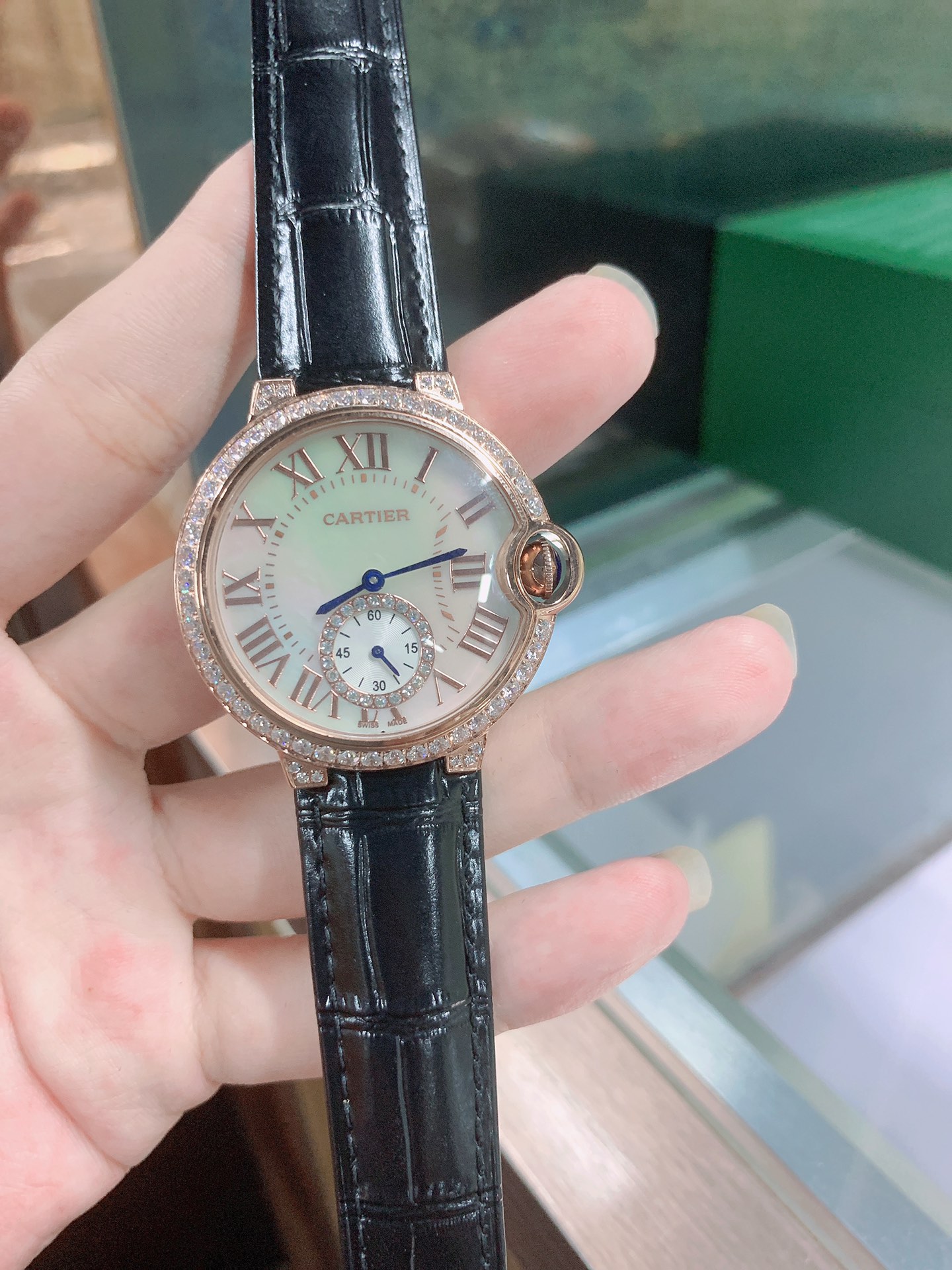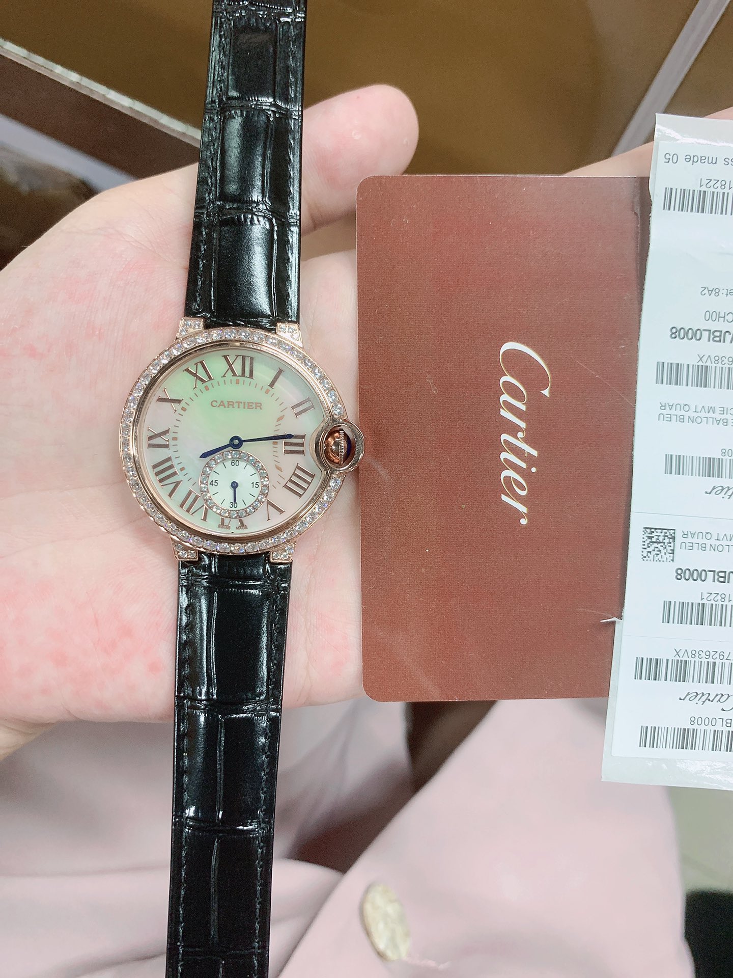 这款手表是AAAAA 1:1 质量 (非常棒). 使用了和原版一模一样的材料. 商标部分也保持了和卡地亚/Cartier一样. 图片拍摄是实物手表拍摄, 您所收到的实物保证和我们图片一模一样.