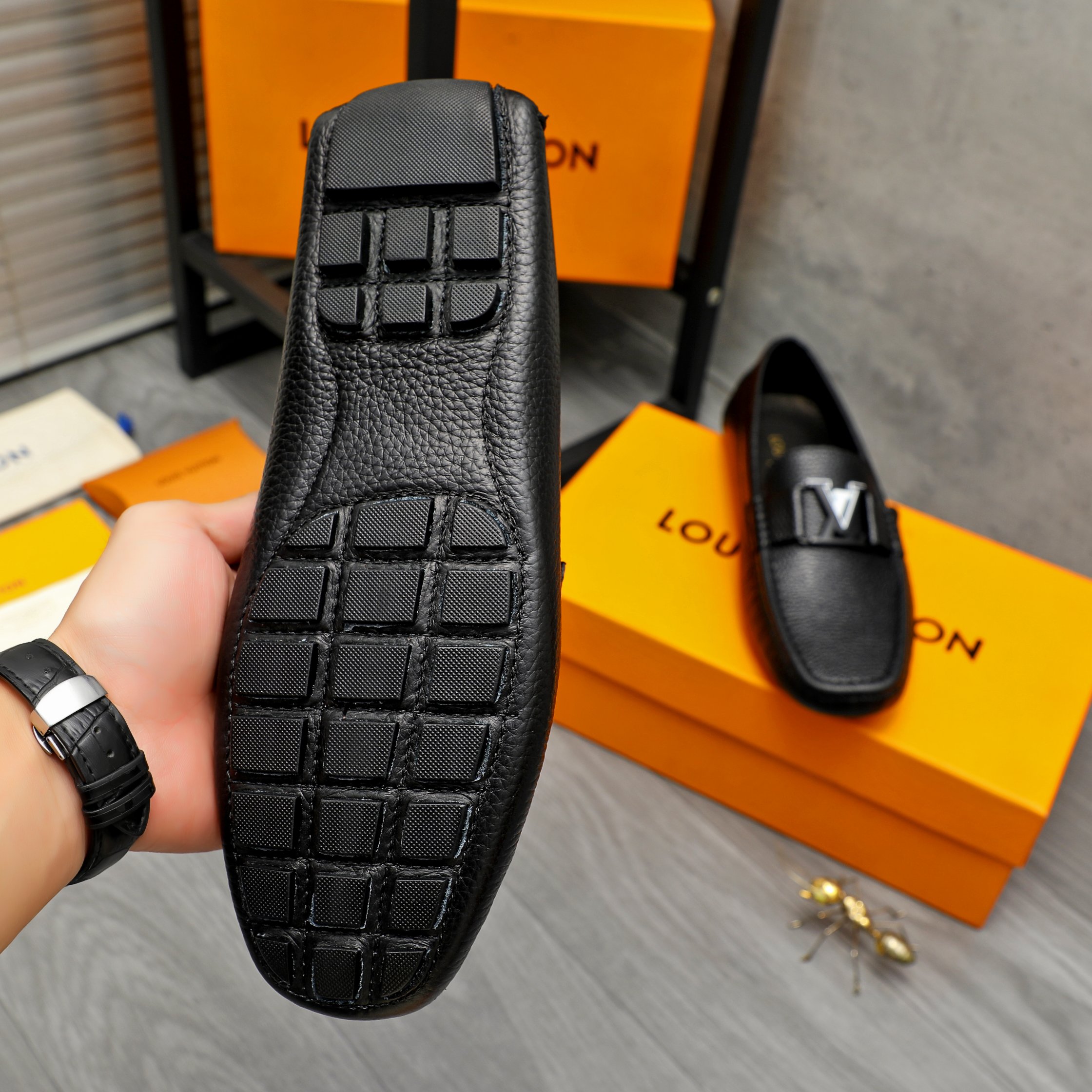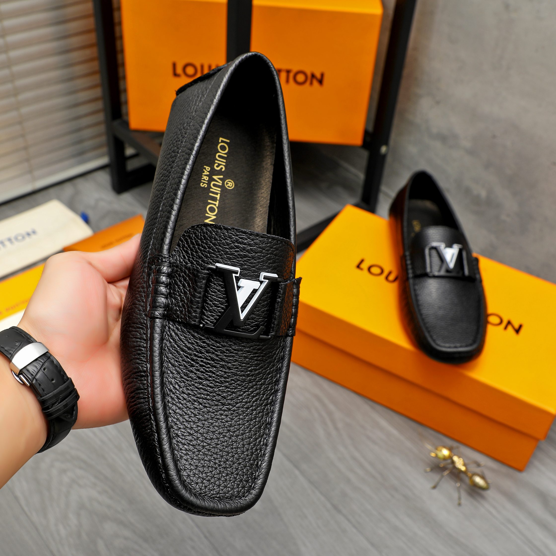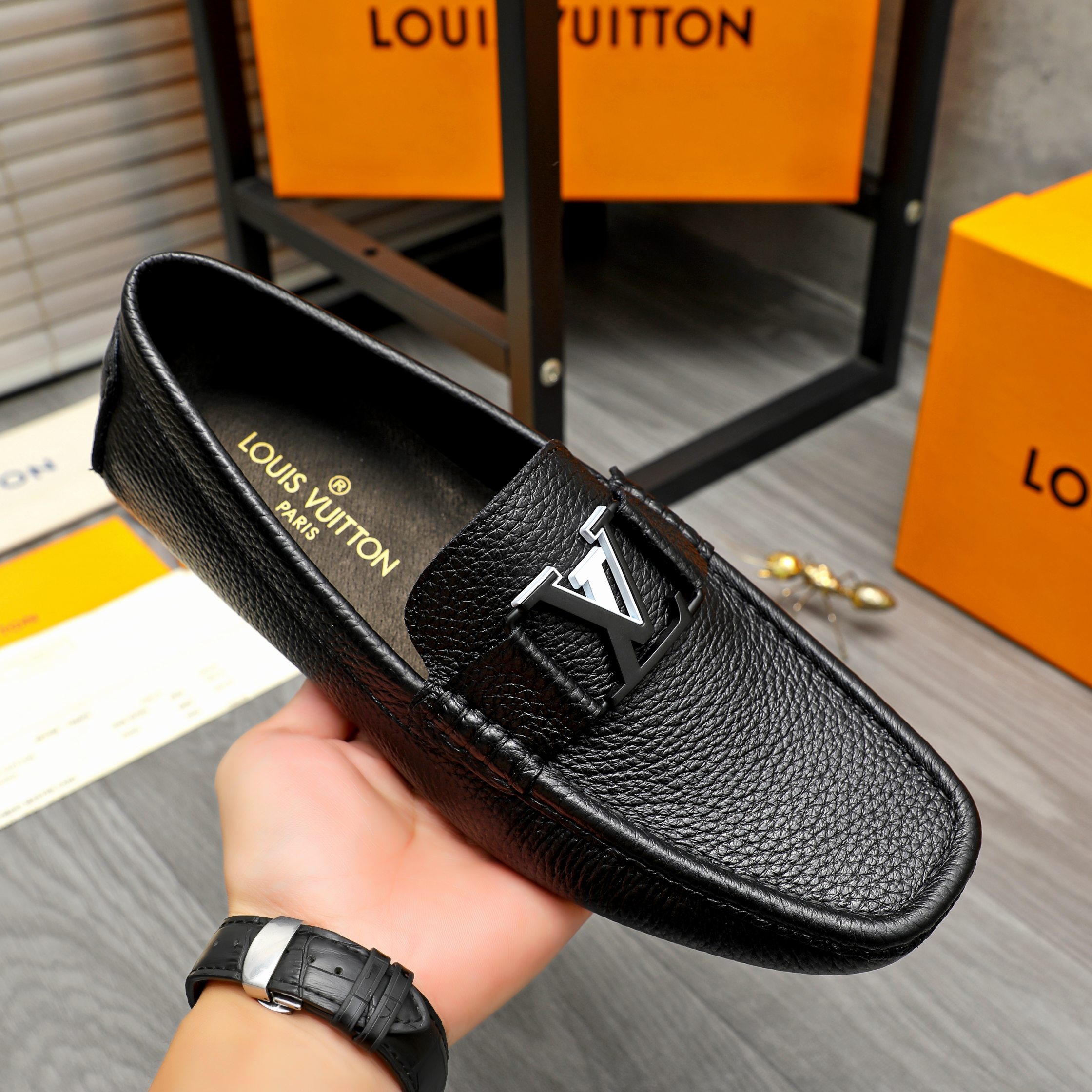 这款鞋子是AAAAA 1:1 质量 (非常棒). 使用了和原版一模一样的材料. 商标部分也保持了和路易威登/Louis Vuitton一样. 图片拍摄是实物鞋子拍摄, 您所收到的实物保证和我们图片一模一样.