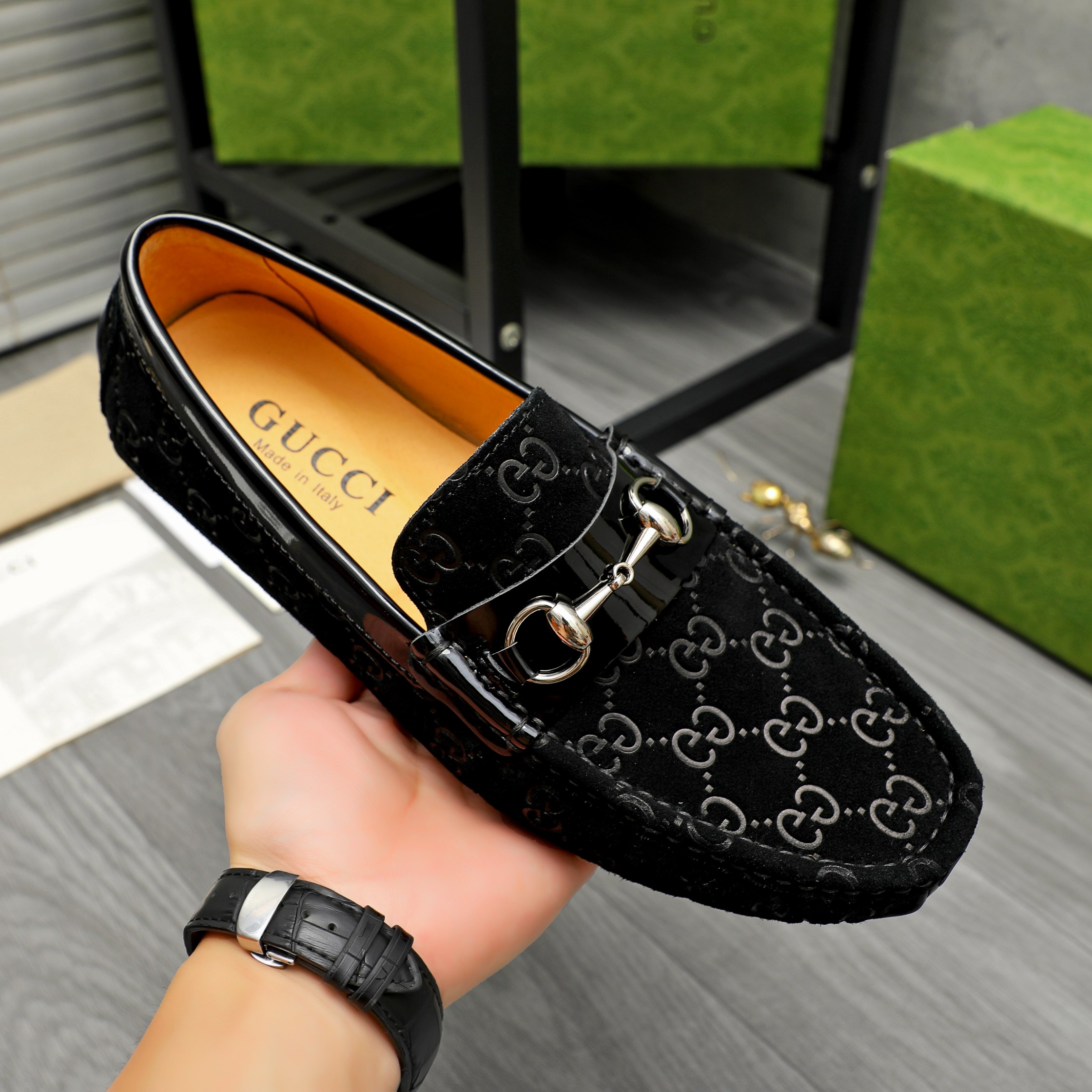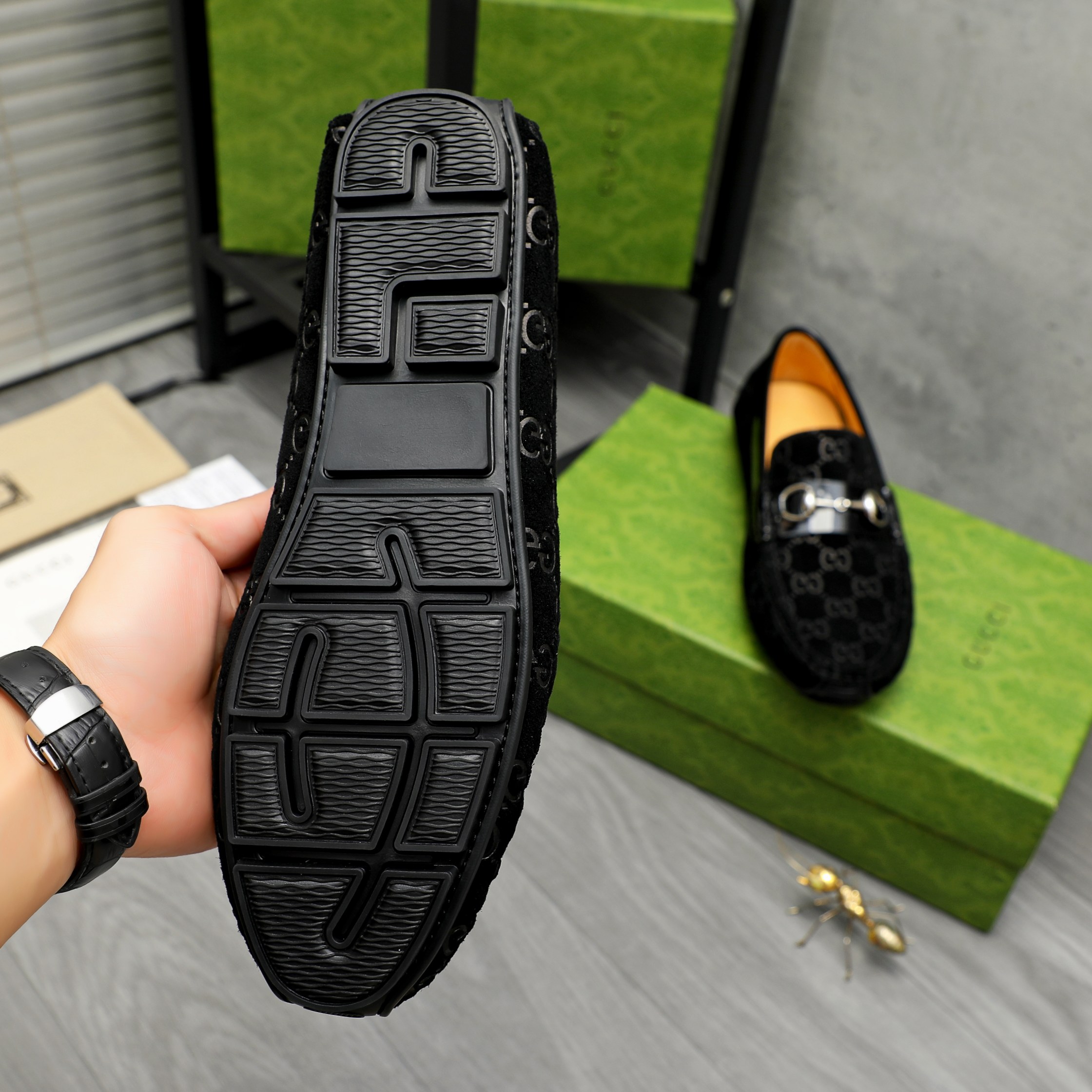 这款鞋子是AAAAA 1:1 质量 (非常棒). 使用了和原版一模一样的材料. 商标部分也保持了和古奇/Gucci一样. 图片拍摄是实物鞋子拍摄, 您所收到的实物保证和我们图片一模一样.