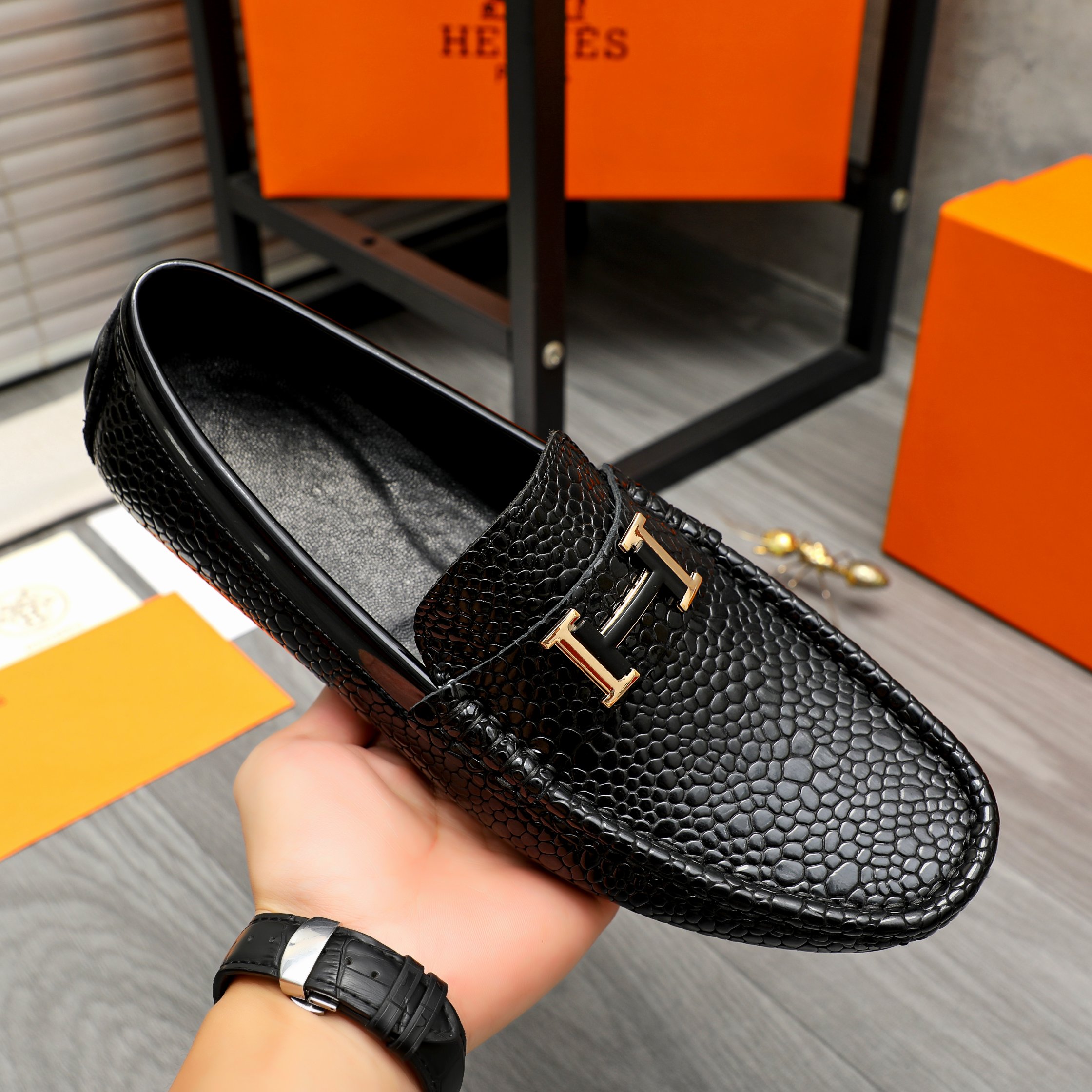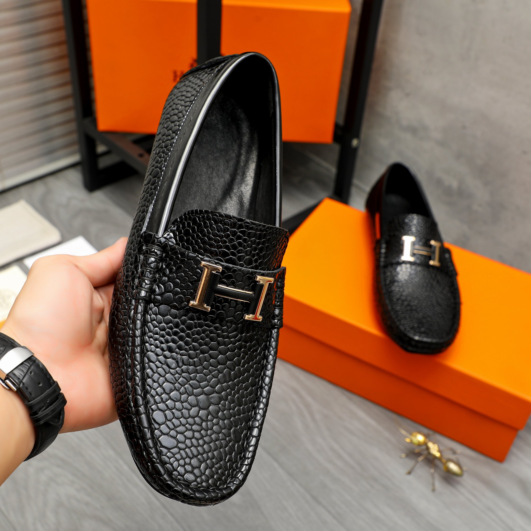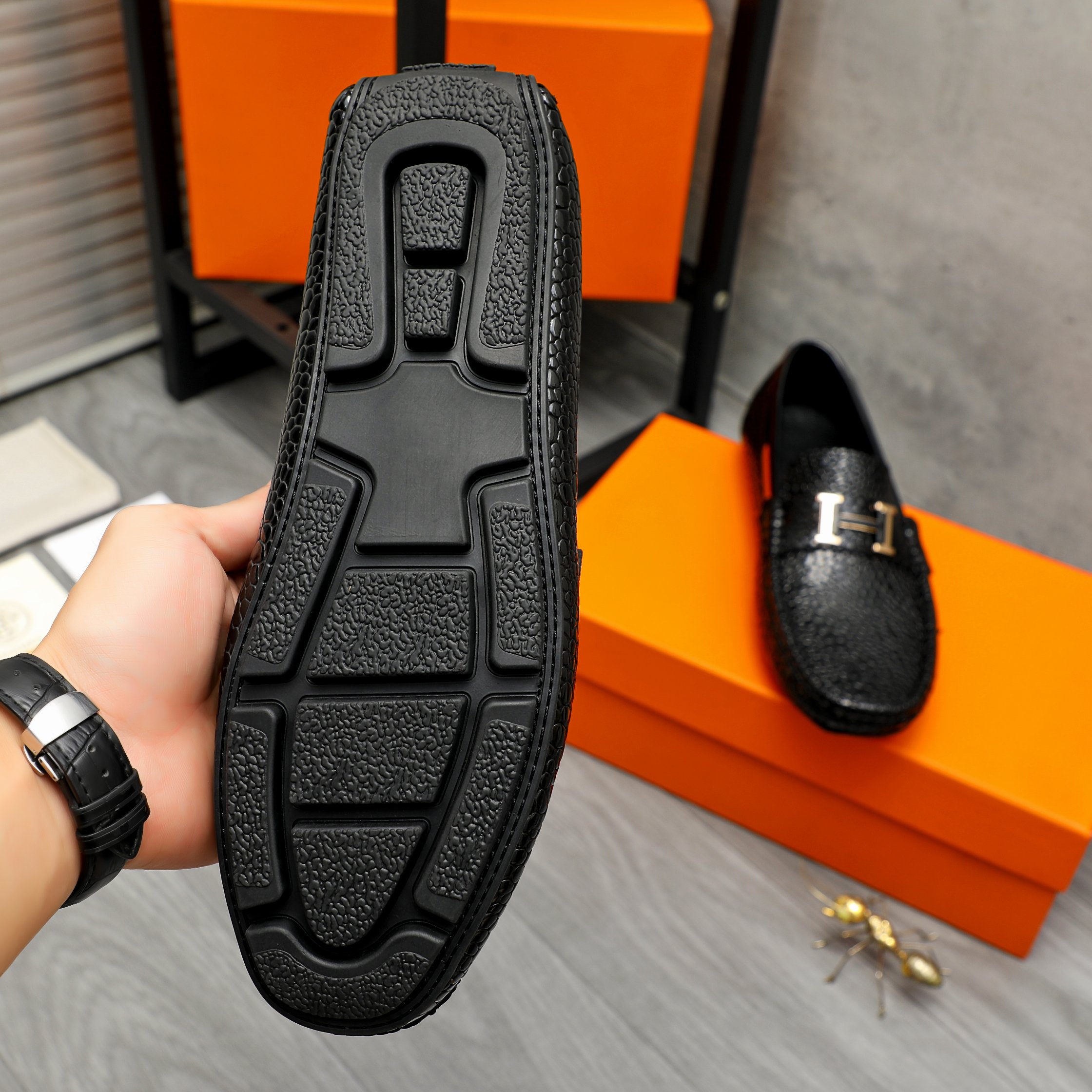 这款鞋子是AAAAA 1:1 质量 (非常棒). 使用了和原版一模一样的材料. 商标部分也保持了和爱马仕/Hermes一样. 图片拍摄是实物鞋子拍摄, 您所收到的实物保证和我们图片一模一样.