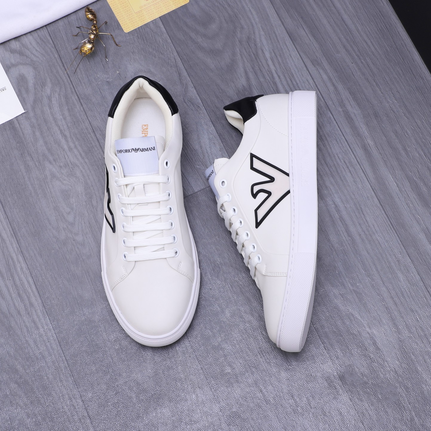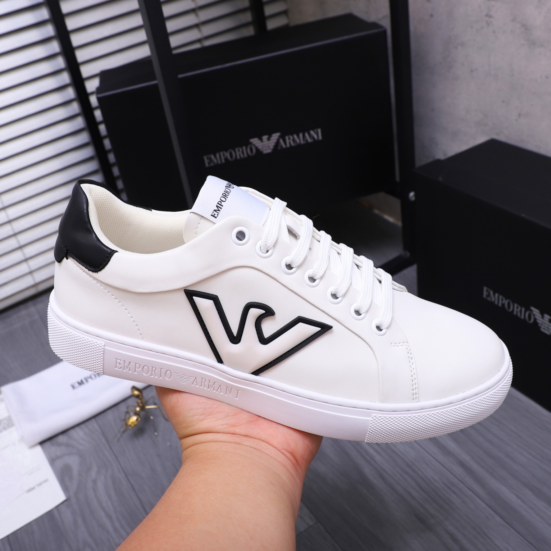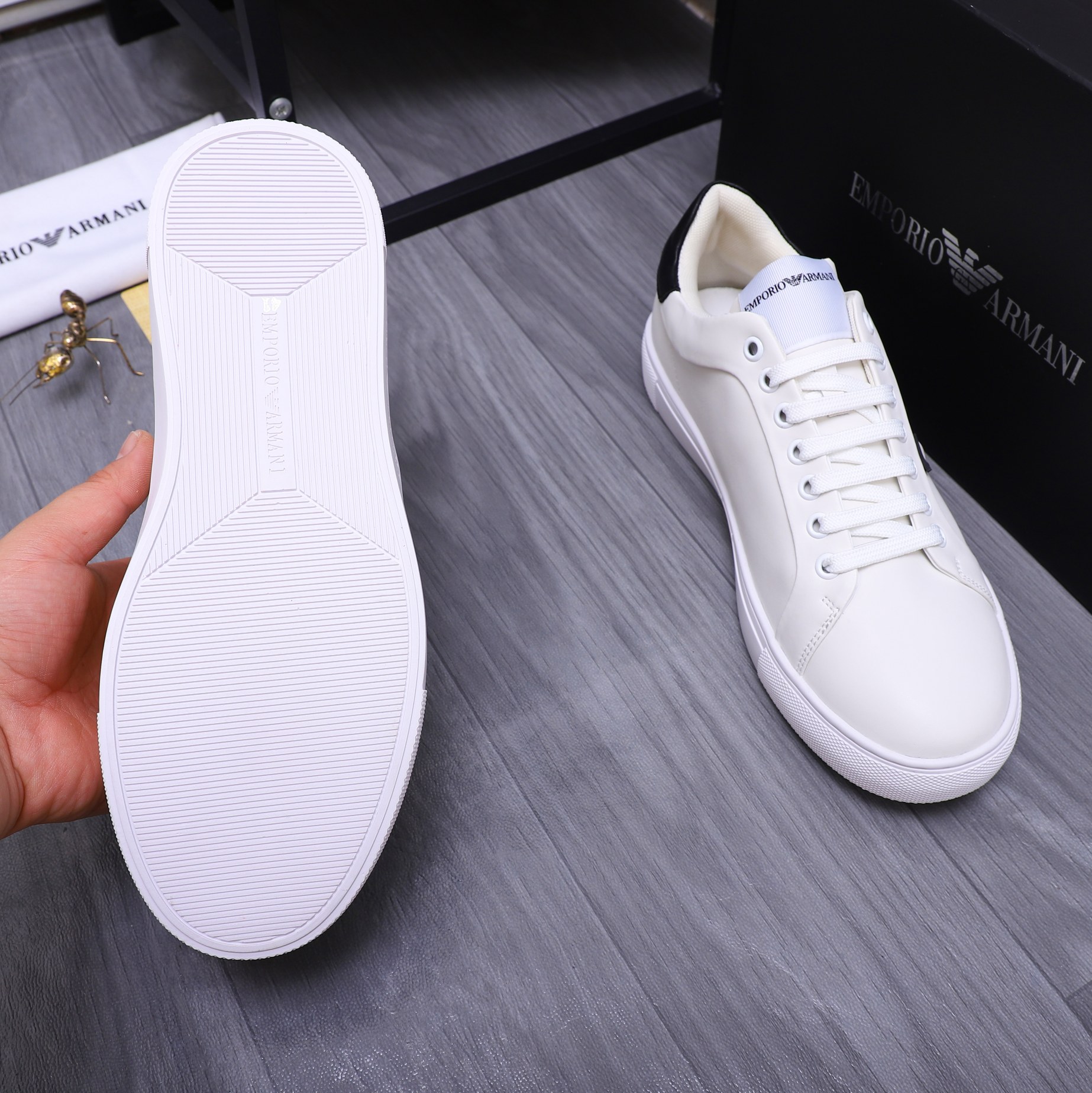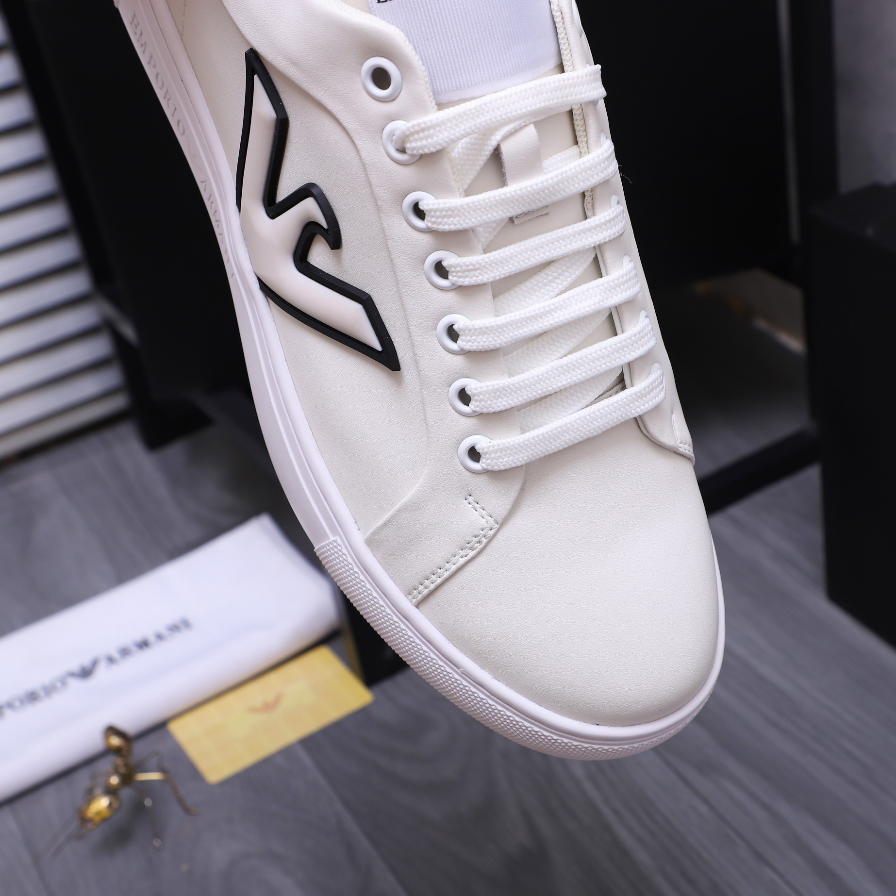 这款鞋子是AAAAA 1:1 质量 (非常棒). 使用了和原版一模一样的材料. 商标部分也保持了和阿玛尼/Armani一样. 图片拍摄是实物鞋子拍摄, 您所收到的实物保证和我们图片一模一样.