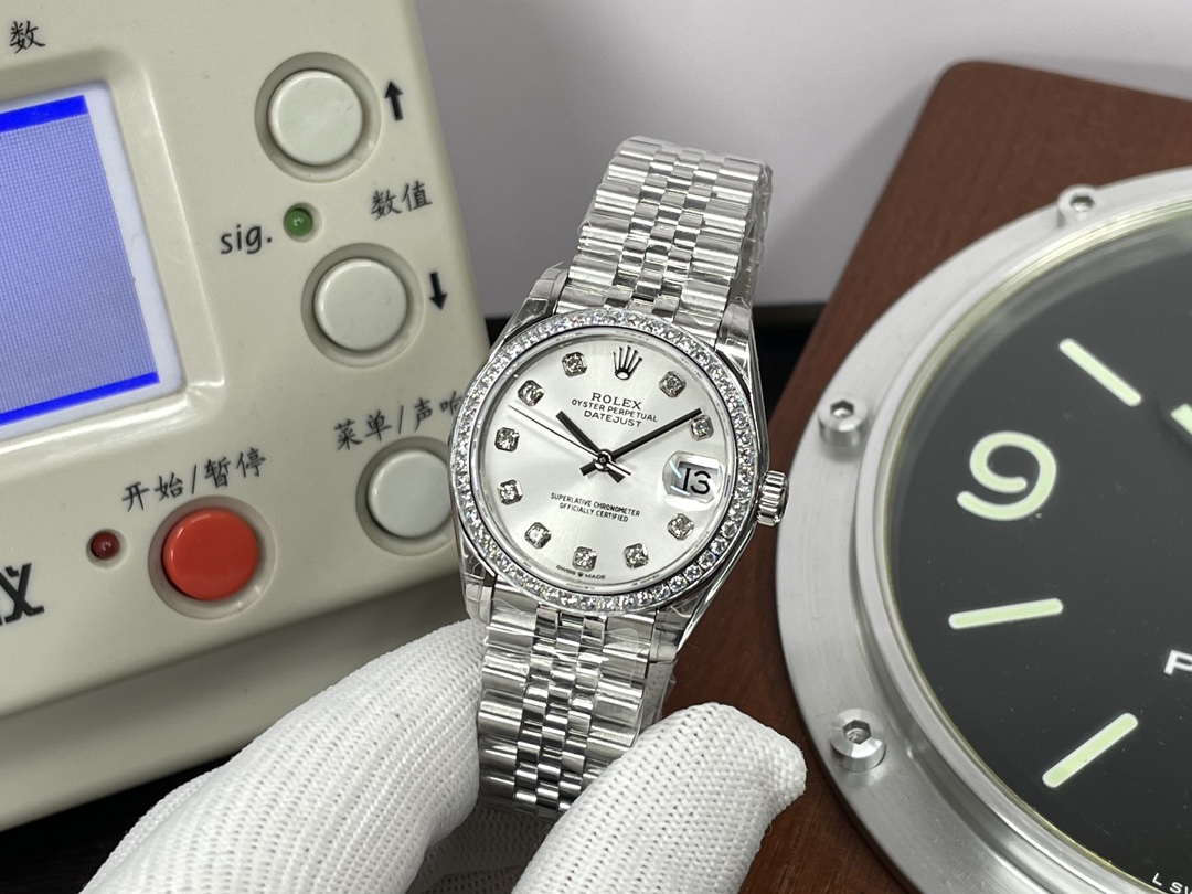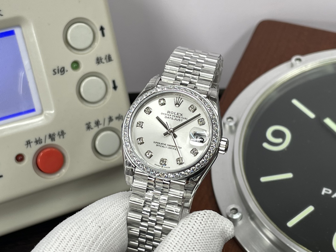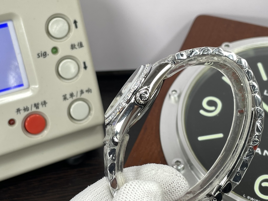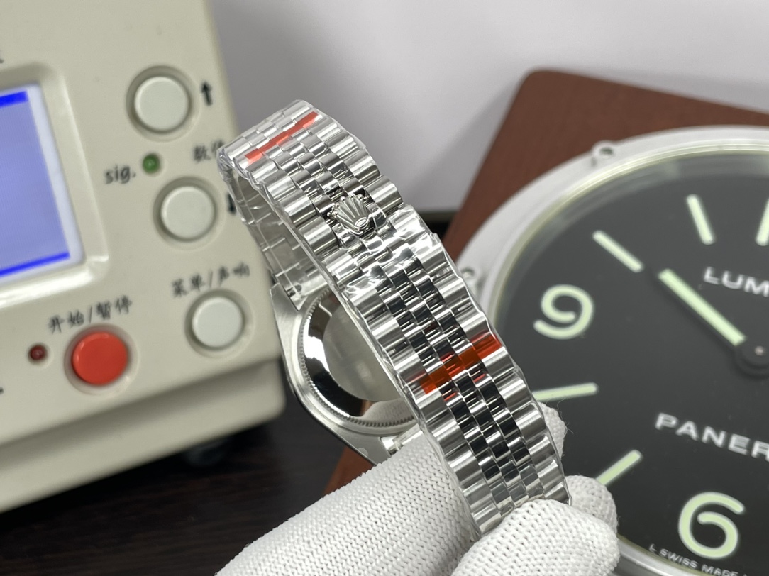 这款手表是AAAAA 1:1 质量 (非常棒). 使用了和原版一模一样的材料. 商标部分也保持了和劳力士/Rolex一样. 图片拍摄是实物手表拍摄, 您所收到的实物保证和我们图片一模一样.