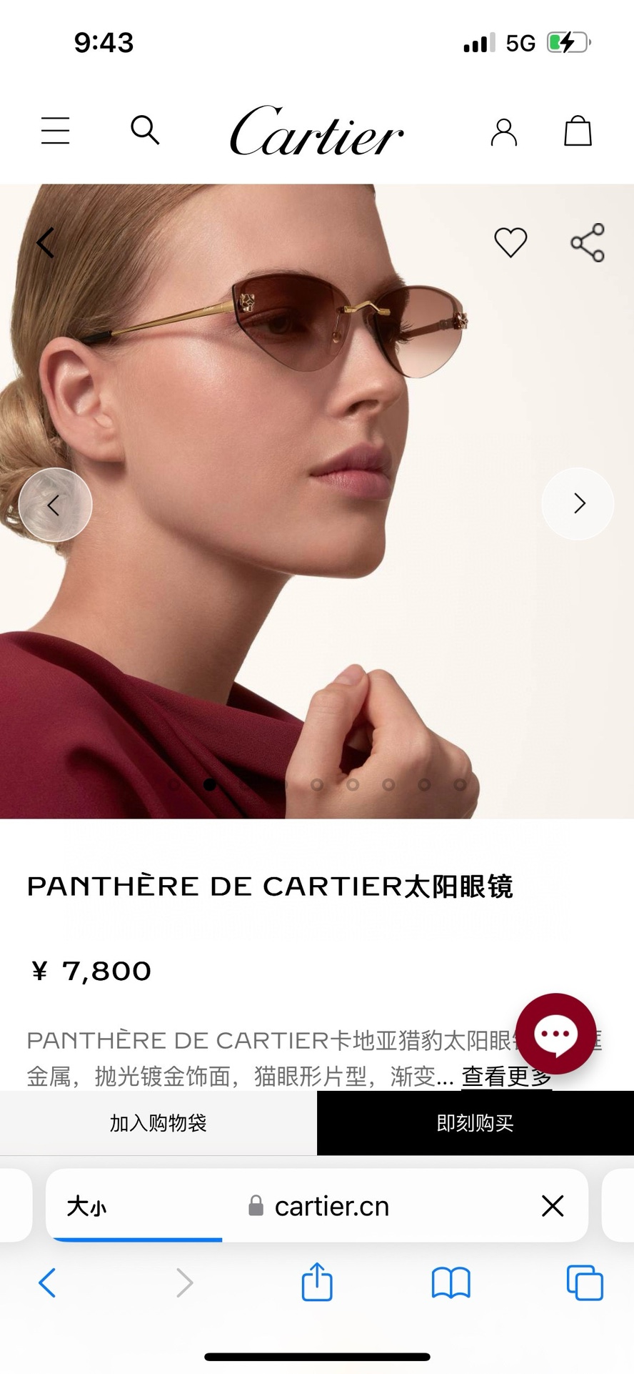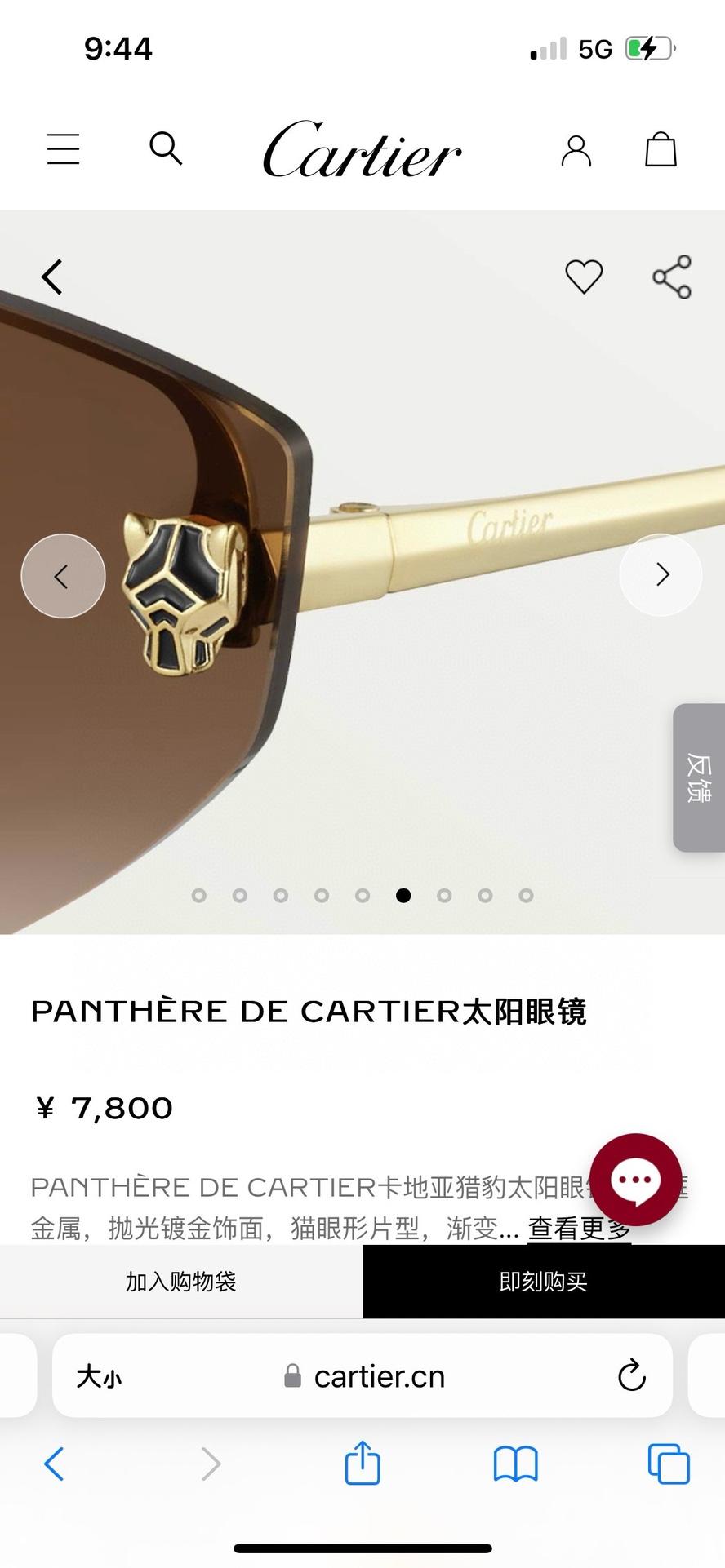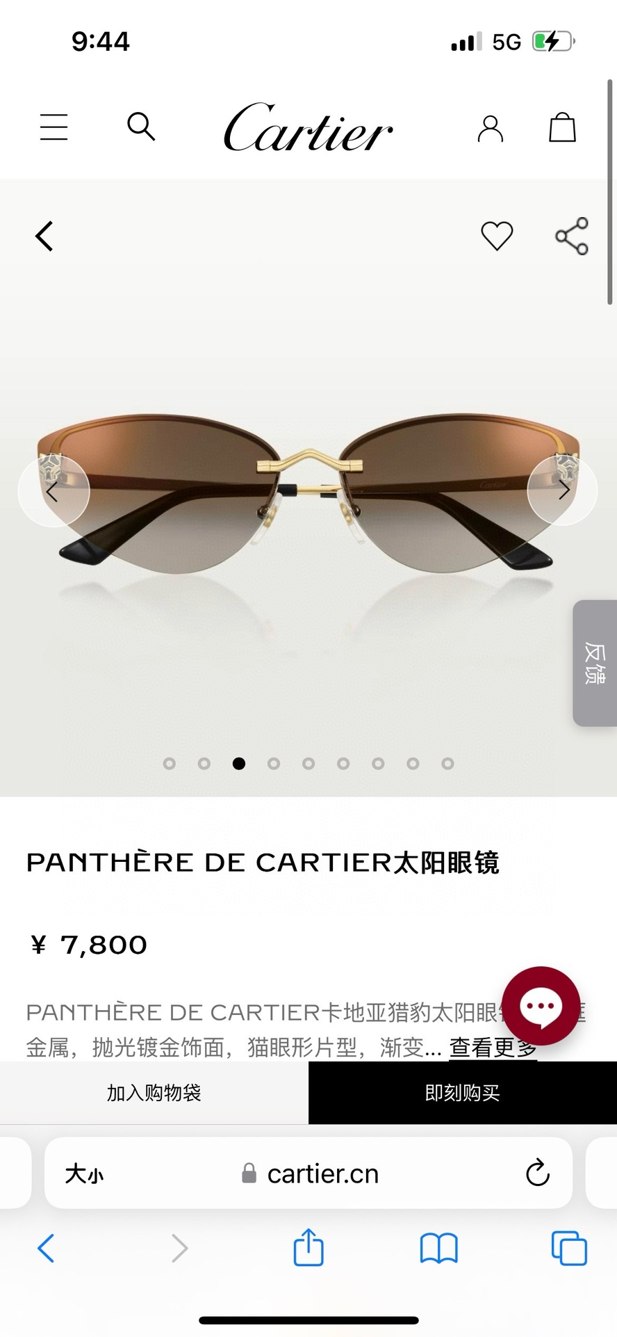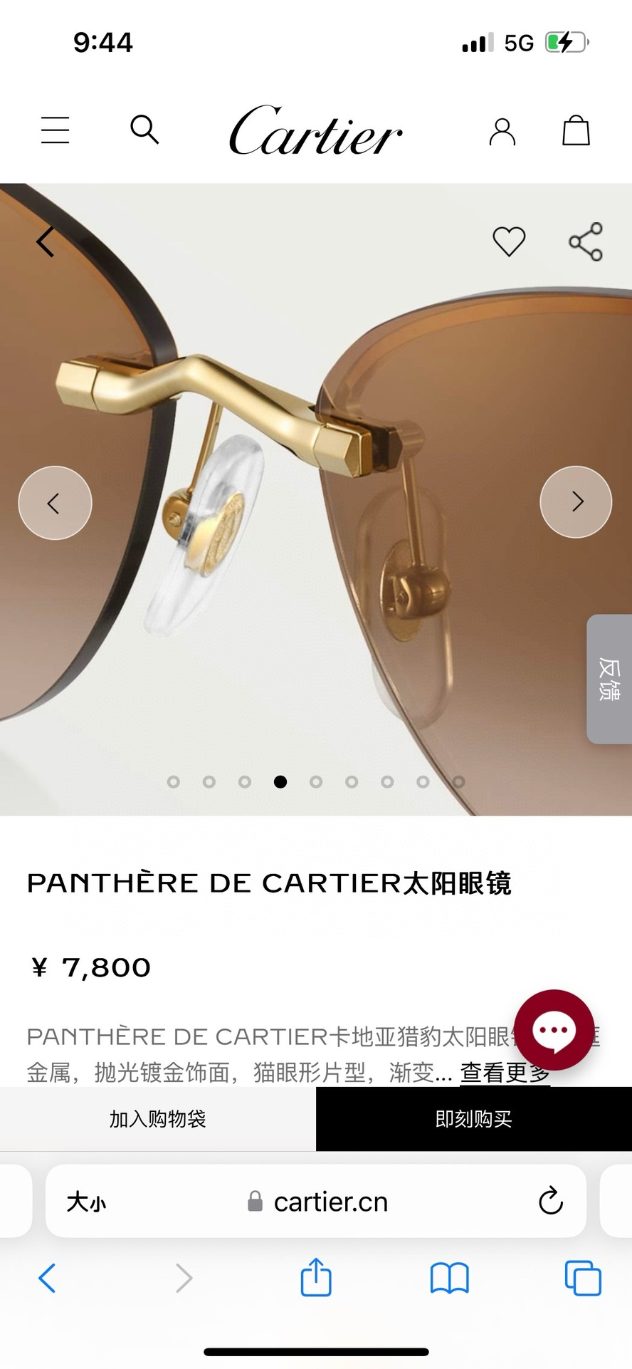 这款太阳眼镜是AAAAA 1:1 质量 (非常棒). 使用了和原版一模一样的材料. 商标部分也保持了和卡地亚/Cartier一样. 图片拍摄是实物太阳眼镜拍摄, 您所收到的实物保证和我们图片一模一样.