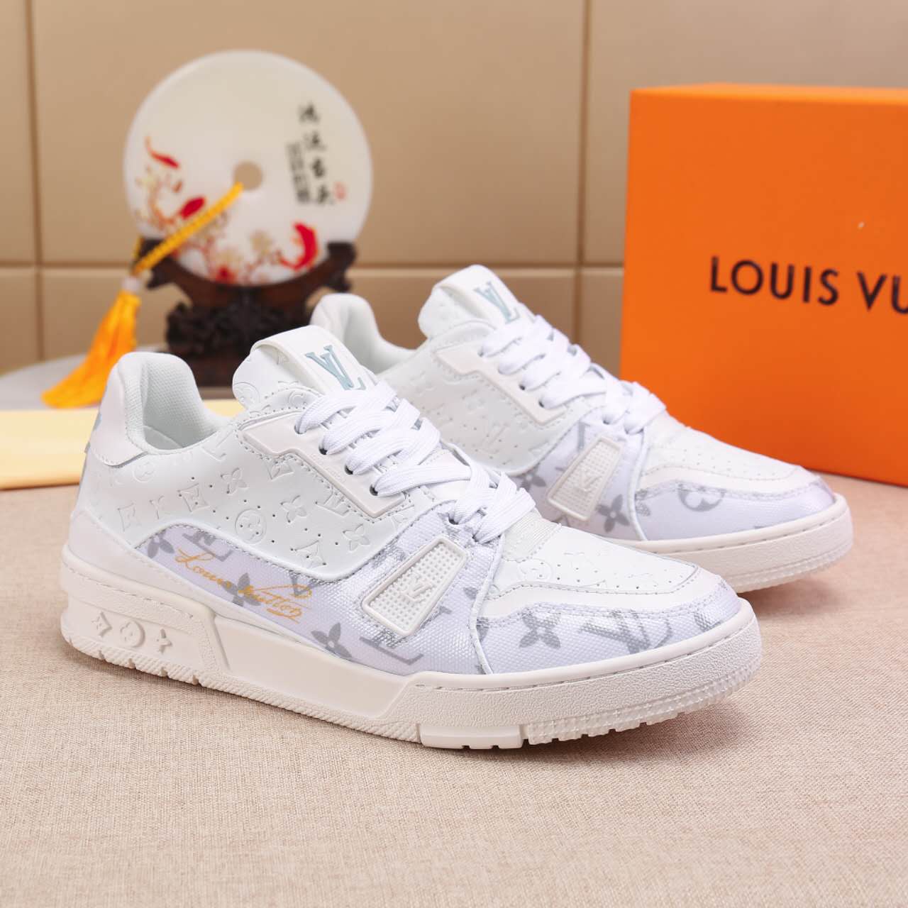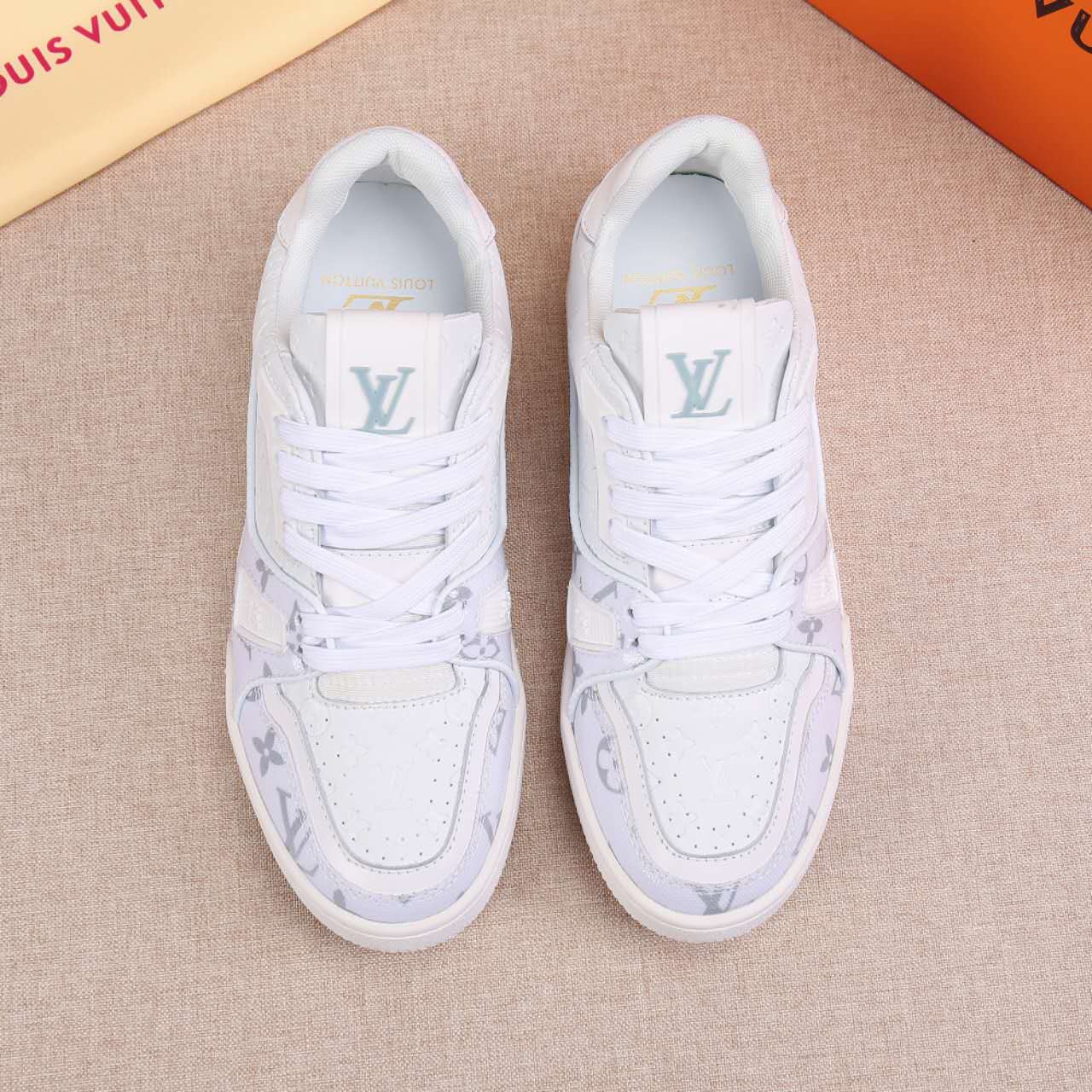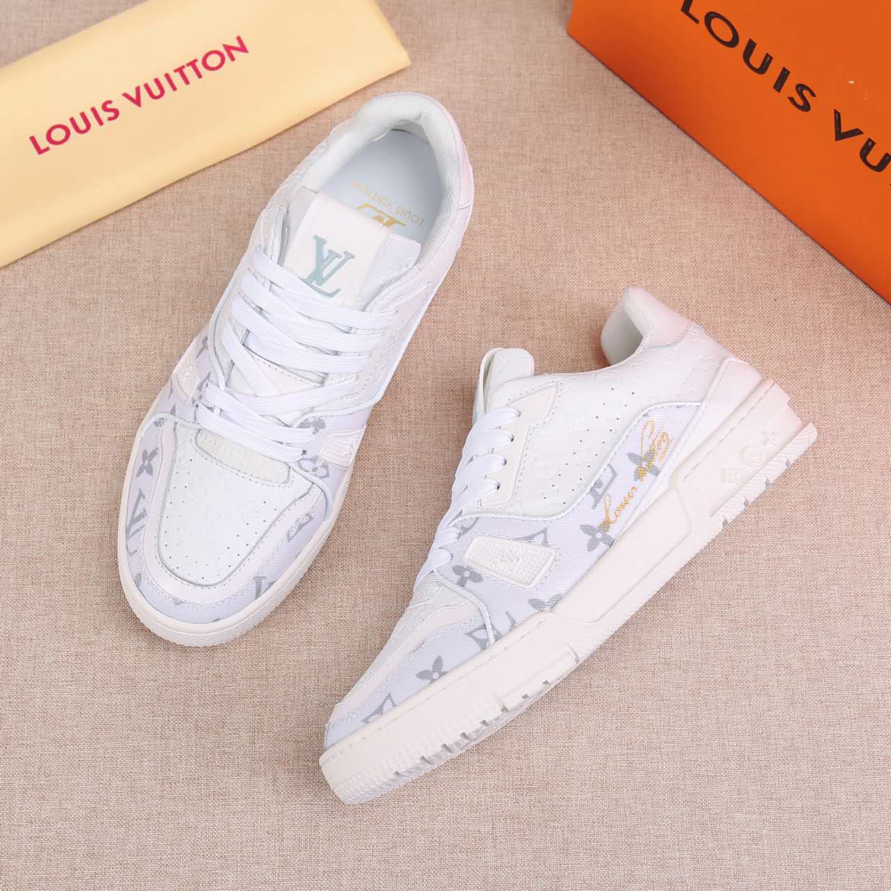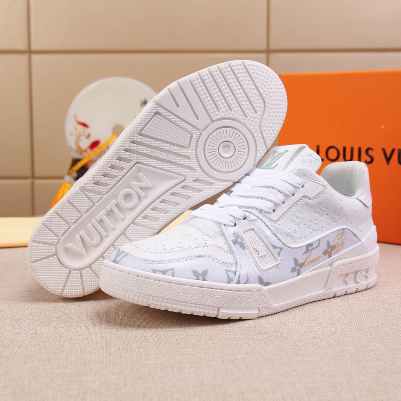 这款鞋子是AAAAA 1:1 质量 (非常棒). 使用了和原版一模一样的材料. 商标部分也保持了和路易威登/Louis Vuitton一样. 图片拍摄是实物鞋子拍摄, 您所收到的实物保证和我们图片一模一样.