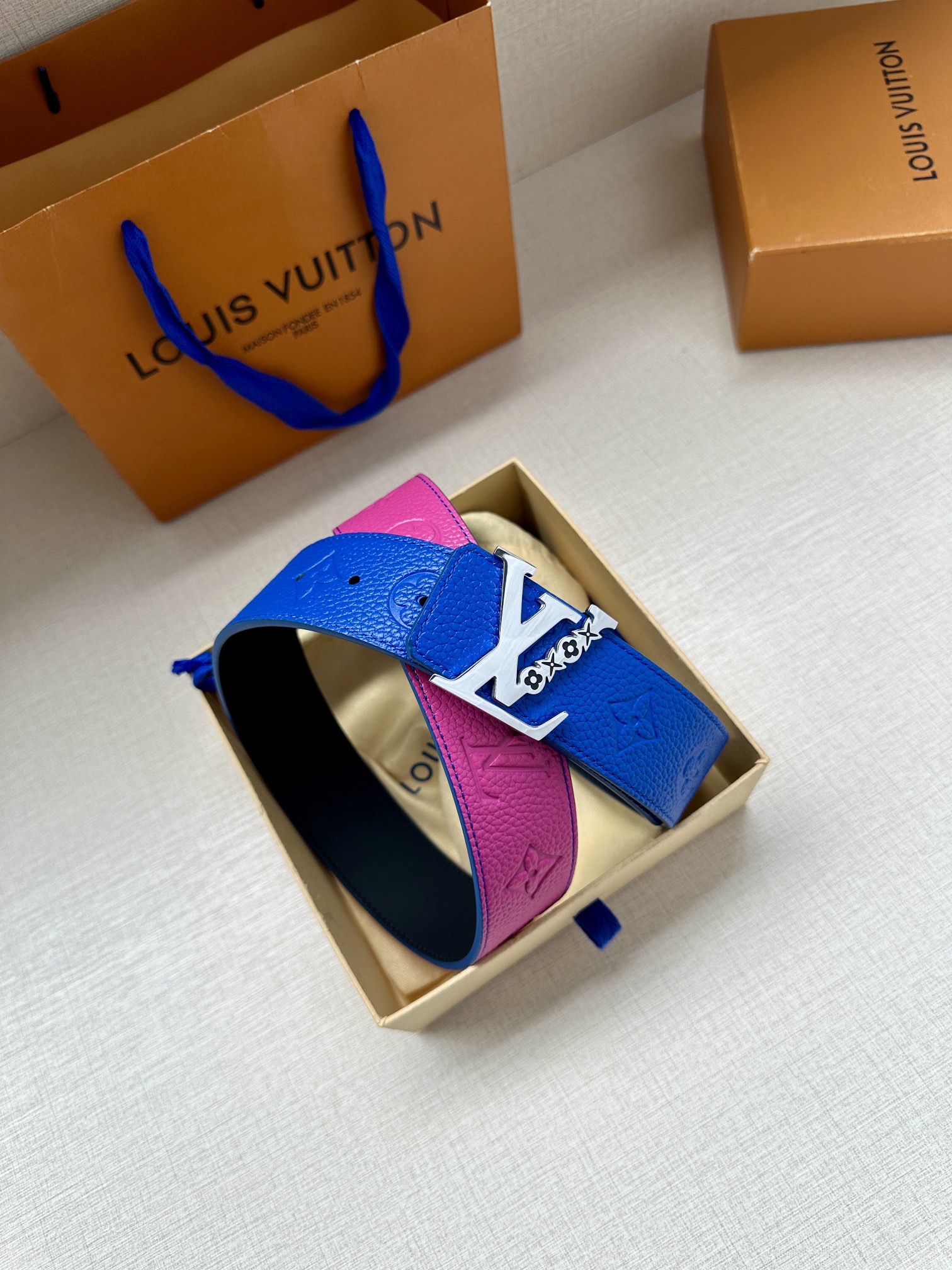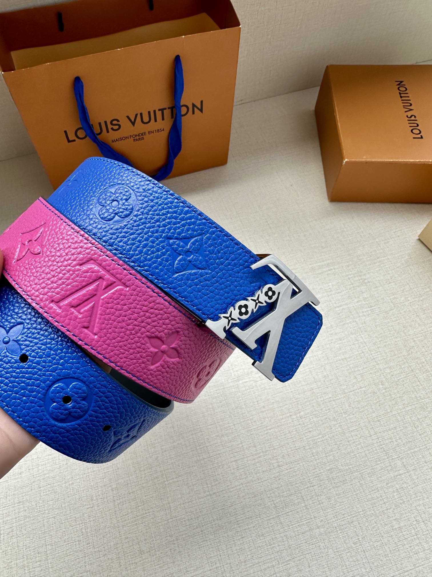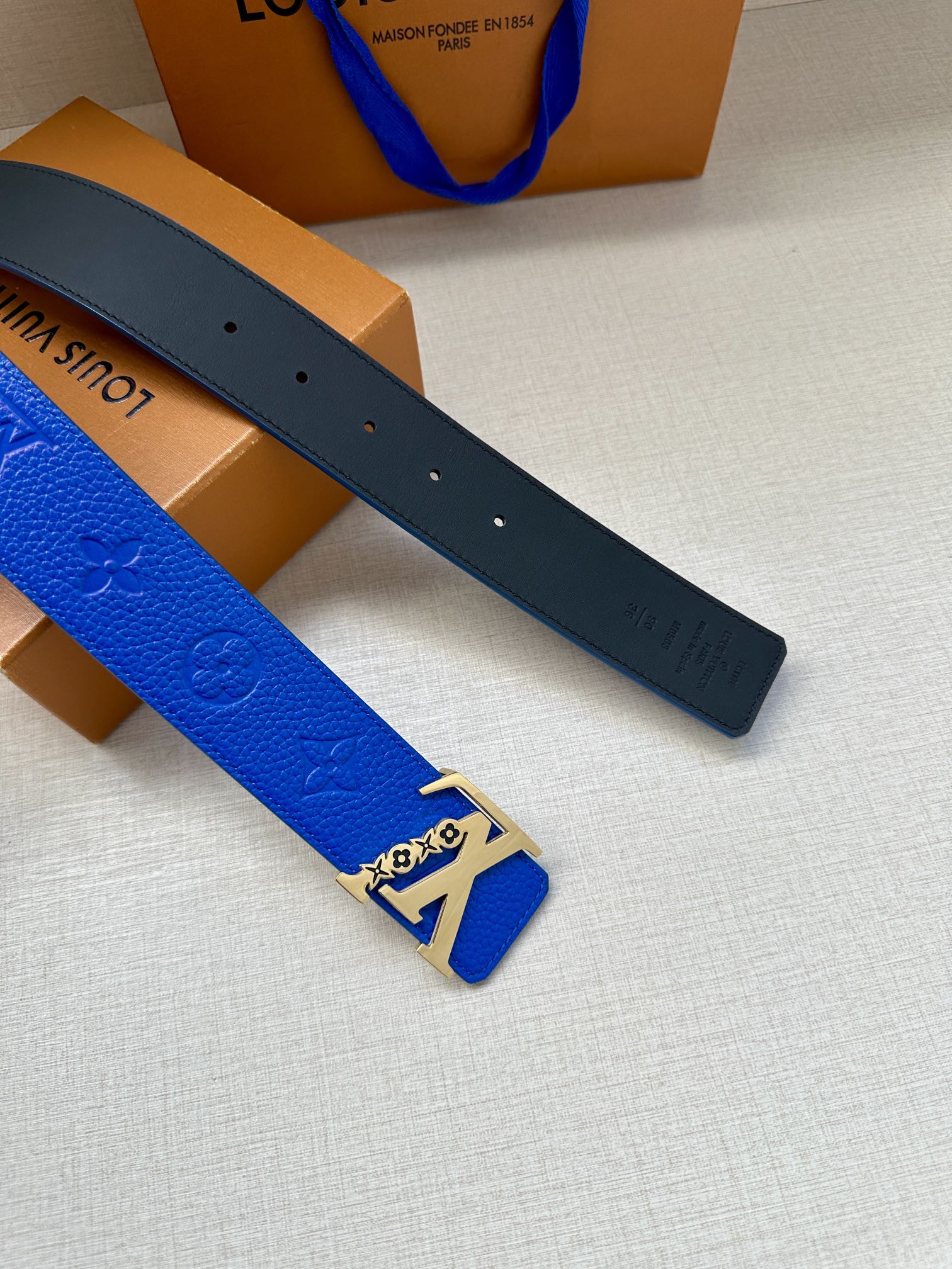 这款皮带是AAAAA 1:1 质量 (非常棒). 使用了和原版一模一样的材料. 商标部分也保持了和路易威登/Louis Vuitton一样. 图片拍摄是实物皮带拍摄, 您所收到的实物保证和我们图片一模一样.