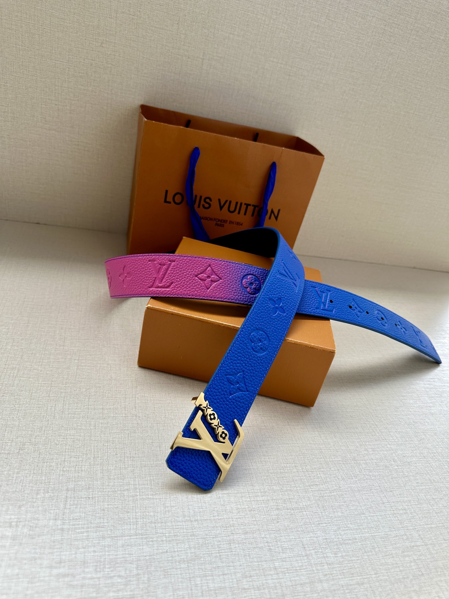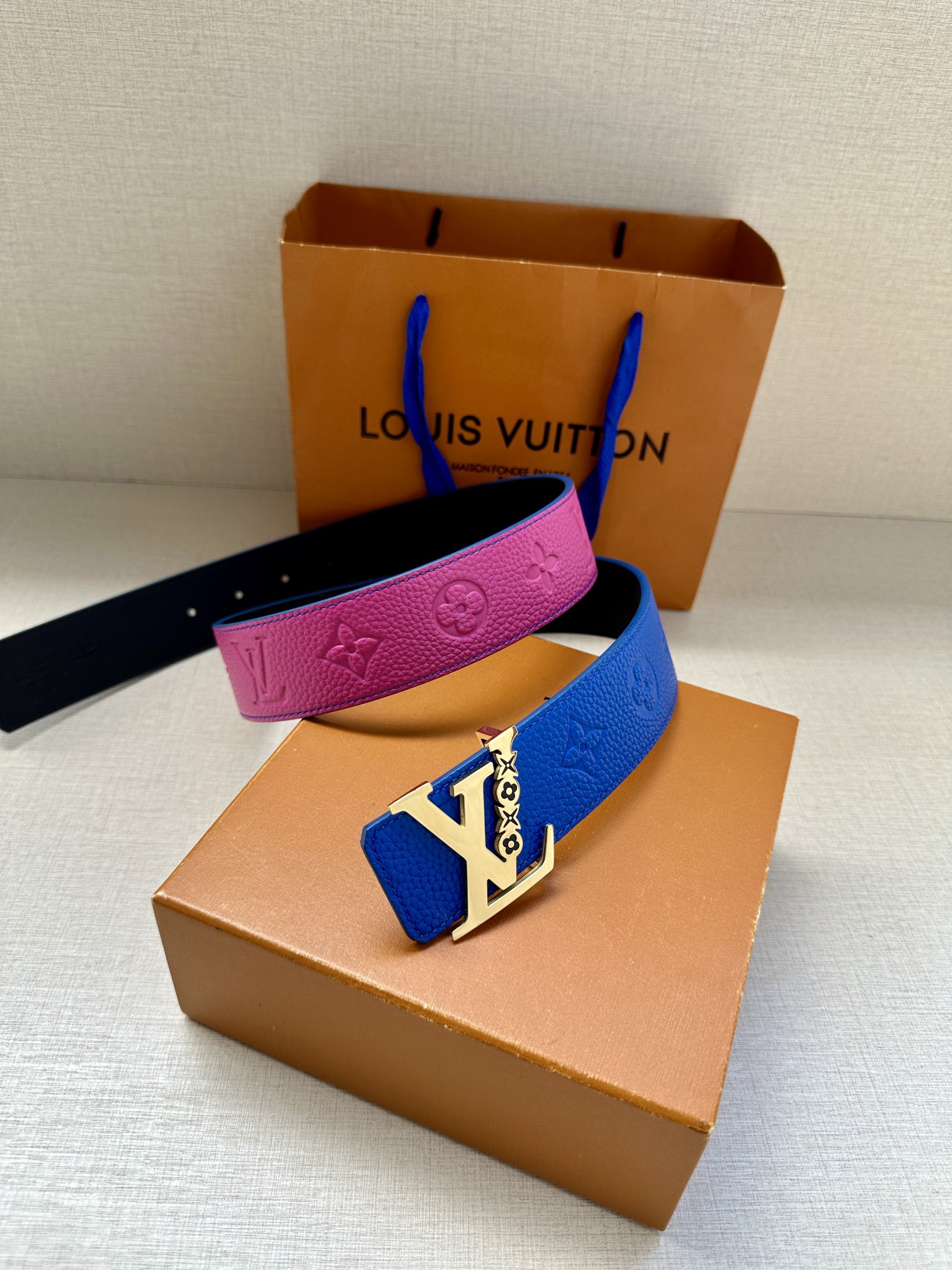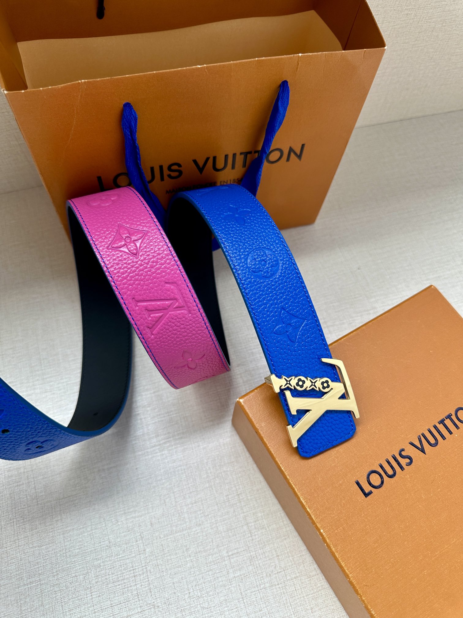这款皮带是AAAAA 1:1 质量 (非常棒). 使用了和原版一模一样的材料. 商标部分也保持了和路易威登/Louis Vuitton一样. 图片拍摄是实物皮带拍摄, 您所收到的实物保证和我们图片一模一样.