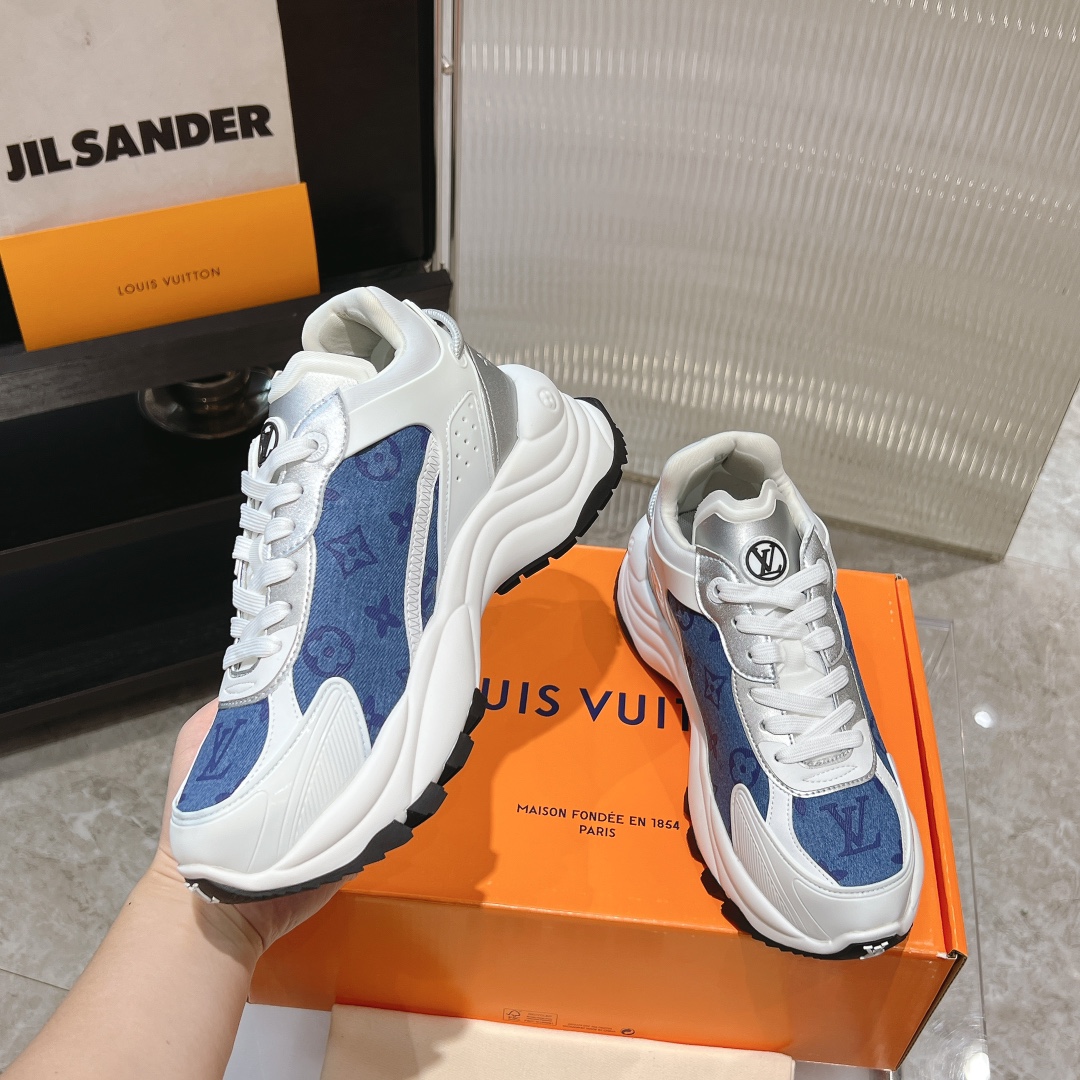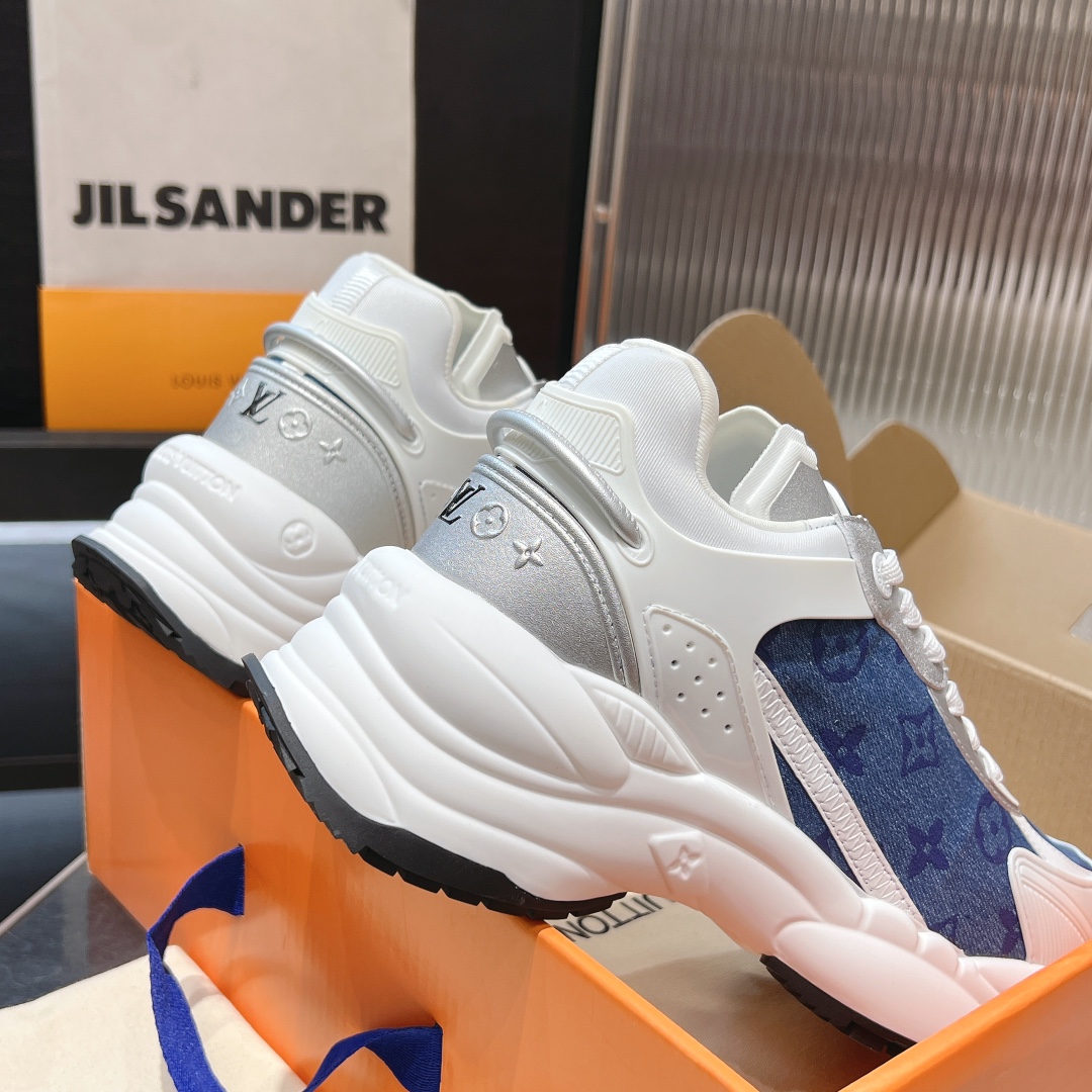 这款鞋子是AAAAA 1:1 质量 (非常棒). 使用了和原版一模一样的材料. 商标部分也保持了和路易威登/Louis Vuitton一样. 图片拍摄是实物鞋子拍摄, 您所收到的实物保证和我们图片一模一样.