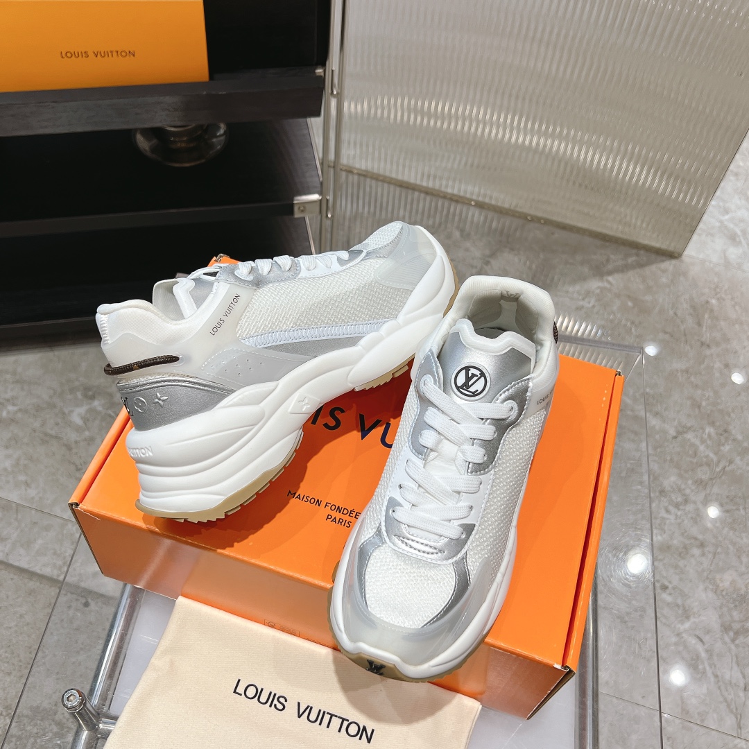 这款鞋子是AAAAA 1:1 质量 (非常棒). 使用了和原版一模一样的材料. 商标部分也保持了和路易威登/Louis Vuitton一样. 图片拍摄是实物鞋子拍摄, 您所收到的实物保证和我们图片一模一样.