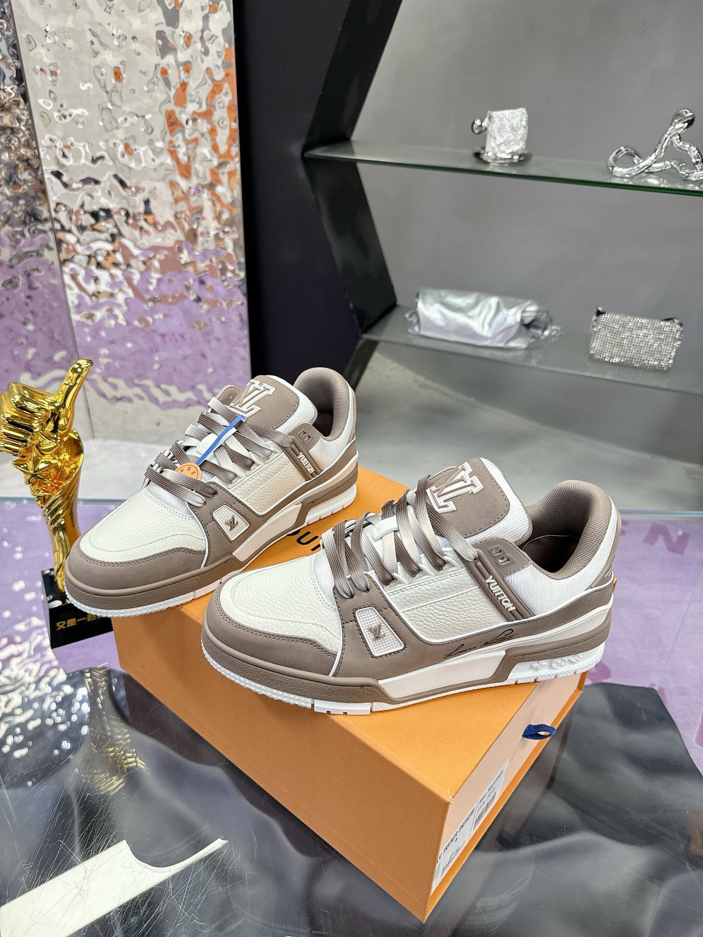 这款鞋子是AAAAA 1:1 质量 (非常棒). 使用了和原版一模一样的材料. 商标部分也保持了和路易威登/Louis Vuitton一样. 图片拍摄是实物鞋子拍摄, 您所收到的实物保证和我们图片一模一样.