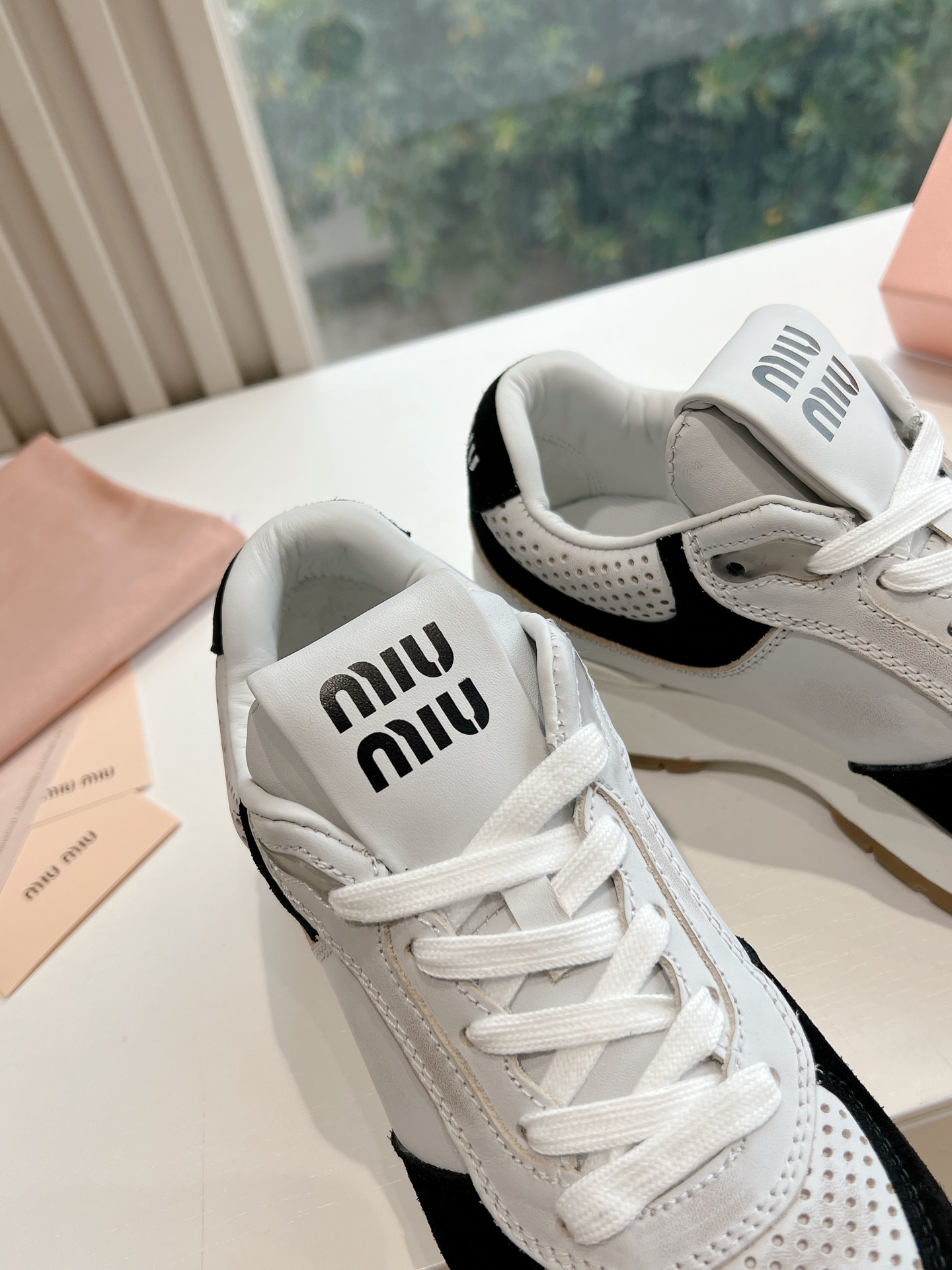 这款鞋子是AAAAA 1:1 质量 (非常棒). 使用了和原版一模一样的材料. 商标部分也保持了和缪缪/Miu Miu一样. 图片拍摄是实物鞋子拍摄, 您所收到的实物保证和我们图片一模一样.