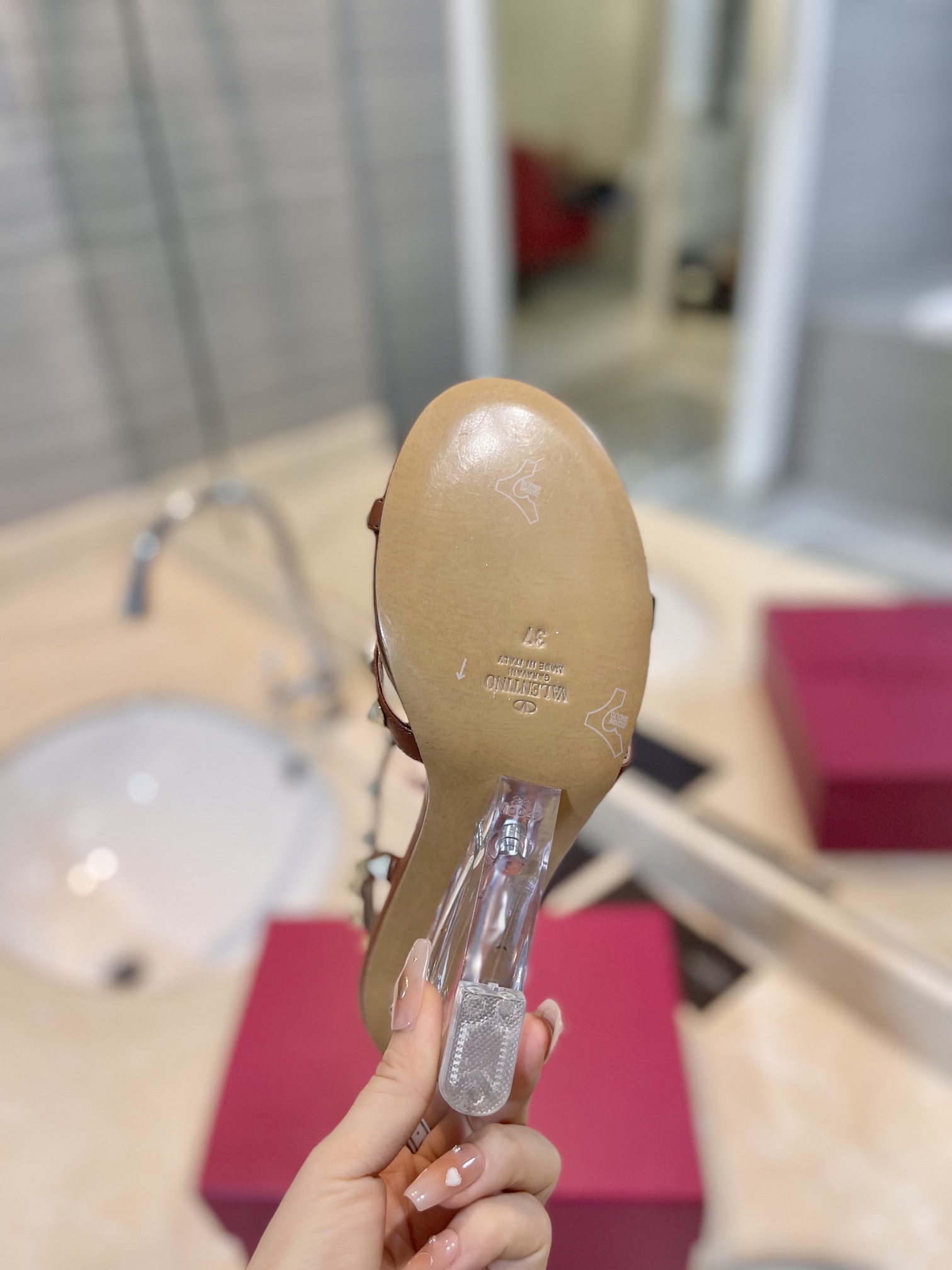 这款鞋子是AAAAA 1:1 质量 (非常棒). 使用了和原版一模一样的材料. 商标部分也保持了和华伦天奴/Valentino一样. 图片拍摄是实物鞋子拍摄, 您所收到的实物保证和我们图片一模一样.