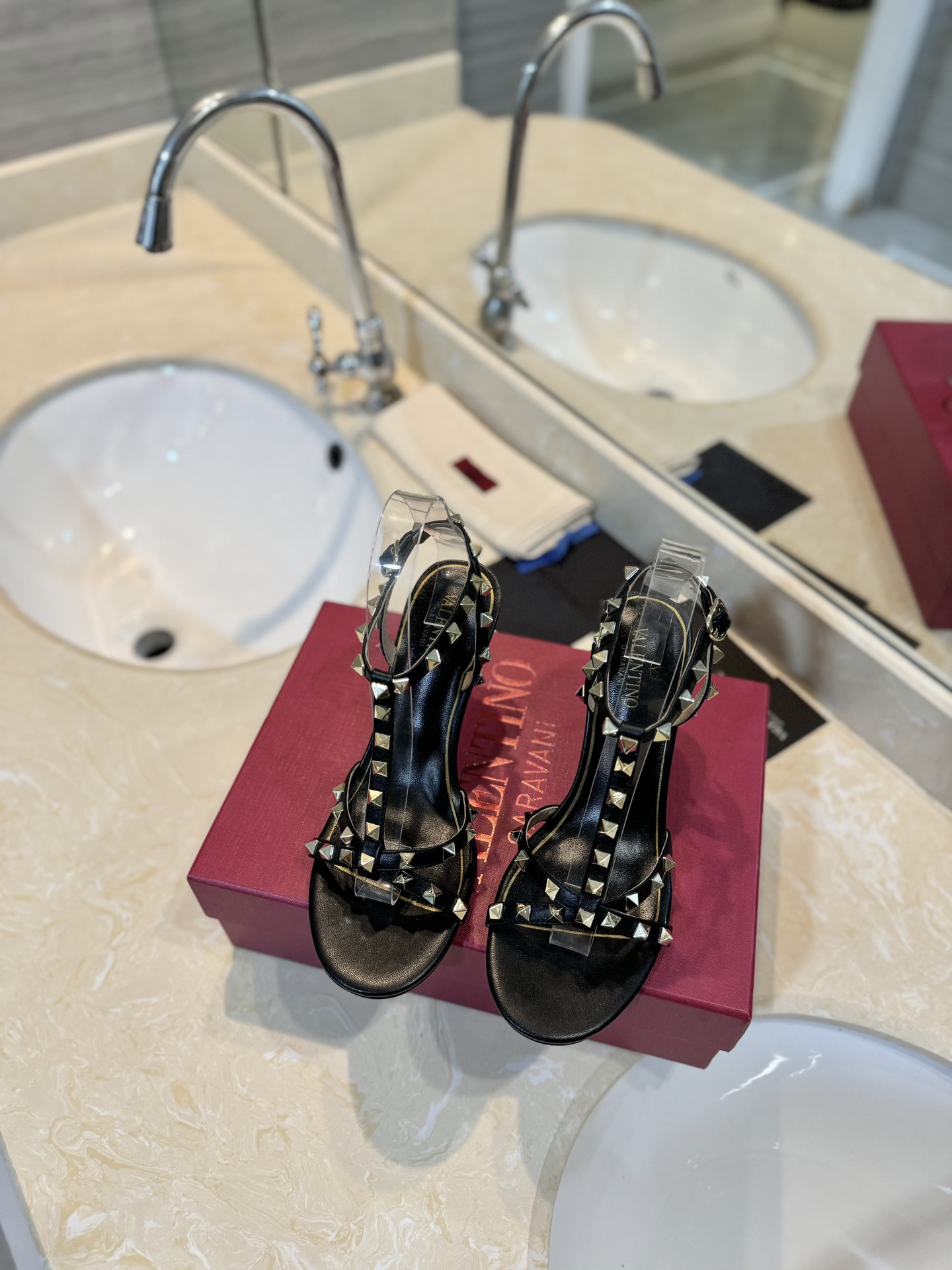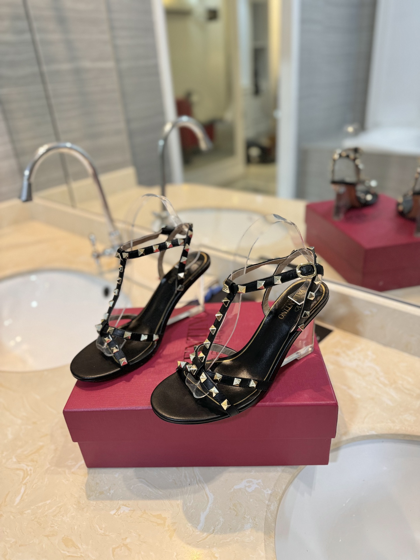 这款鞋子是AAAAA 1:1 质量 (非常棒). 使用了和原版一模一样的材料. 商标部分也保持了和华伦天奴/Valentino一样. 图片拍摄是实物鞋子拍摄, 您所收到的实物保证和我们图片一模一样.