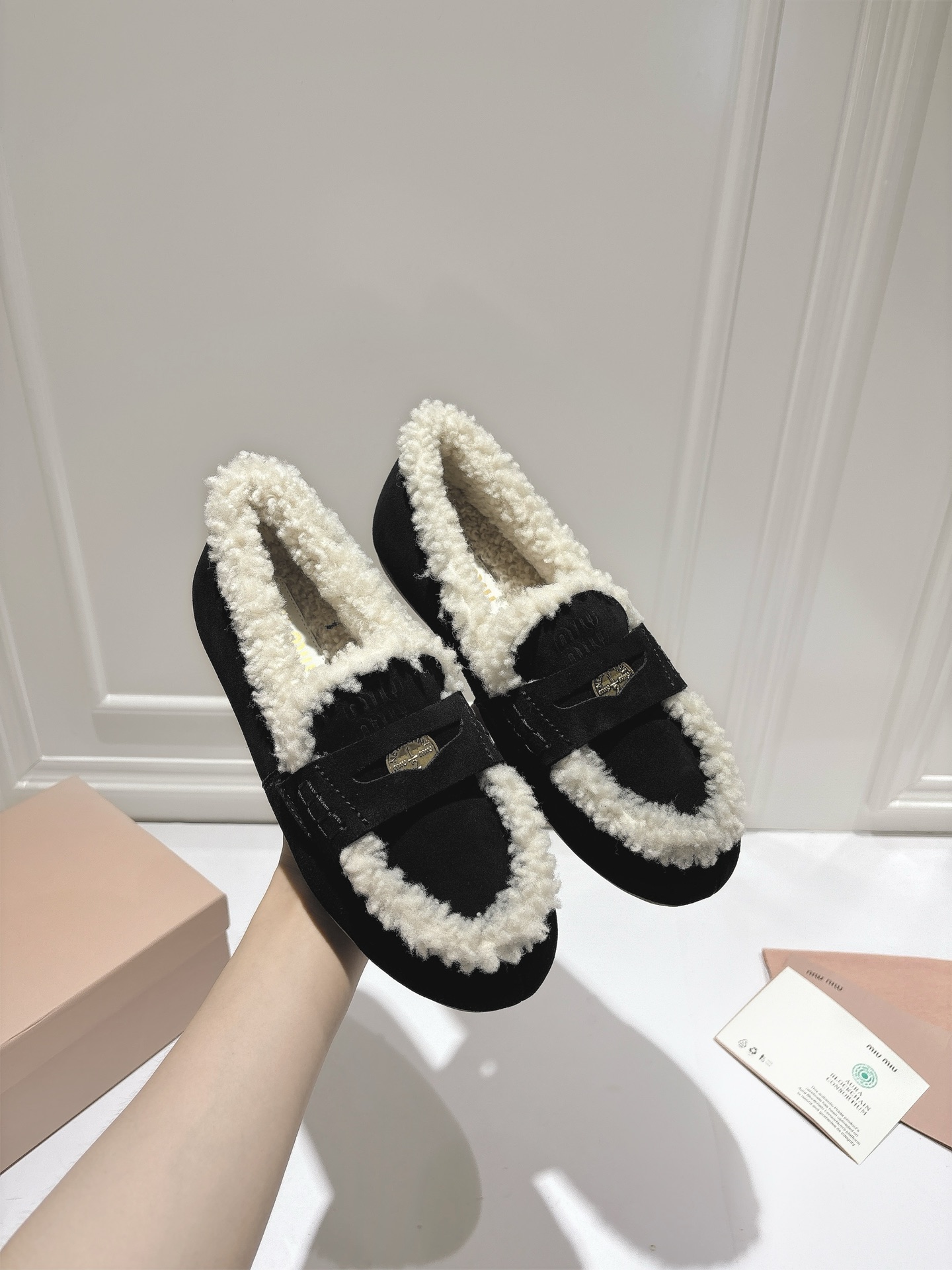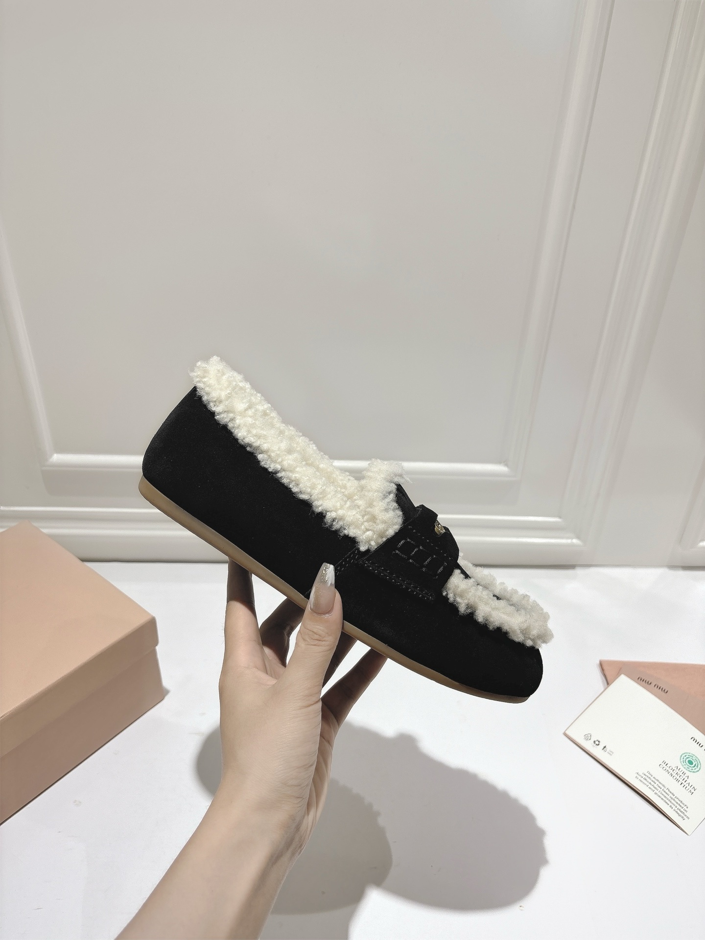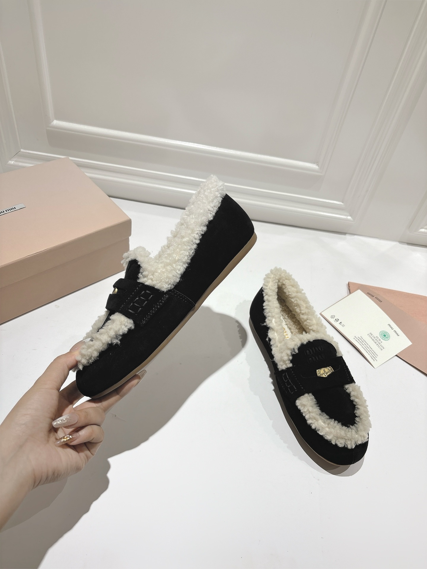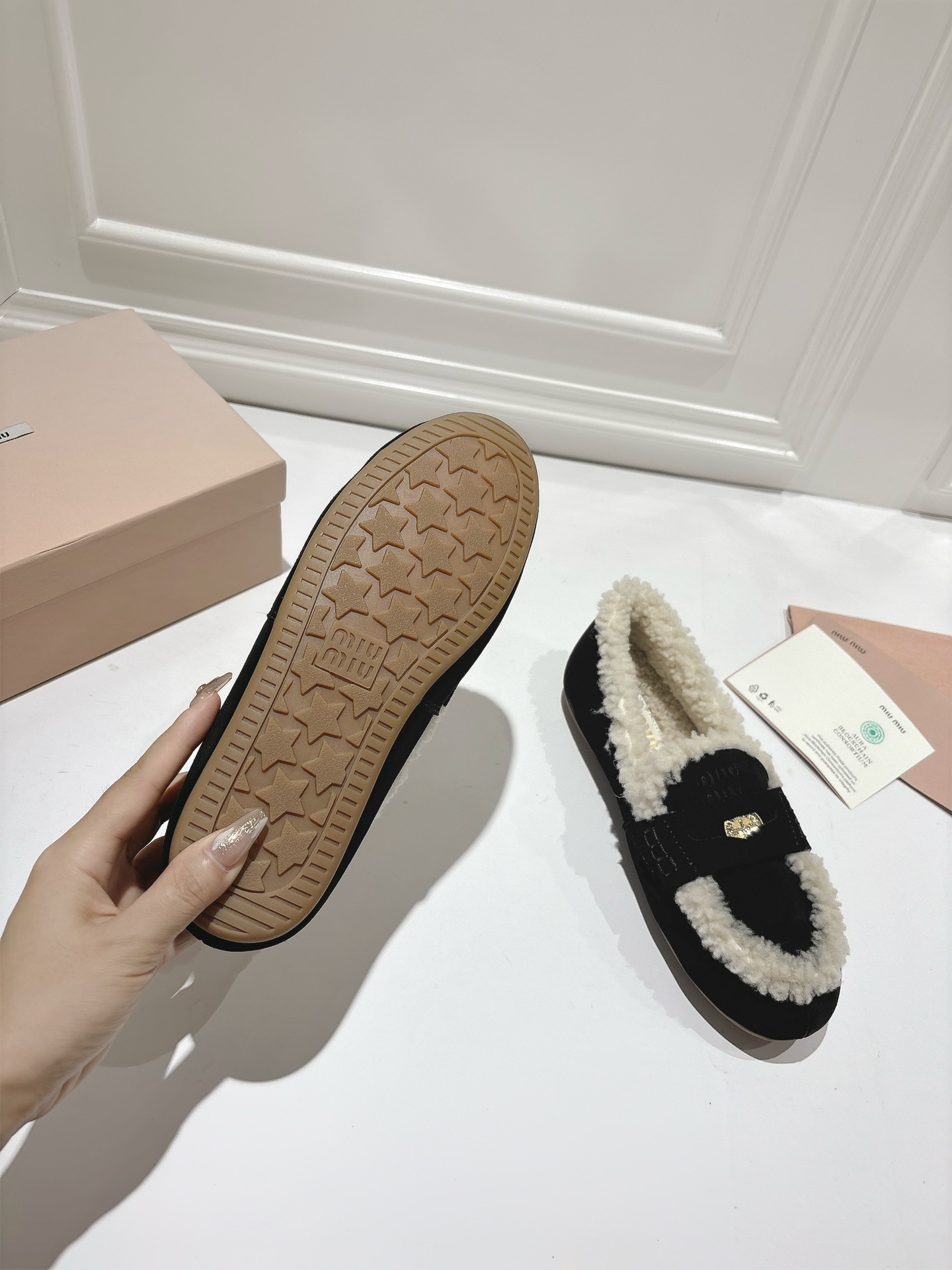 这款鞋子是AAAAA 1:1 质量 (非常棒). 使用了和原版一模一样的材料. 商标部分也保持了和缪缪/Miu Miu一样. 图片拍摄是实物鞋子拍摄, 您所收到的实物保证和我们图片一模一样.