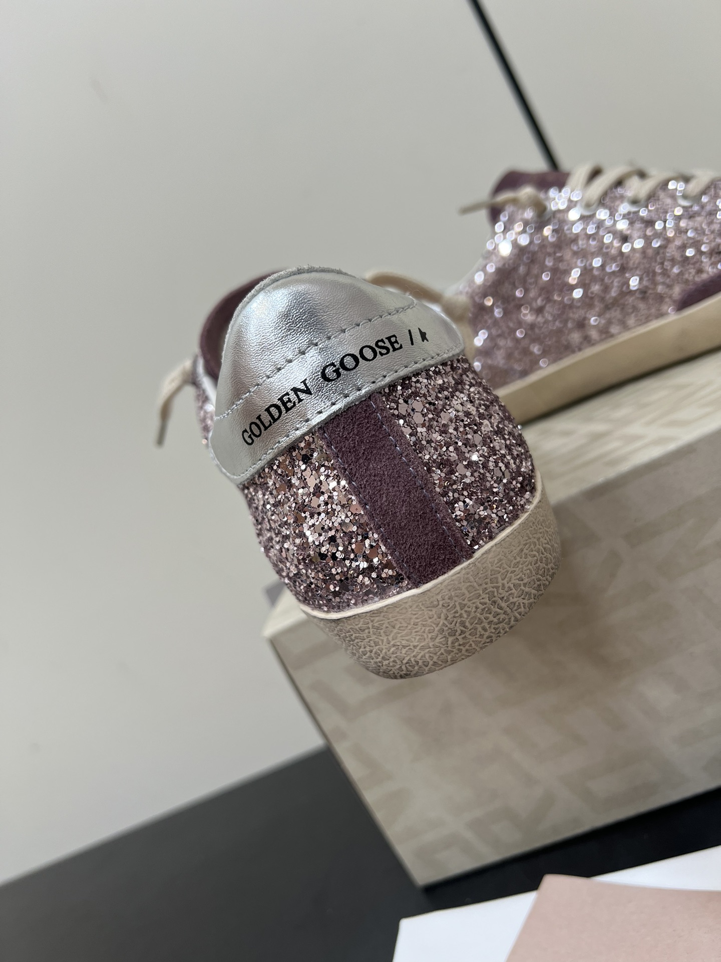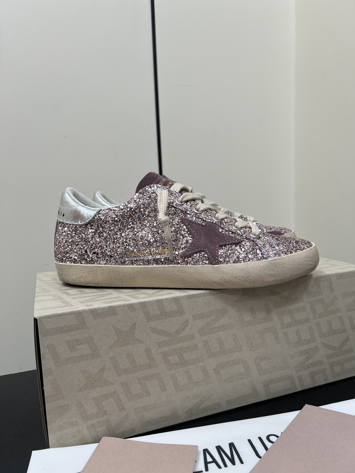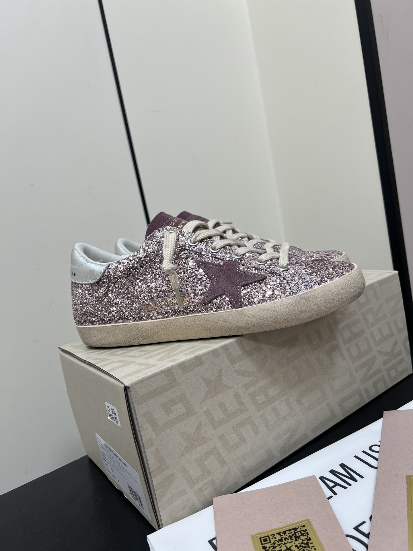 这款鞋子是AAAAA 1:1 质量 (非常棒). 使用了和原版一模一样的材料. 商标部分也保持了和Golden Goose一样. 图片拍摄是实物鞋子拍摄, 您所收到的实物保证和我们图片一模一样.