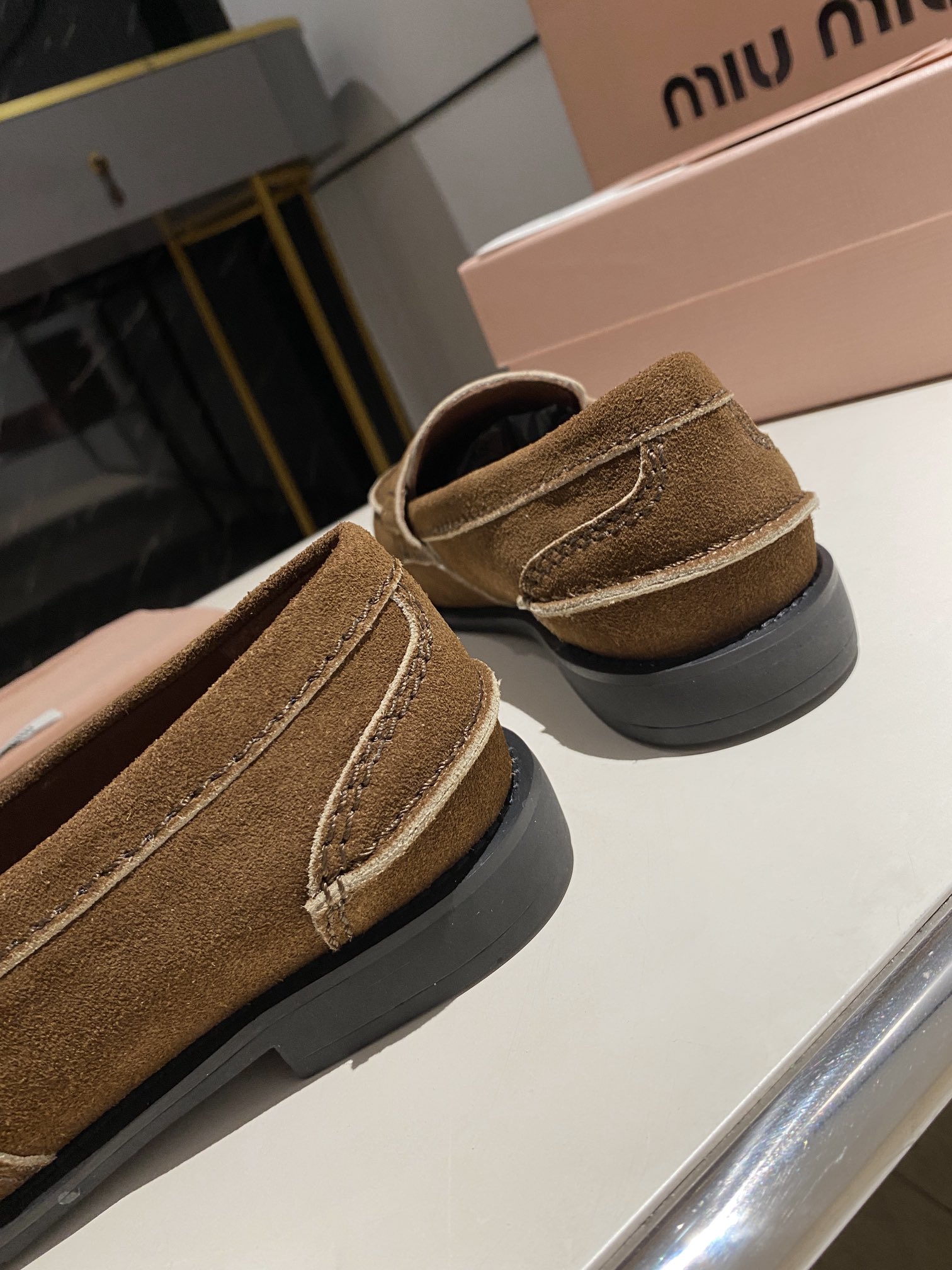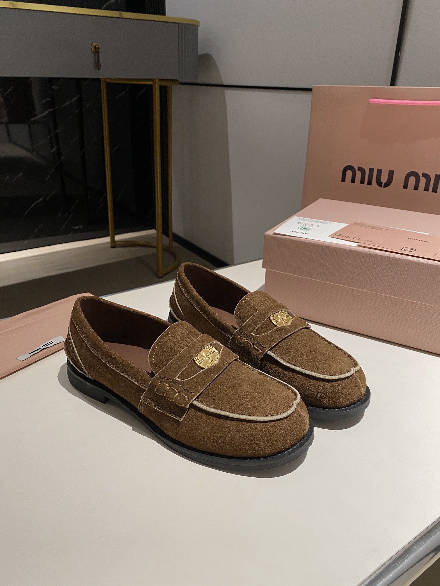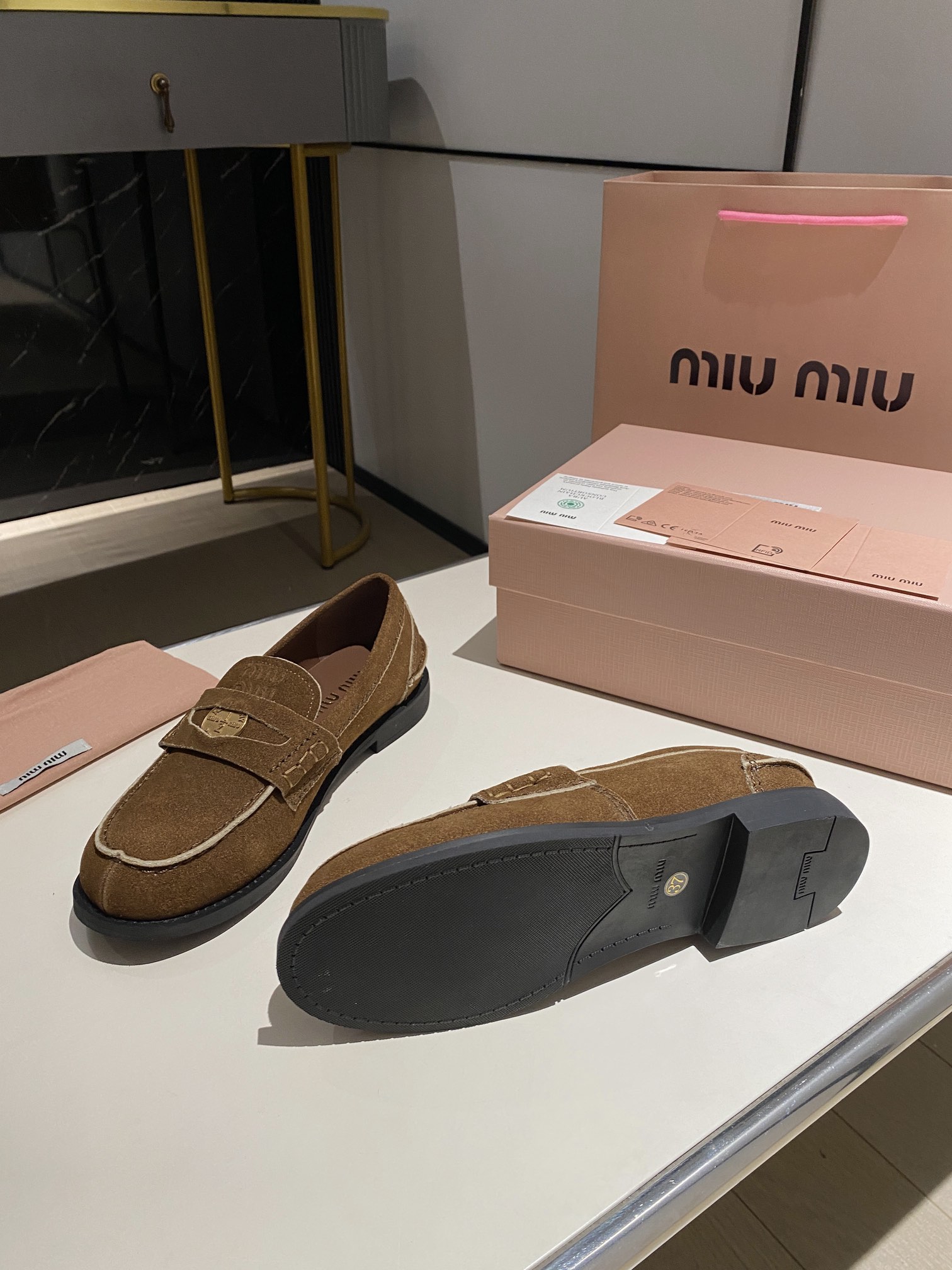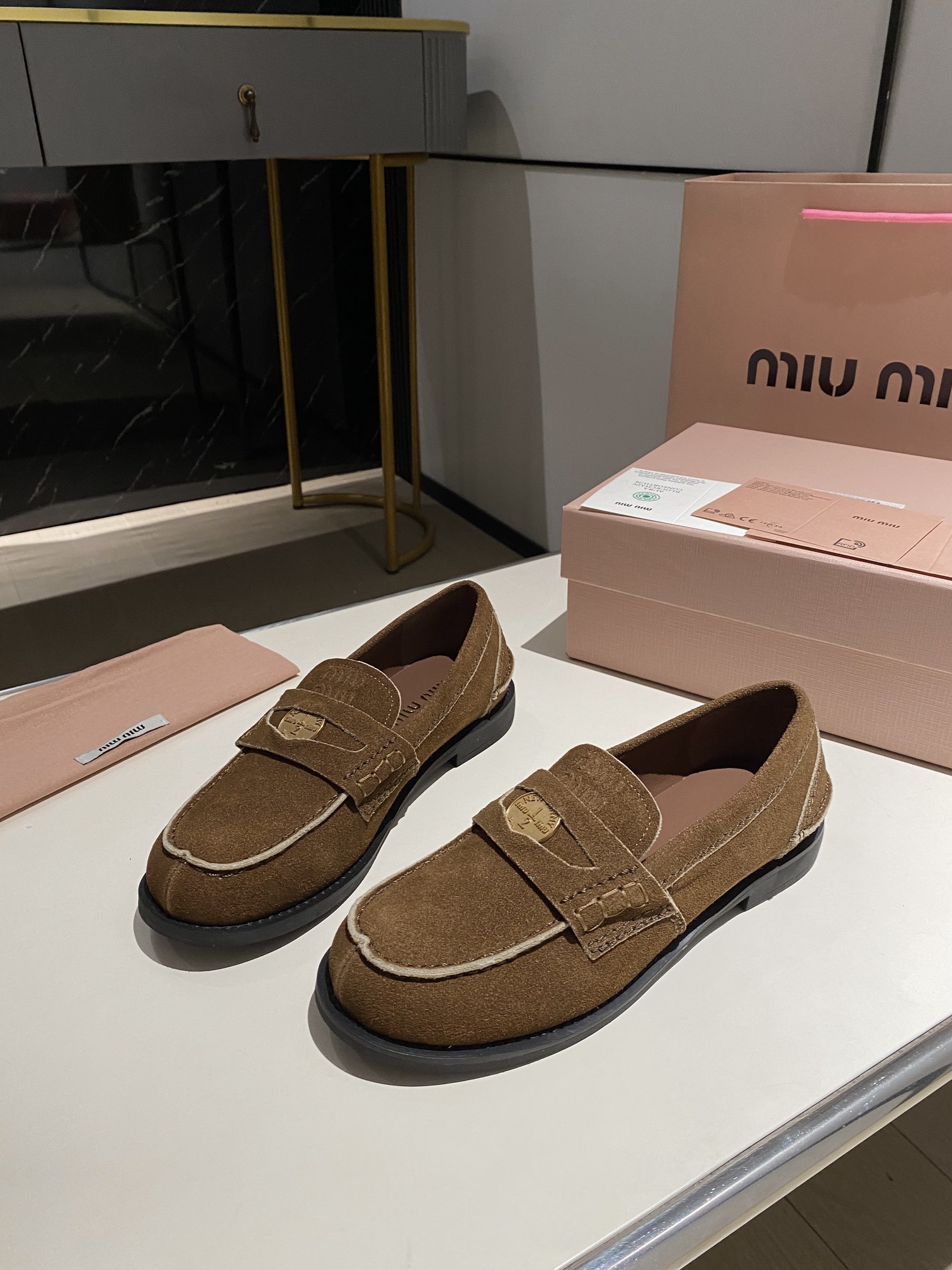 这款鞋子是AAAAA 1:1 质量 (非常棒). 使用了和原版一模一样的材料. 商标部分也保持了和缪缪/Miu Miu一样. 图片拍摄是实物鞋子拍摄, 您所收到的实物保证和我们图片一模一样.