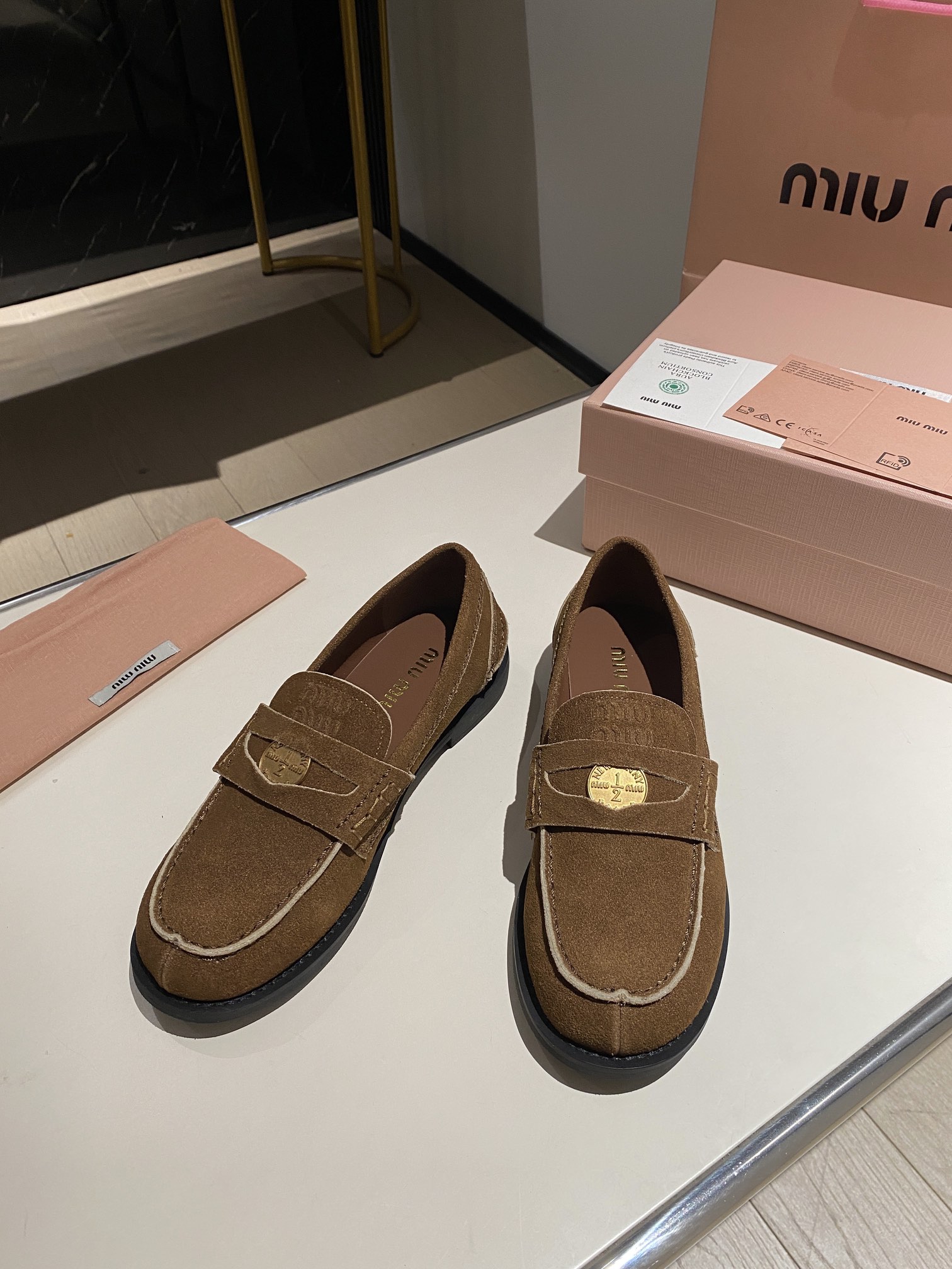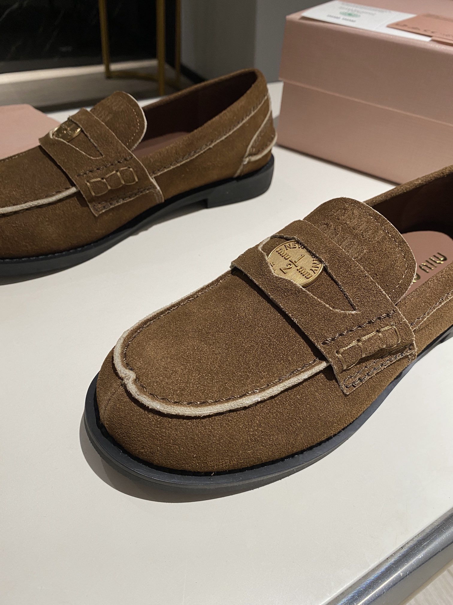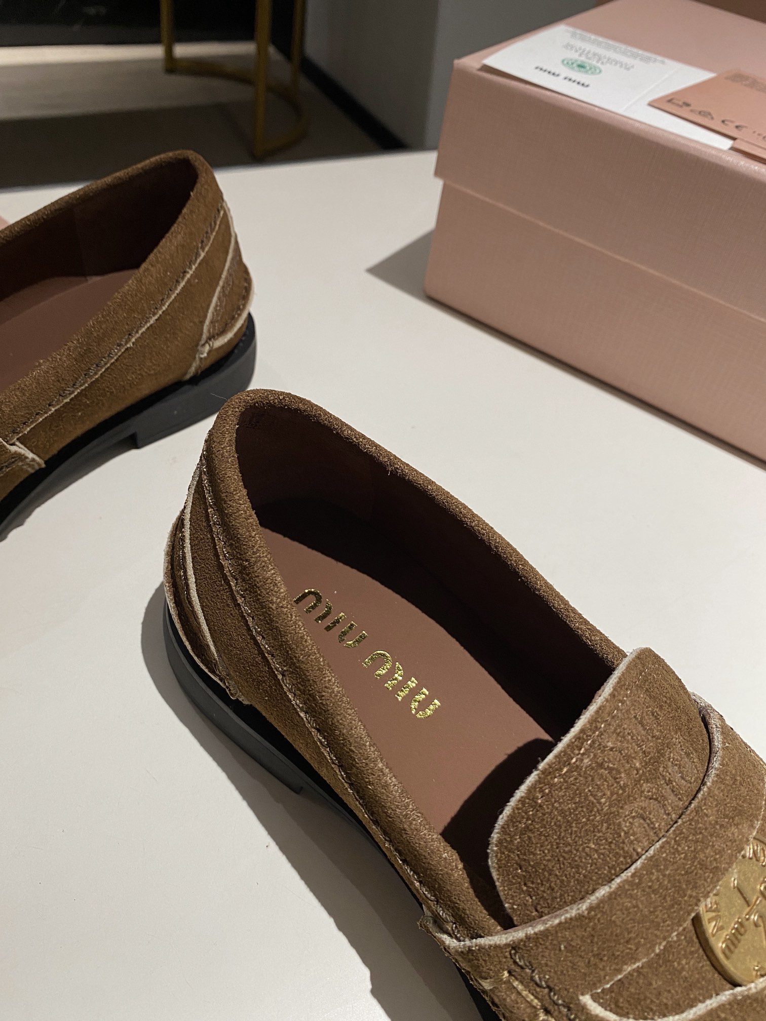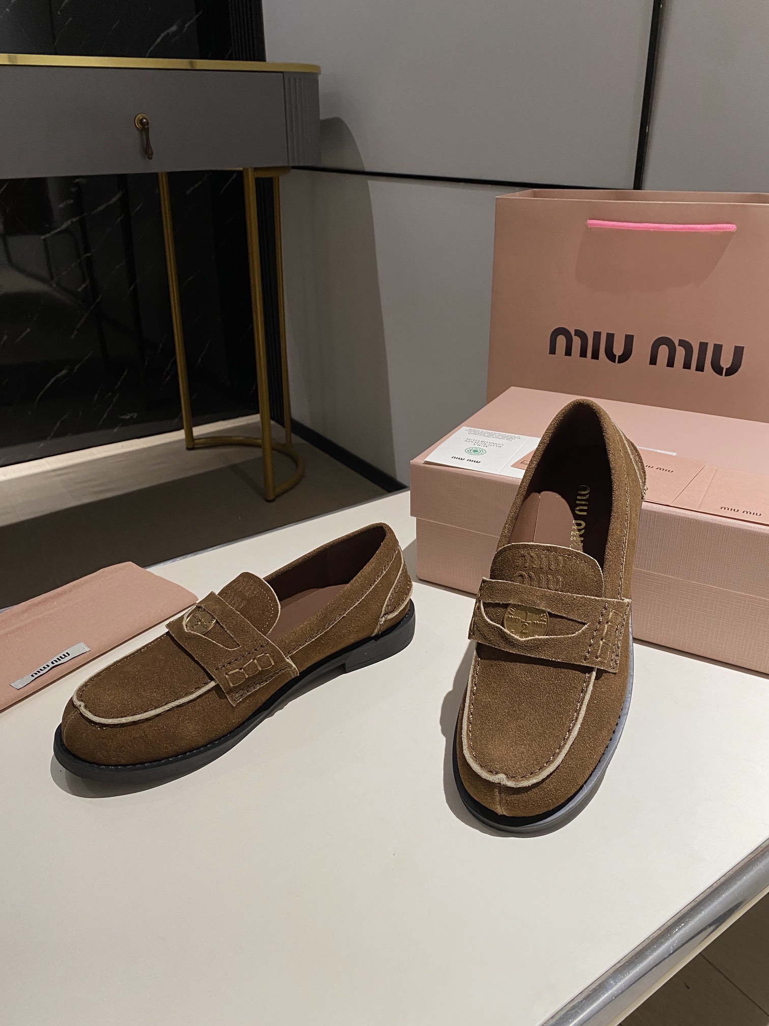 这款鞋子是AAAAA 1:1 质量 (非常棒). 使用了和原版一模一样的材料. 商标部分也保持了和缪缪/Miu Miu一样. 图片拍摄是实物鞋子拍摄, 您所收到的实物保证和我们图片一模一样.