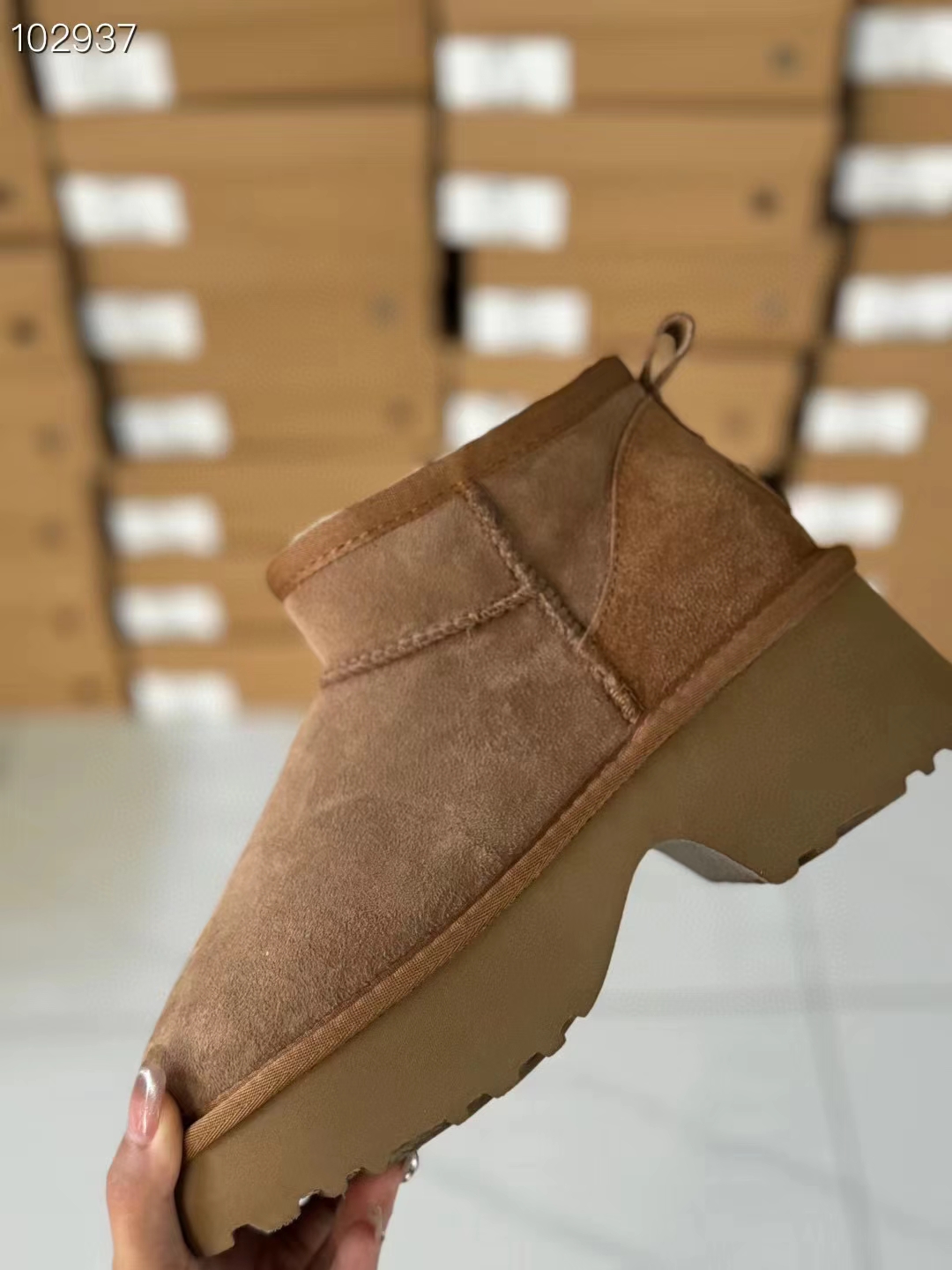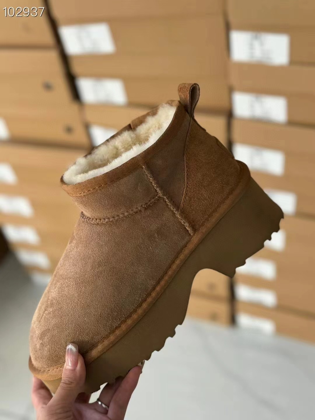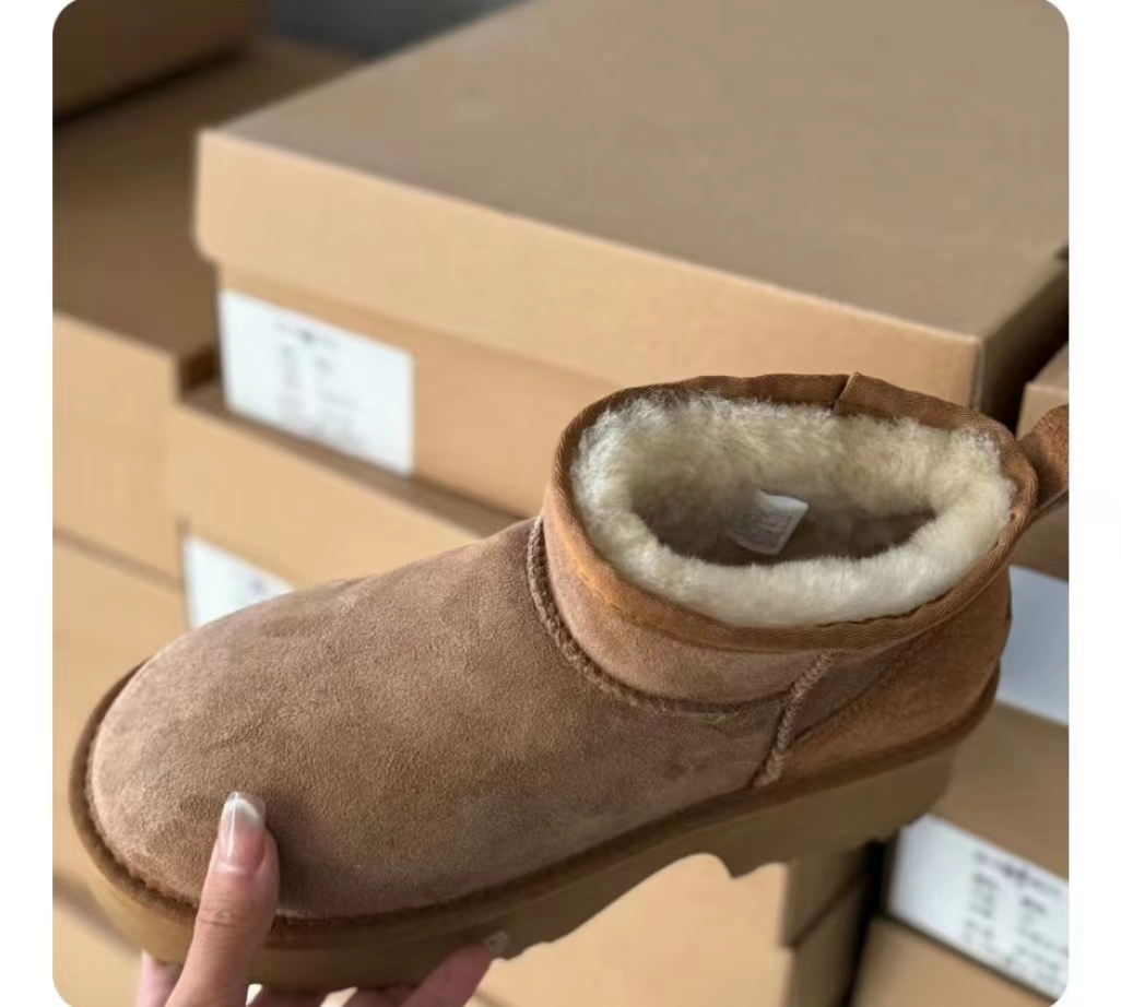这款鞋子是AAAAA 1:1 质量 (非常棒). 使用了和原版一模一样的材料. 商标部分也保持了和UGG雪地靴一样. 图片拍摄是实物鞋子拍摄, 您所收到的实物保证和我们图片一模一样.