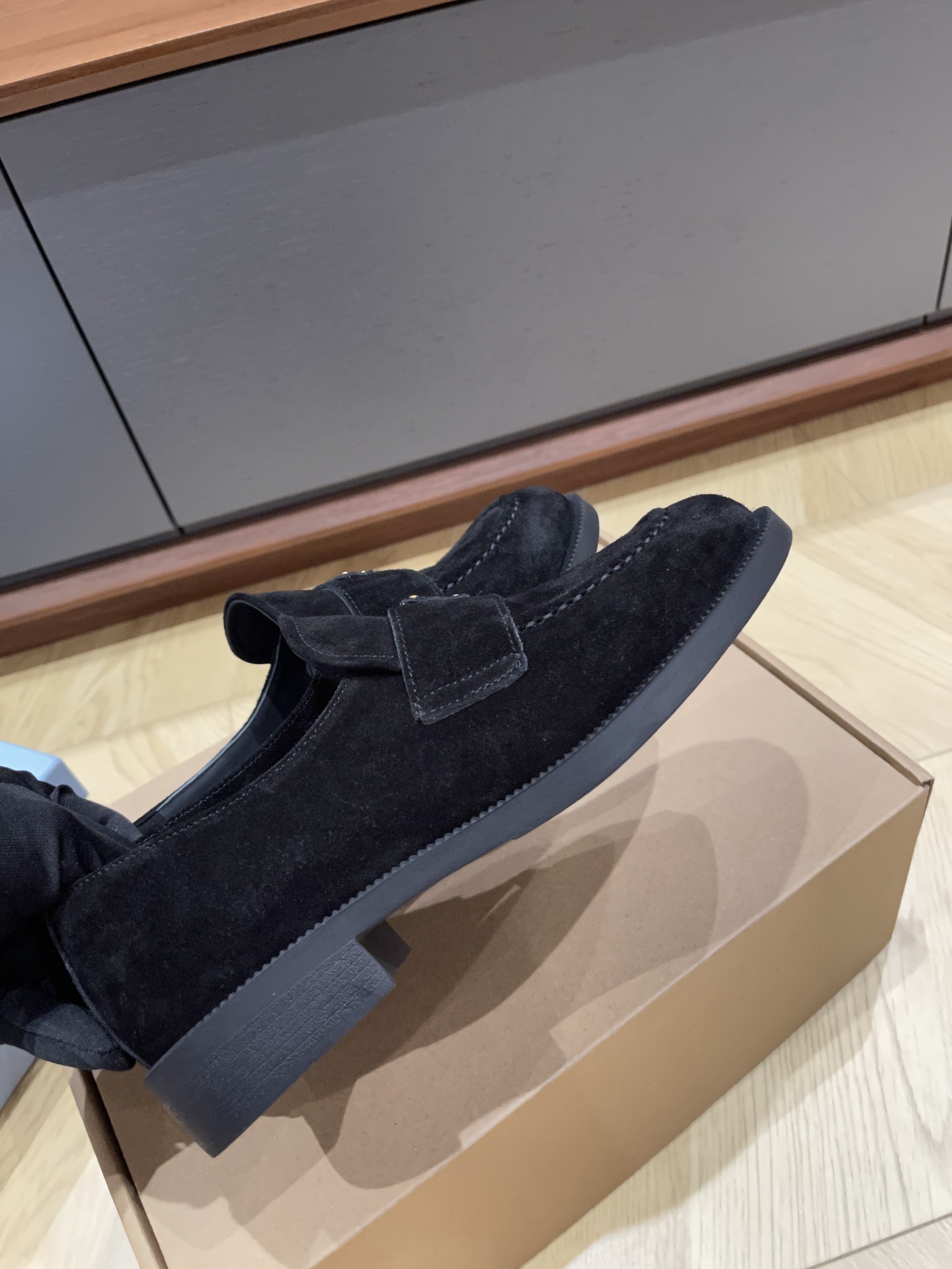 这款鞋子是AAAAA 1:1 质量 (非常棒). 使用了和原版一模一样的材料. 商标部分也保持了和普拉达/Prada一样. 图片拍摄是实物鞋子拍摄, 您所收到的实物保证和我们图片一模一样.