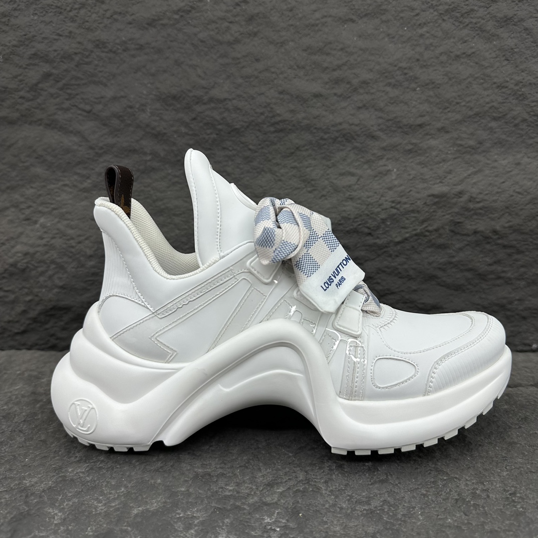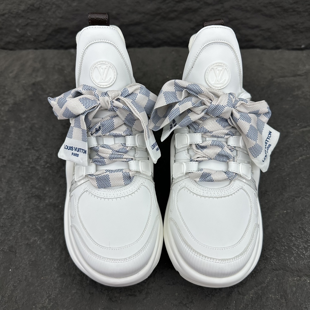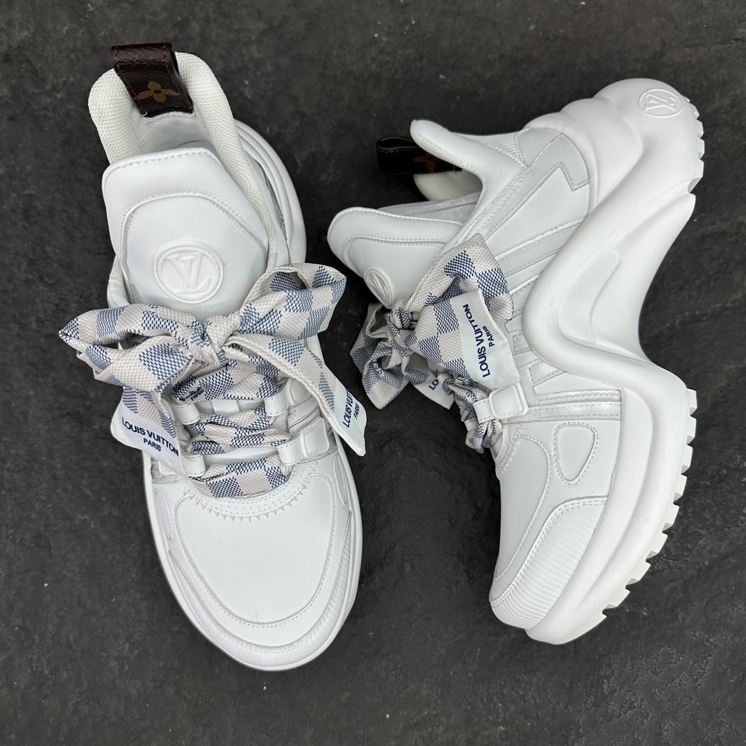这款鞋子是AAAAA 1:1 质量 (非常棒). 使用了和原版一模一样的材料. 商标部分也保持了和路易威登/Louis Vuitton一样. 图片拍摄是实物鞋子拍摄, 您所收到的实物保证和我们图片一模一样.