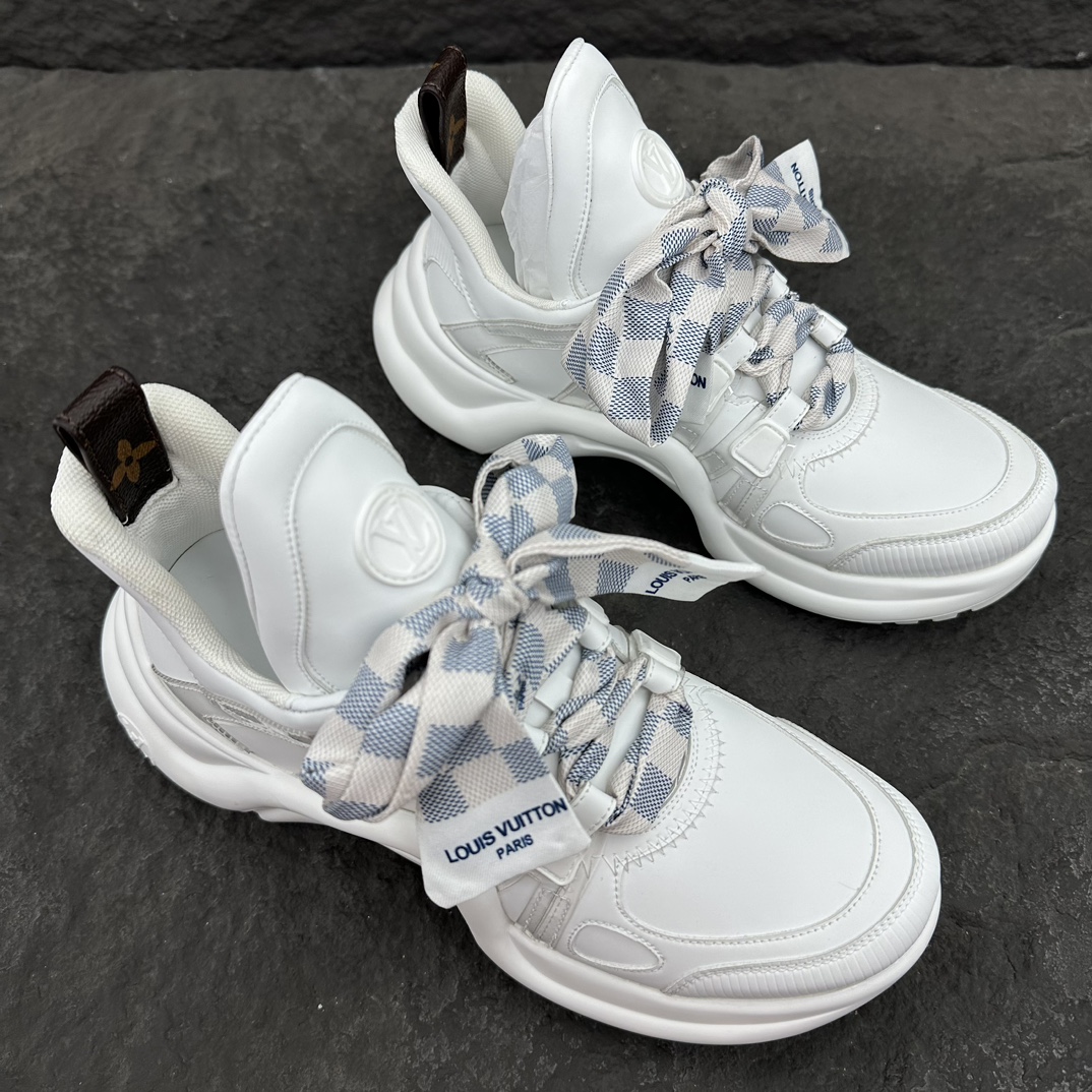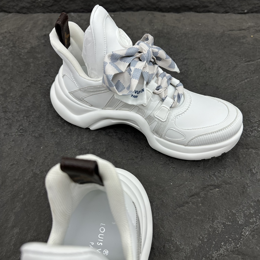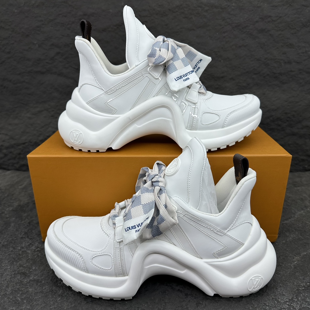 这款鞋子是AAAAA 1:1 质量 (非常棒). 使用了和原版一模一样的材料. 商标部分也保持了和路易威登/Louis Vuitton一样. 图片拍摄是实物鞋子拍摄, 您所收到的实物保证和我们图片一模一样.