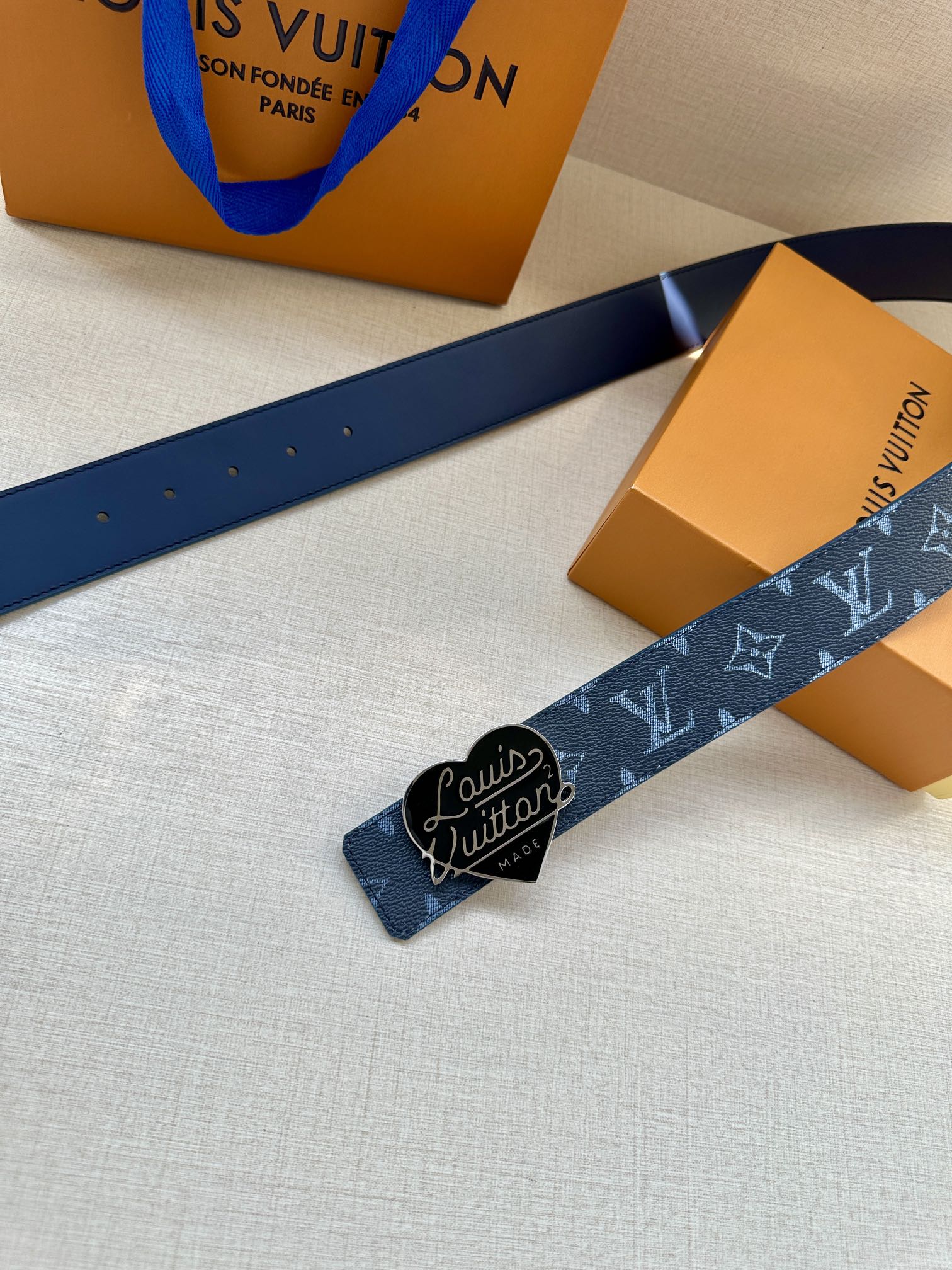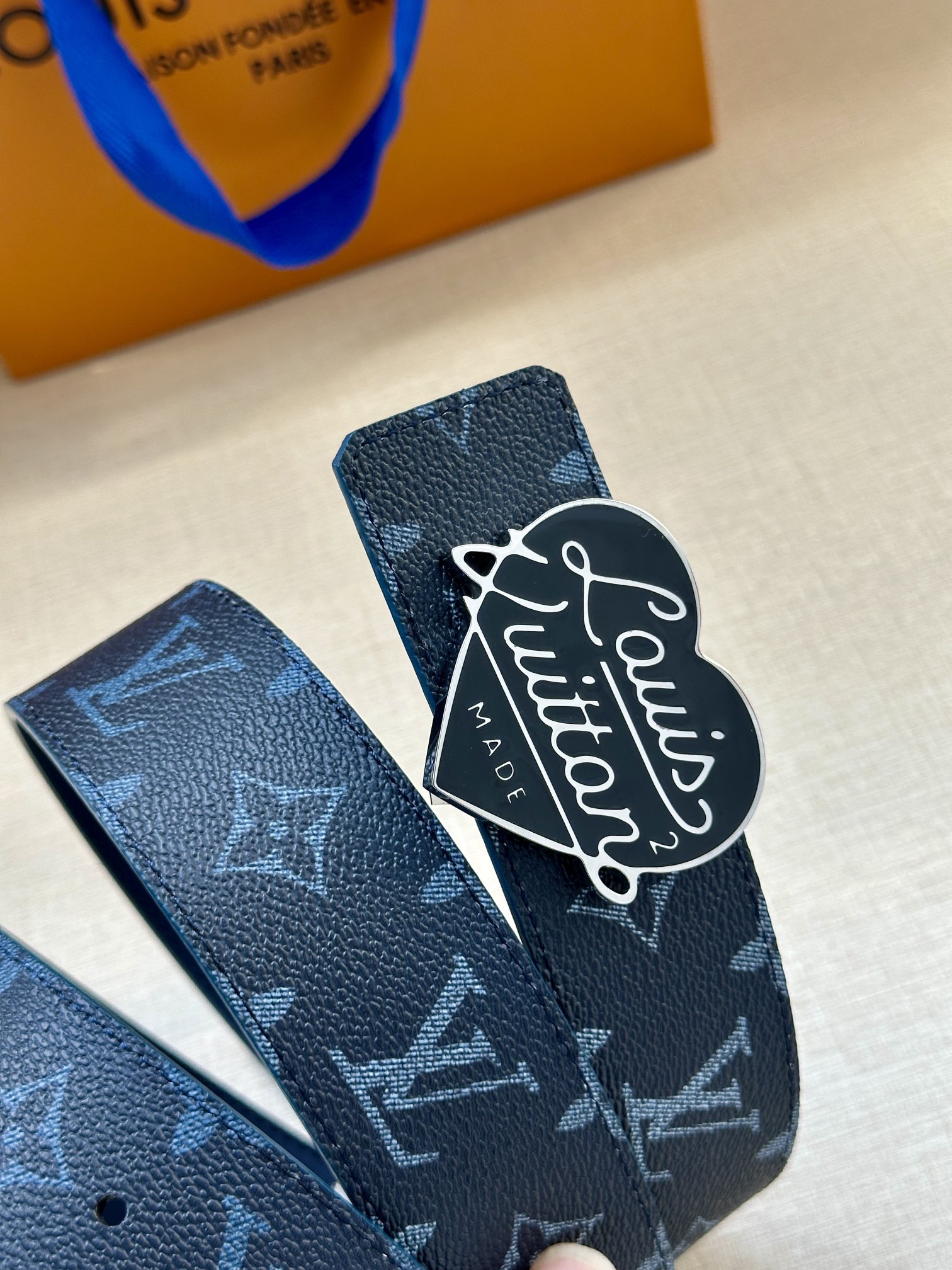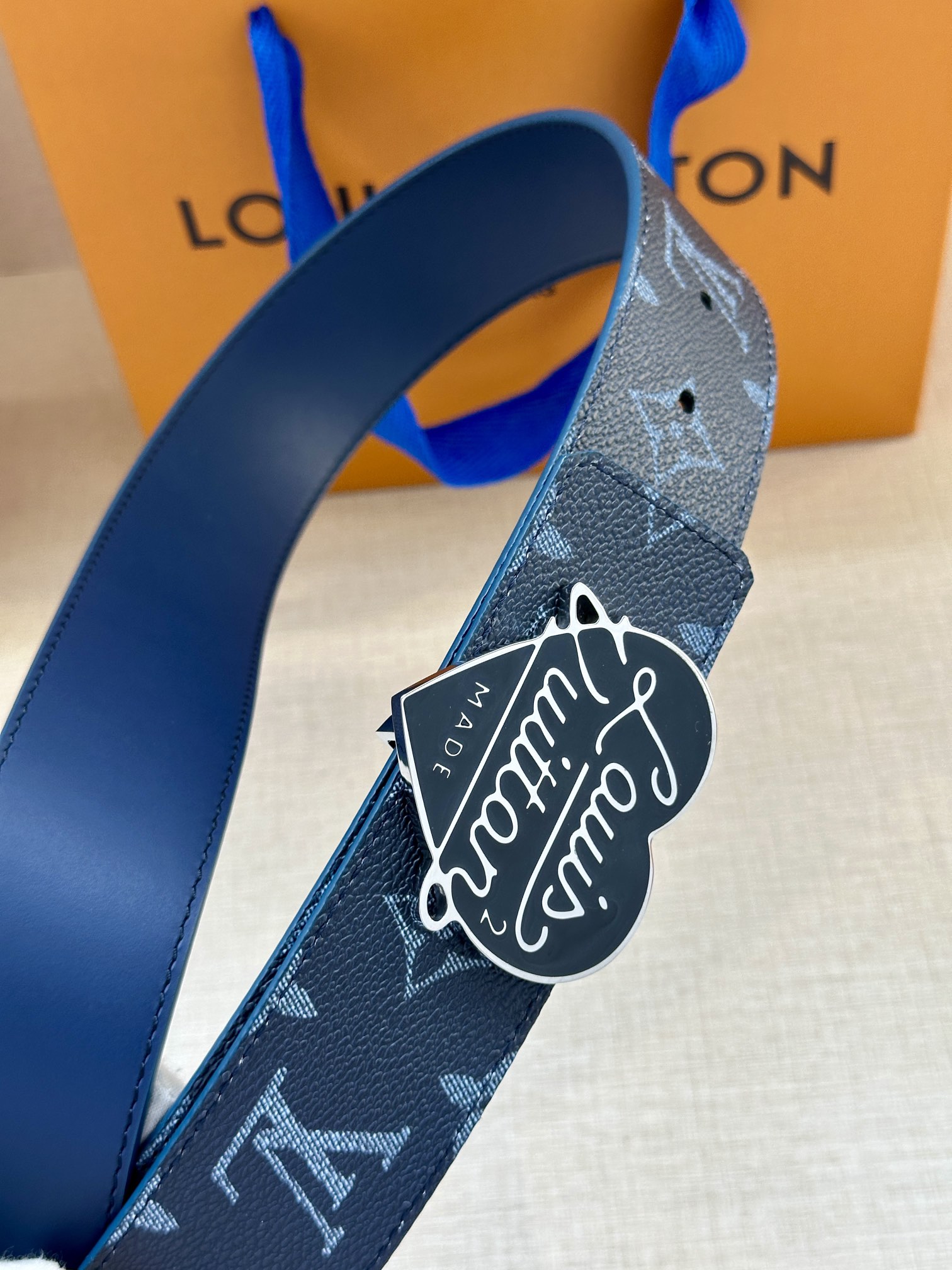 这款皮带是AAAAA 1:1 质量 (非常棒). 使用了和原版一模一样的材料. 商标部分也保持了和路易威登/Louis Vuitton一样. 图片拍摄是实物皮带拍摄, 您所收到的实物保证和我们图片一模一样.