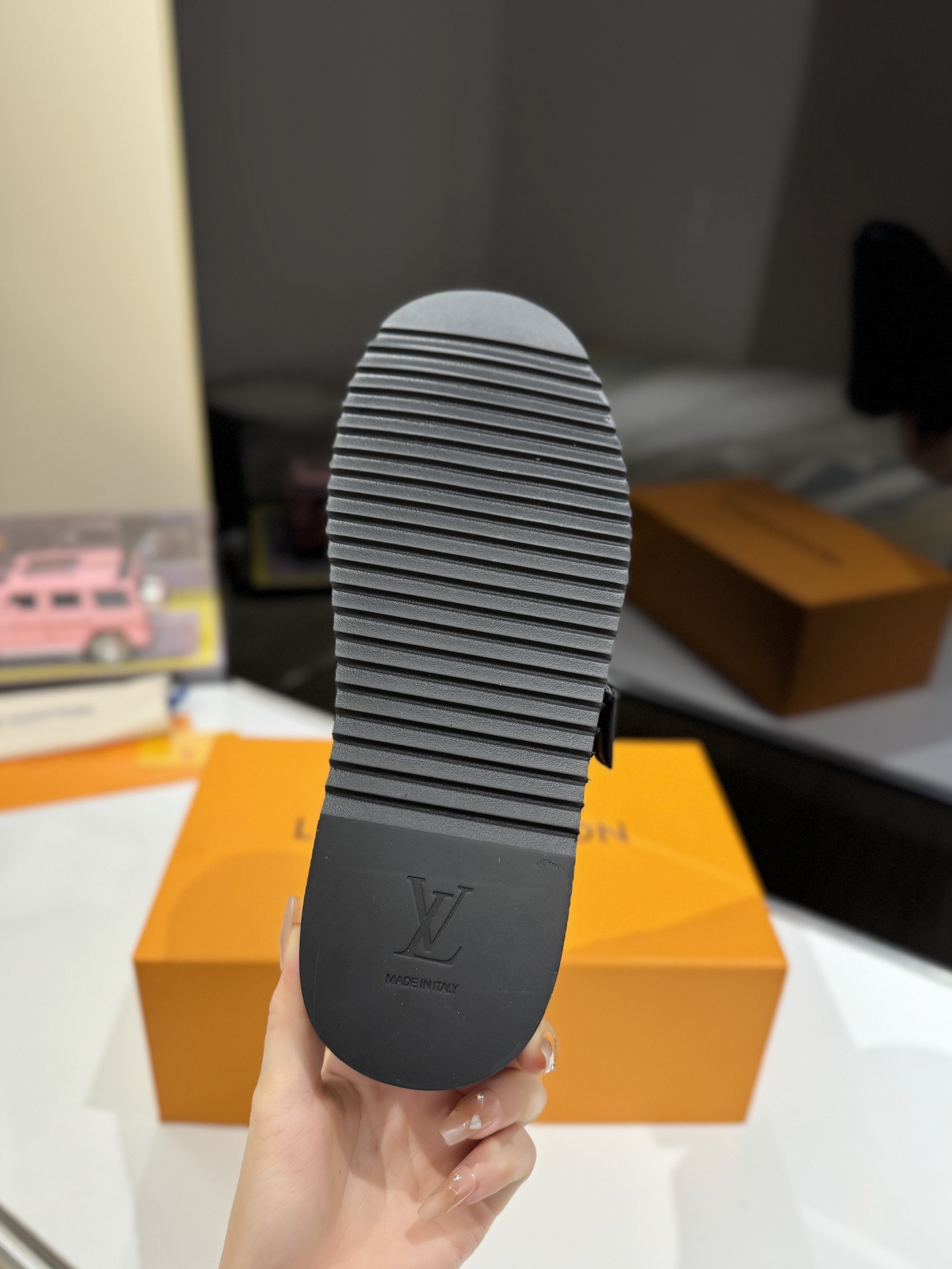 这款鞋子是AAAAA 1:1 质量 (非常棒). 使用了和原版一模一样的材料. 商标部分也保持了和路易威登/Louis Vuitton一样. 图片拍摄是实物鞋子拍摄, 您所收到的实物保证和我们图片一模一样.
