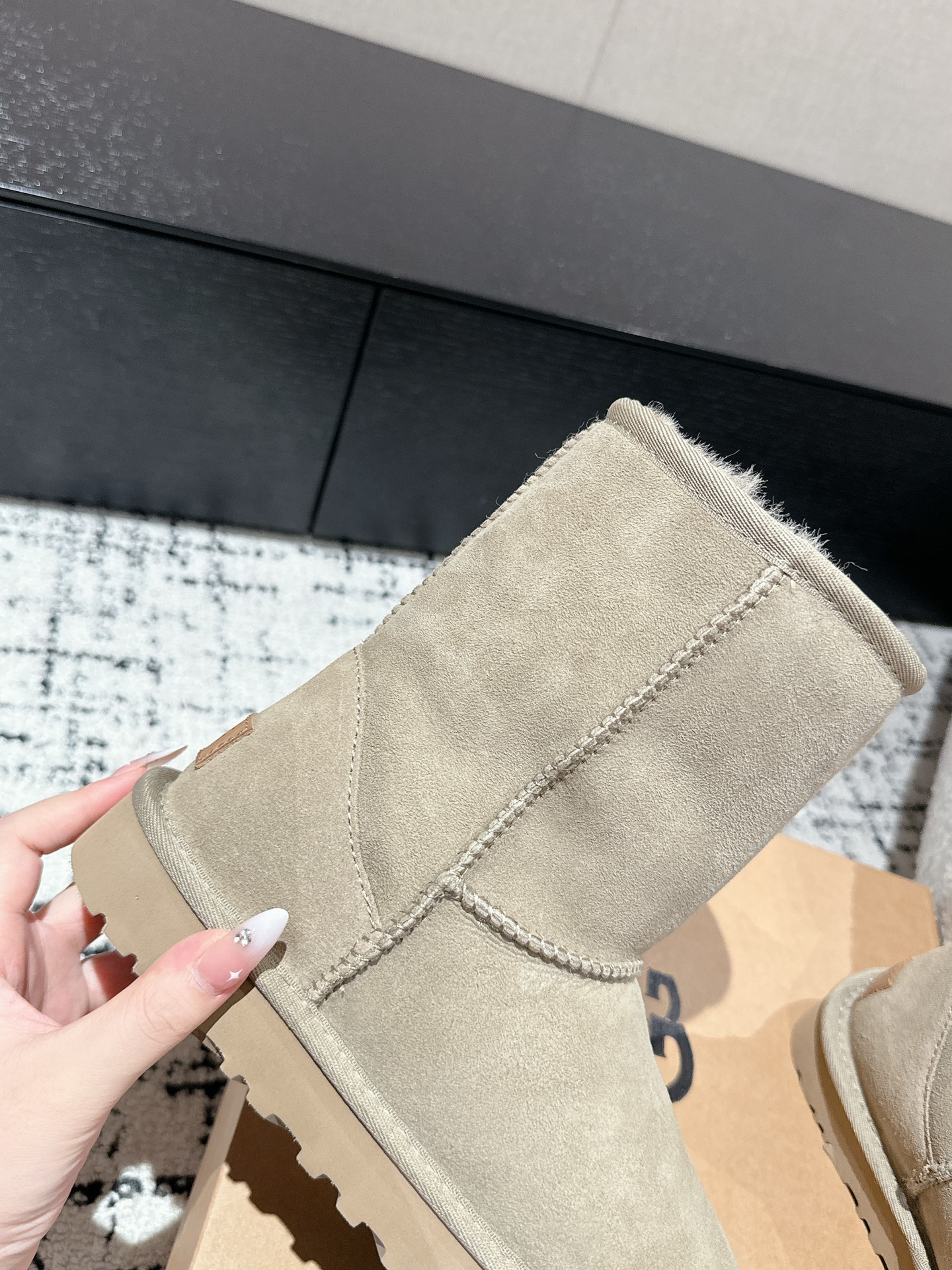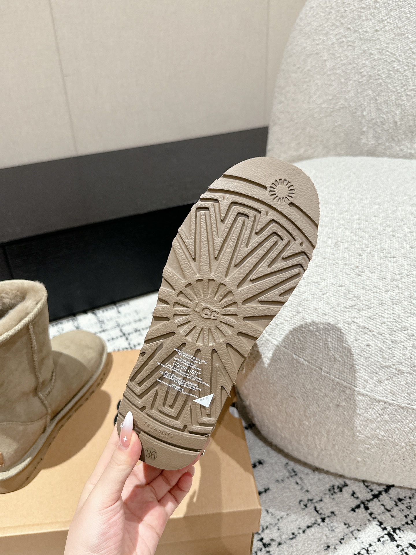 这款鞋子是AAAAA 1:1 质量 (非常棒). 使用了和原版一模一样的材料. 商标部分也保持了和UGG雪地靴一样. 图片拍摄是实物鞋子拍摄, 您所收到的实物保证和我们图片一模一样.