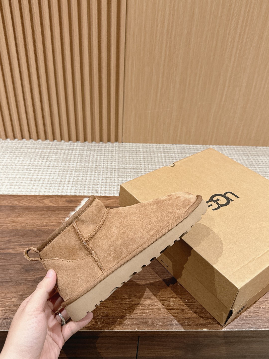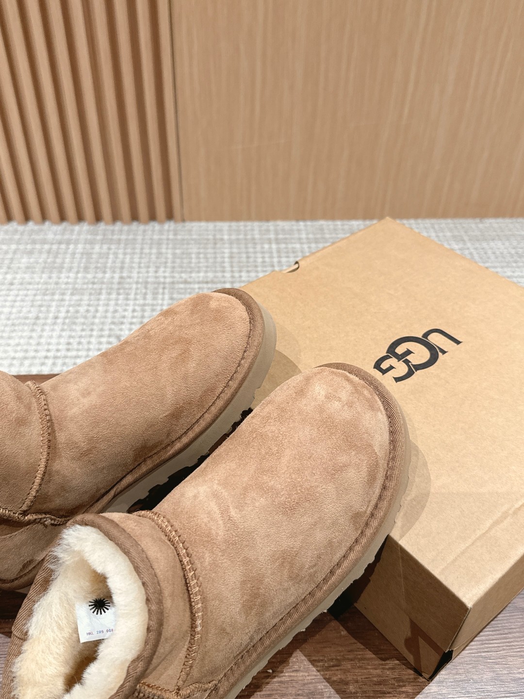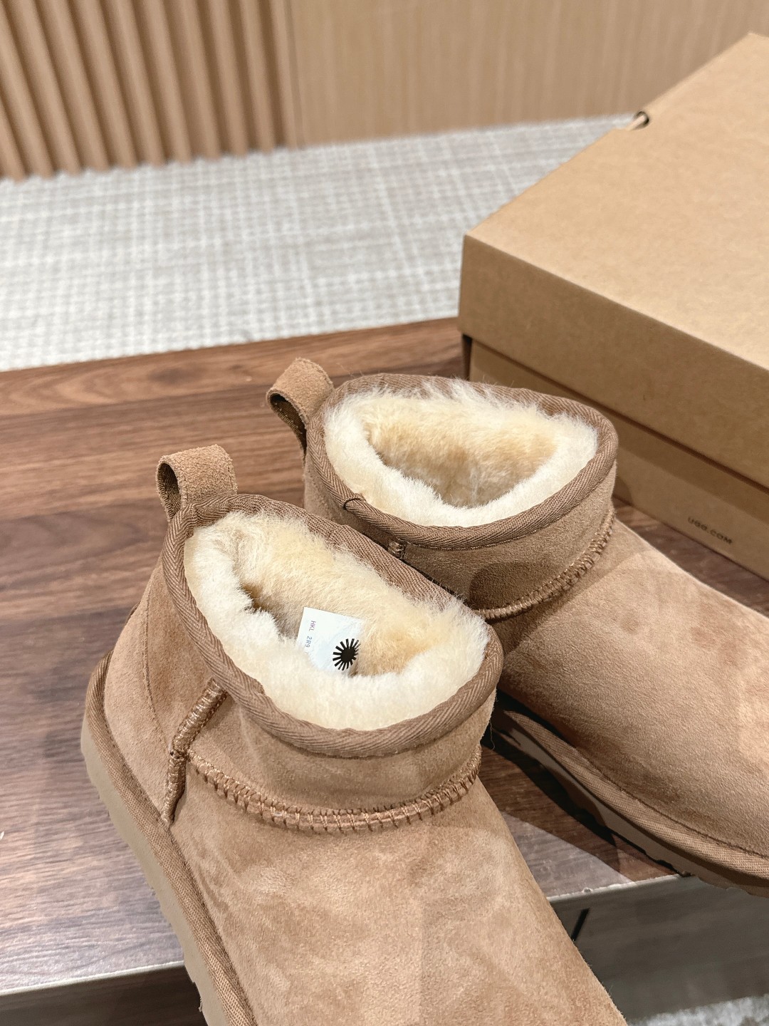这款鞋子是AAAAA 1:1 质量 (非常棒). 使用了和原版一模一样的材料. 商标部分也保持了和UGG雪地靴一样. 图片拍摄是实物鞋子拍摄, 您所收到的实物保证和我们图片一模一样.