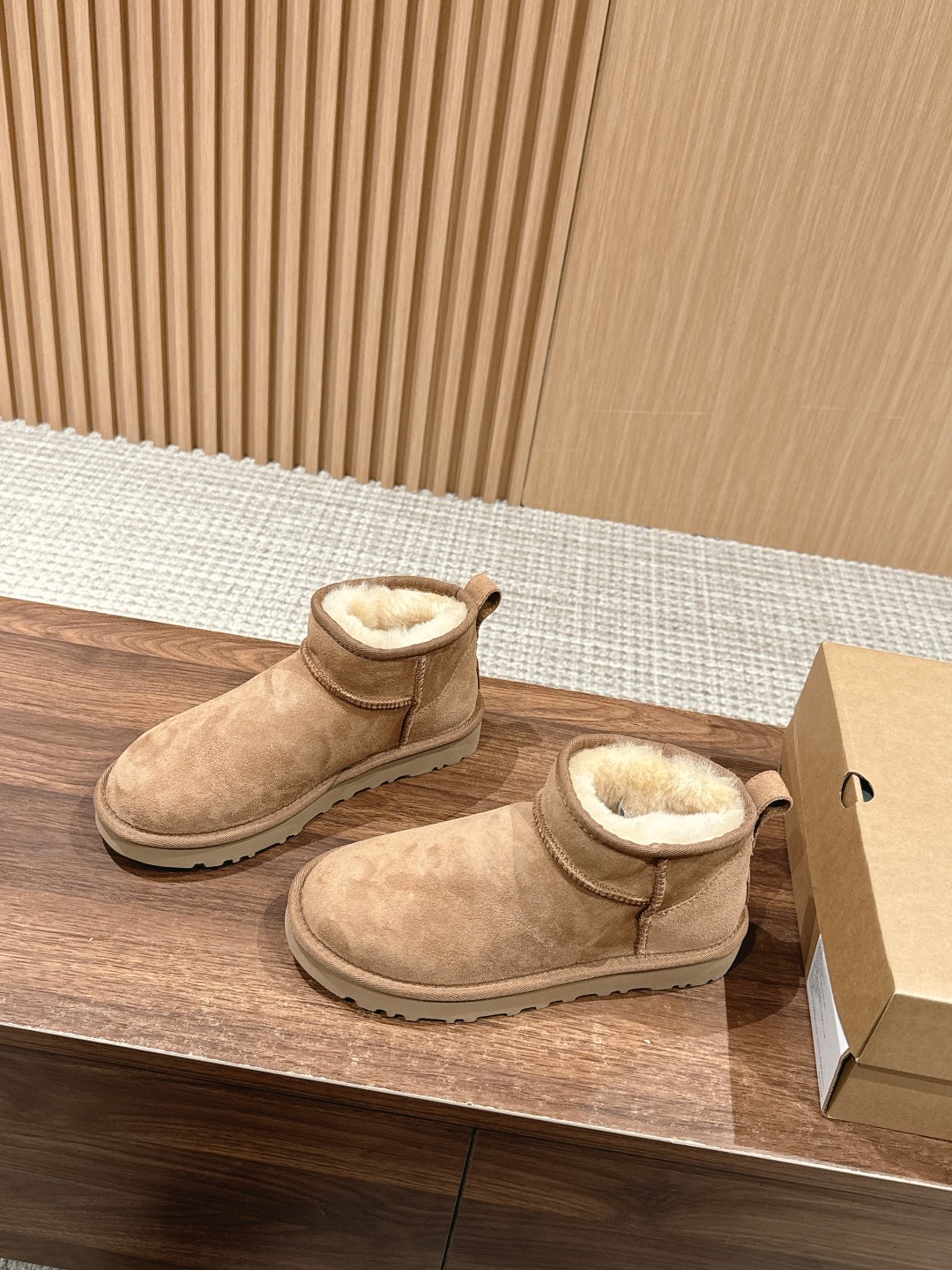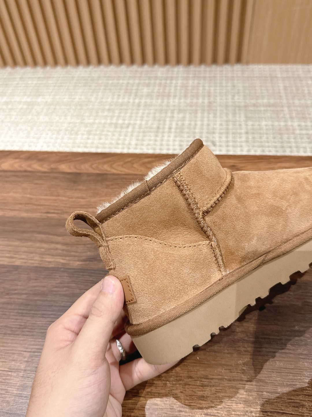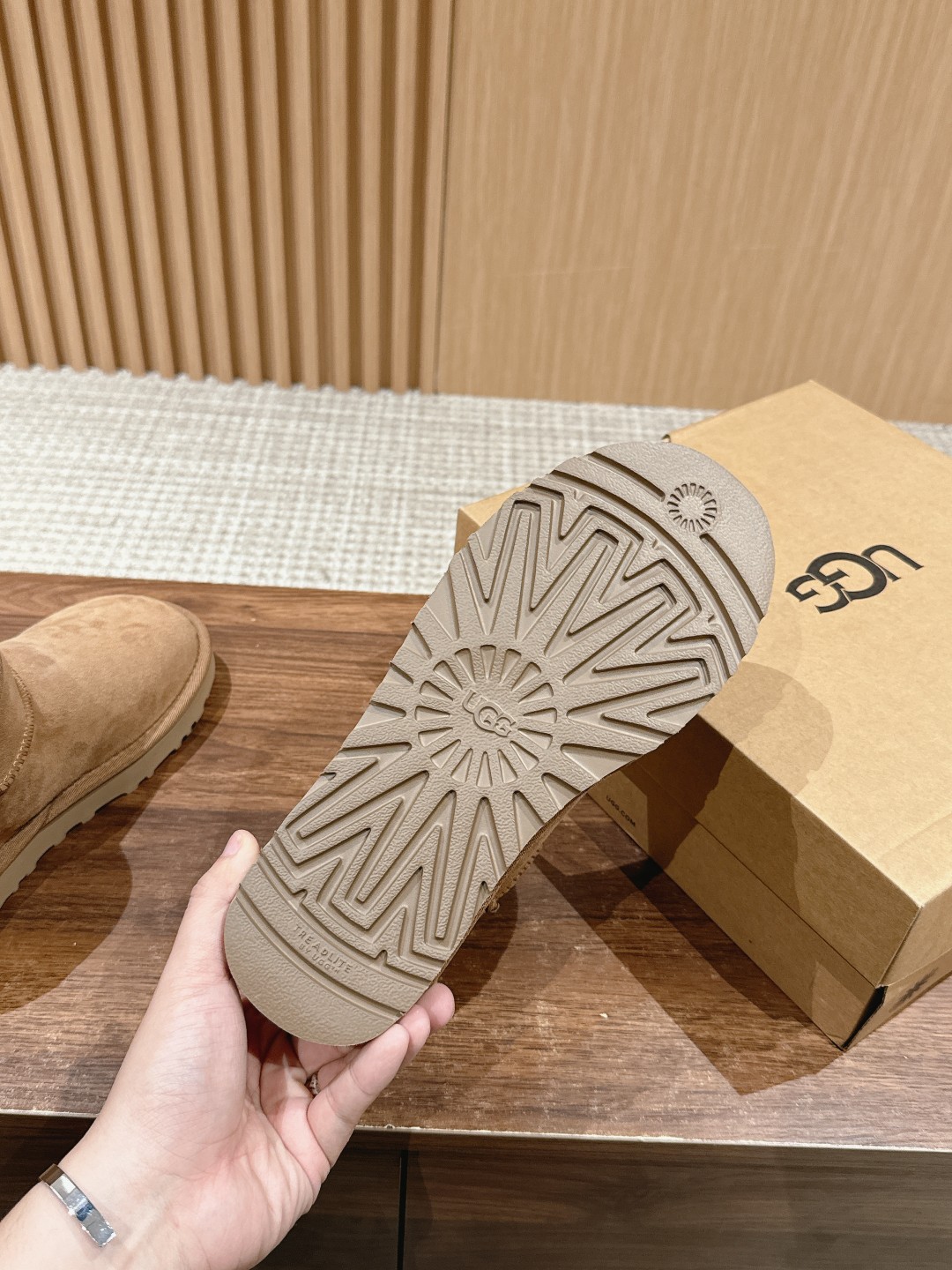 这款鞋子是AAAAA 1:1 质量 (非常棒). 使用了和原版一模一样的材料. 商标部分也保持了和UGG雪地靴一样. 图片拍摄是实物鞋子拍摄, 您所收到的实物保证和我们图片一模一样.